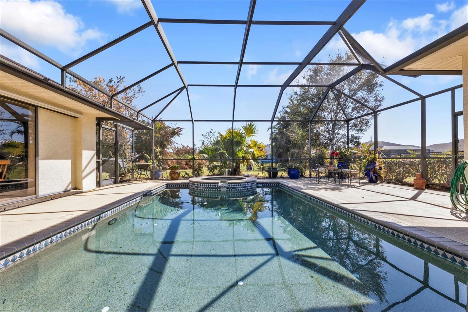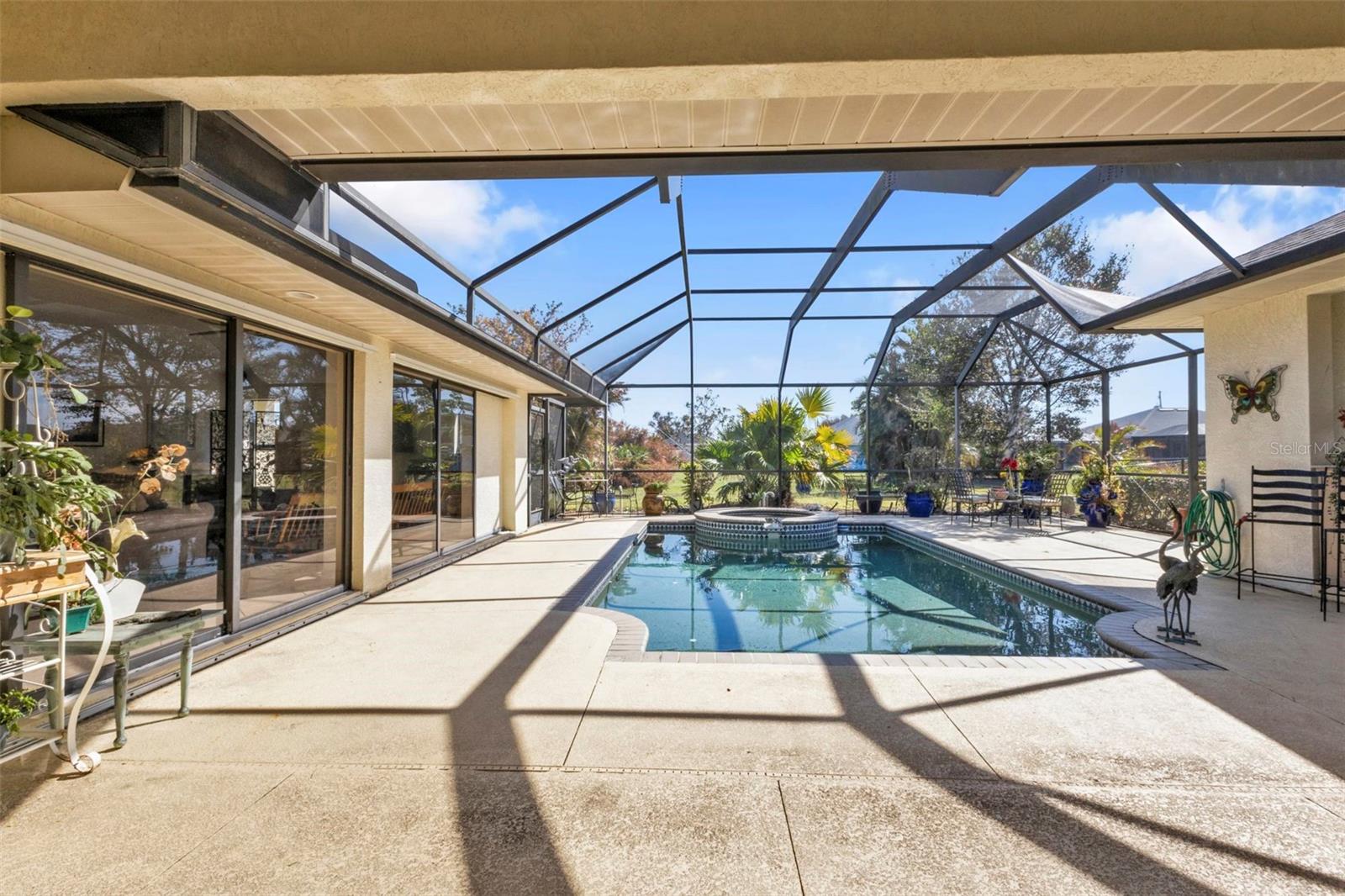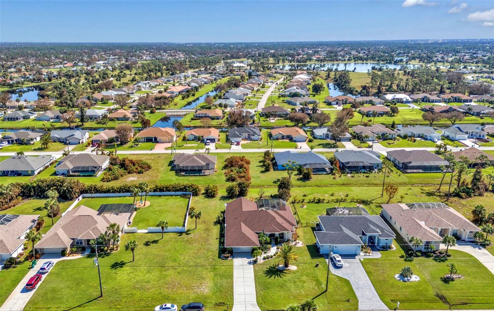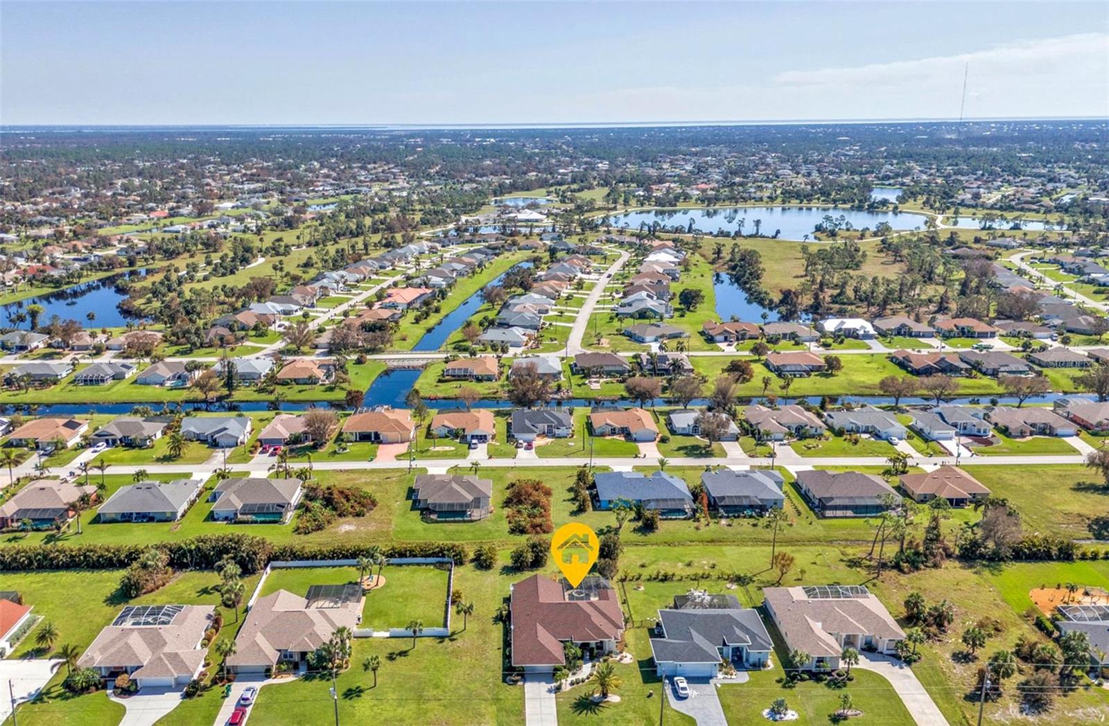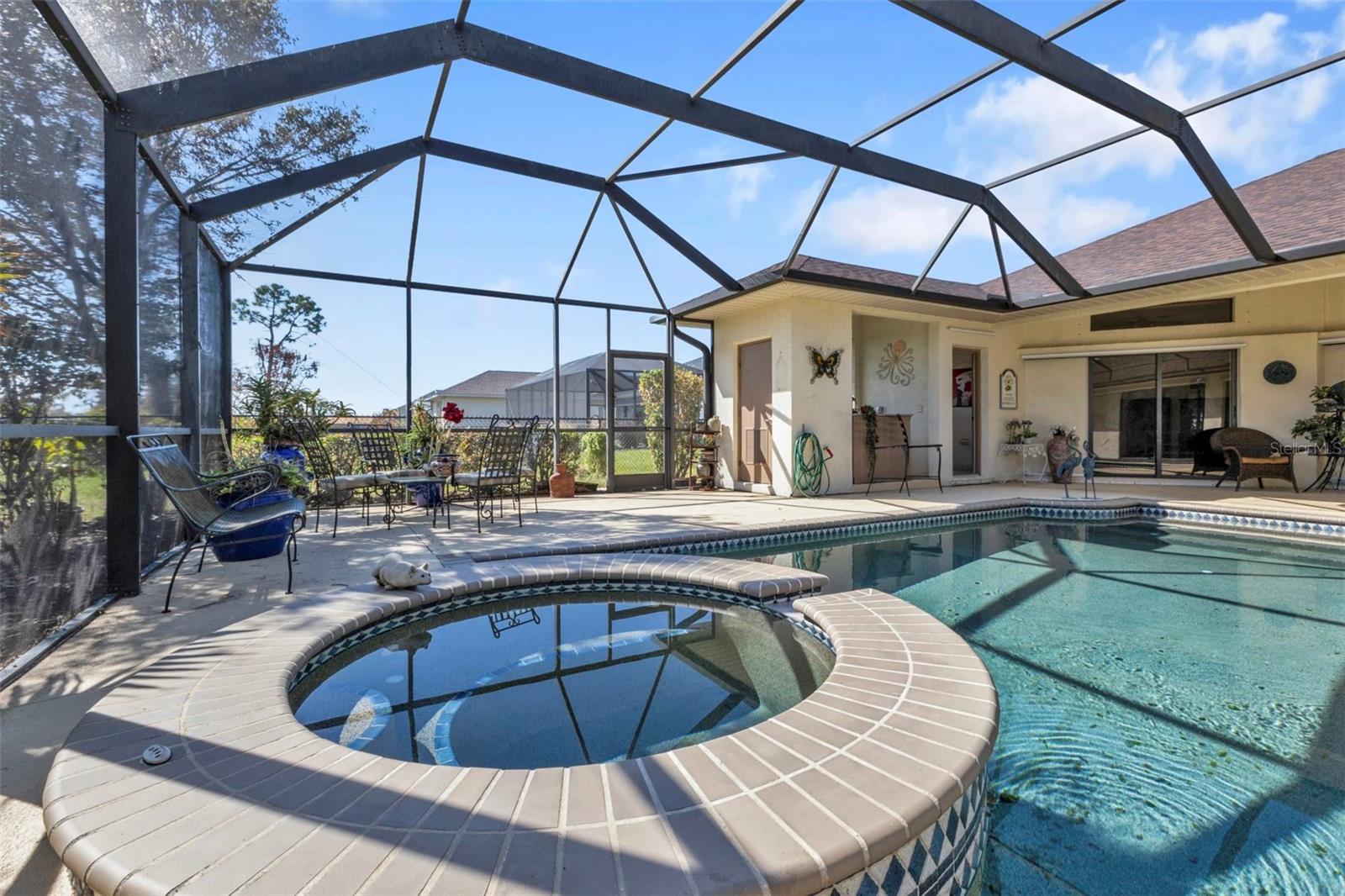 HIGHLY MOTIVATED!! Price Improvement! What a Great opportunity to own your own home in one of the most sought after communities in Southern Florida, Rotonda West. This 1 Owner, 3 Bedroom, 2 ½ Bath Pool Home has just about everything; Split Floor Plan, a Huge Over-sized 2 Car Garage, a Beautiful Lanai with Pool, Pool Cage, Spa, recessed Barbecue Bar, Pool Bathroom & Pool Equipment Closet, Upgraded Kitchen, Gorgeous Lighting & Fans & over 2700 square feet of living space. This Bright Airy Home, Perfect for Entertaining, is located on a third of an acre. The home has been cleared of furniture so we have added additional photos of the empty rooms. Upon approach you immediately notice the mature landscaping with lovely palm trees offering great curb appeal. The glass door with sidelights and transom window welcome you home. Through the entryway your eyes are immediately drawn to the perfect view of the lanai and pool through the first set of sliding glass doors. The formal living area is defined by the lovely wood flooring. Ceramic tile runs throughout most of the home. To the left of the Formal Living Area is the designated Office and then the Spacious Kitchen, Upgraded with granite counter tops, a large island, a breakfast bar, an abundance of cabinet space & lofty ledges for display. Just off the kitchen is the Laundry Room complete with washer and dryer. The kitchen opens to an Enormous Family Room with 2 Sets of Double sliding doors flanking the pool & lanai. The view is quite spectacular from the formal living room, the family room, the dining area & the primary bedroom. Just off the Family Room is the Guest Bathroom & 2 Guest Bedrooms. Both Guest Bedrooms are Large, one had been used as a library so bookcases line the walls. The Guest Bathroom has a Large Walk-In Shower & Linen Closet. The Primary Bedroom has Space for Days, it measures 20.5ft x 16.5ft. There are 2 Closets; one a roomy walk-in leading to the Primary Bathroom which again is Very Spacious. There is a Soaking Tub and Walk-In Shower, Double Vanities, Private Water Closet & Linen Closet. The Lanai is the Perfect Entertaining Space! The Step down Pool has an attached Spa for ultimate relaxation. The Large Overhang provides shade & cover. Some of the most beautiful beaches in Florida are only 15 minutes away & you can join the Rotonda Golf & Country Club!