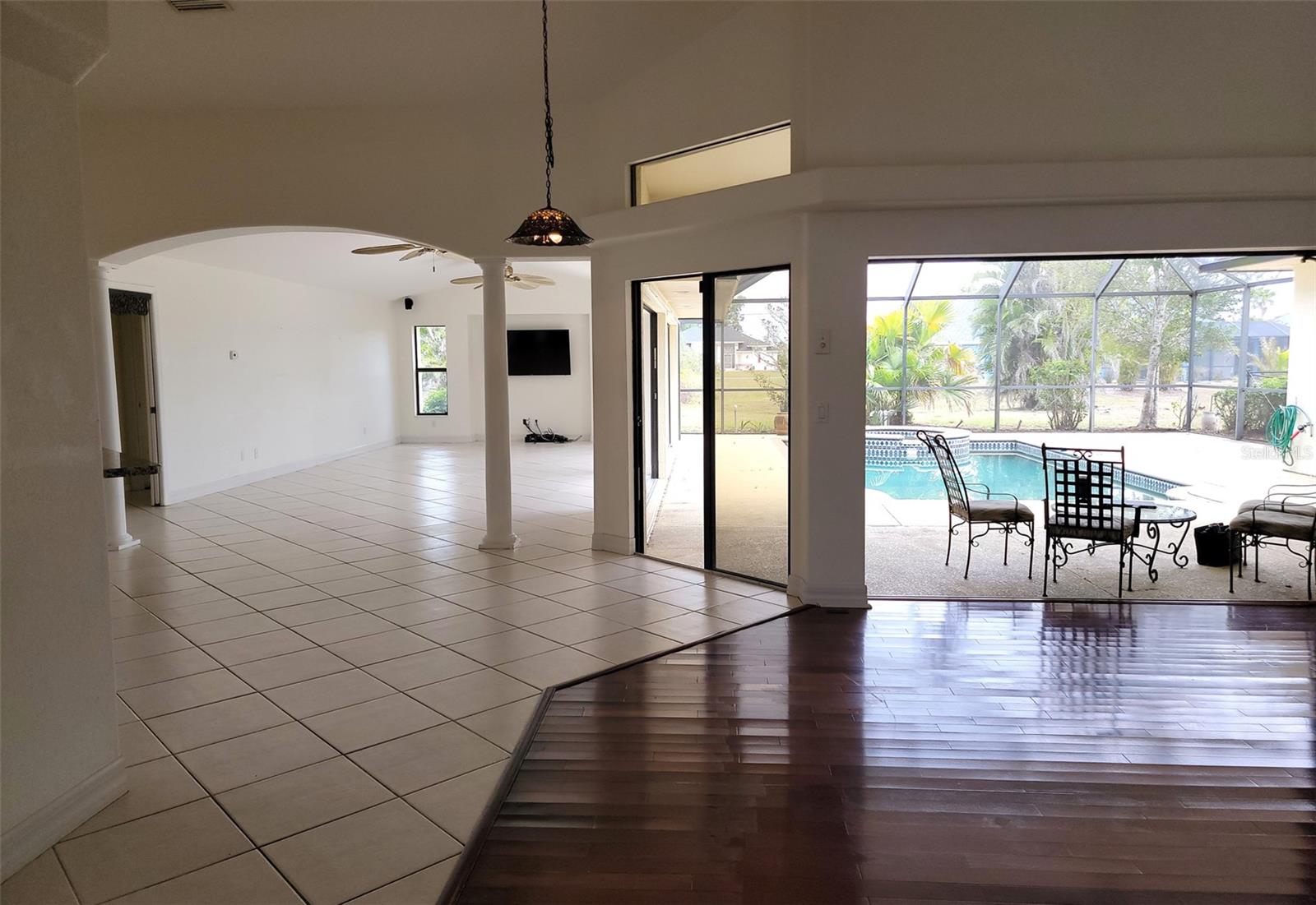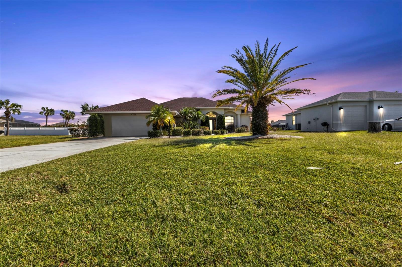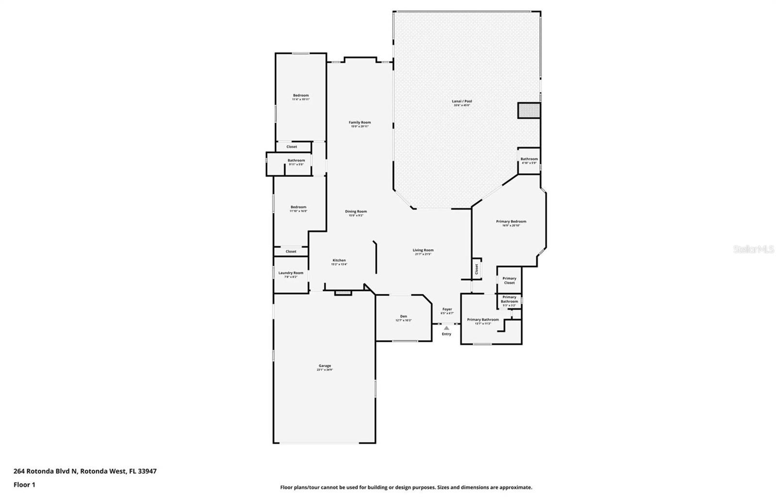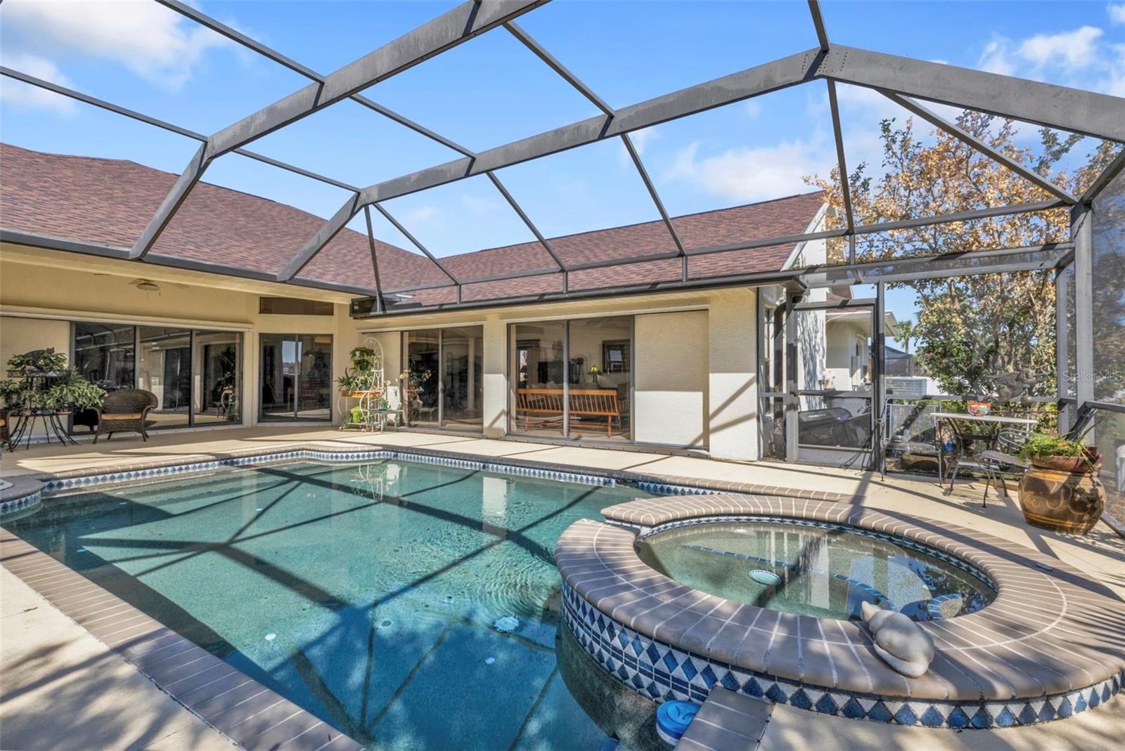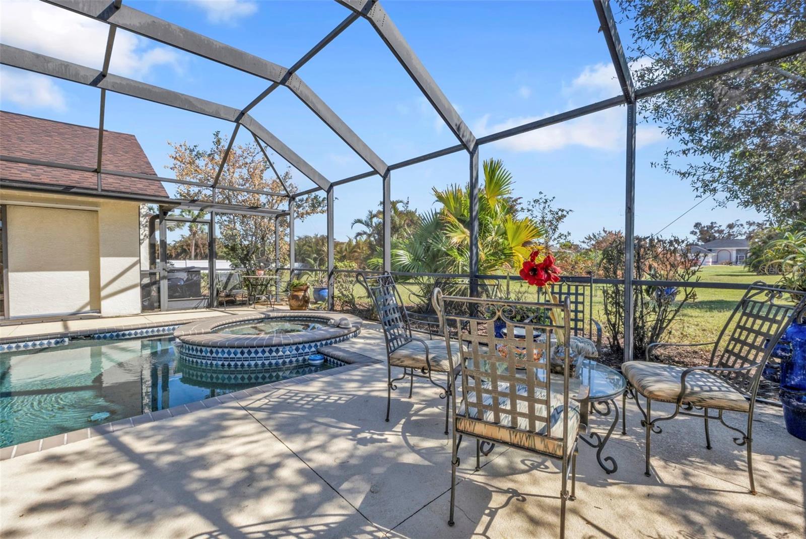 HIGHLY MOTIVATED!! Price Improvement! What a Great opportunity to own your own home in one of the most sought after communities in Southern Florida, Rotonda West. This 1 Owner, 3 Bedroom, 2 ½ Bath Pool Home has just about everything; Split Floor Plan, a Huge Over-sized 2 Car Garage, a Beautiful Lanai with Pool, Pool Cage, Spa, recessed Barbecue Bar, Pool Bathroom & Pool Equipment Closet, Upgraded Kitchen, Gorgeous Lighting & Fans & over 2700 square feet of living space. This Bright Airy Home, Perfect for Entertaining, is located on a third of an acre. The home has been cleared of furniture so we have added additional photos of the empty rooms. Upon approach you immediately notice the mature landscaping with lovely palm trees offering great curb appeal. The glass door with sidelights and transom window welcome you home. Through the entryway your eyes are immediately drawn to the perfect view of the lanai and pool through the first set of sliding glass doors. The formal living area is defined by the lovely wood flooring. Ceramic tile runs throughout most of the home. To the left of the Formal Living Area is the designated Office and then the Spacious Kitchen, Upgraded with granite counter tops, a large island, a breakfast bar, an abundance of cabinet space & lofty ledges for display. Just off the kitchen is the Laundry Room complete with washer and dryer. The kitchen opens to an Enormous Family Room with 2 Sets of Double sliding doors flanking the pool & lanai. The view is quite spectacular from the formal living room, the family room, the dining area & the primary bedroom. Just off the Family Room is the Guest Bathroom & 2 Guest Bedrooms. Both Guest Bedrooms are Large, one had been used as a library so bookcases line the walls. The Guest Bathroom has a Large Walk-In Shower & Linen Closet. The Primary Bedroom has Space for Days, it measures 20.5ft x 16.5ft. There are 2 Closets; one a roomy walk-in leading to the Primary Bathroom which again is Very Spacious. There is a Soaking Tub and Walk-In Shower, Double Vanities, Private Water Closet & Linen Closet. The Lanai is the Perfect Entertaining Space! The Step down Pool has an attached Spa for ultimate relaxation. The Large Overhang provides shade & cover. Some of the most beautiful beaches in Florida are only 15 minutes away & you can join the Rotonda Golf & Country Club!