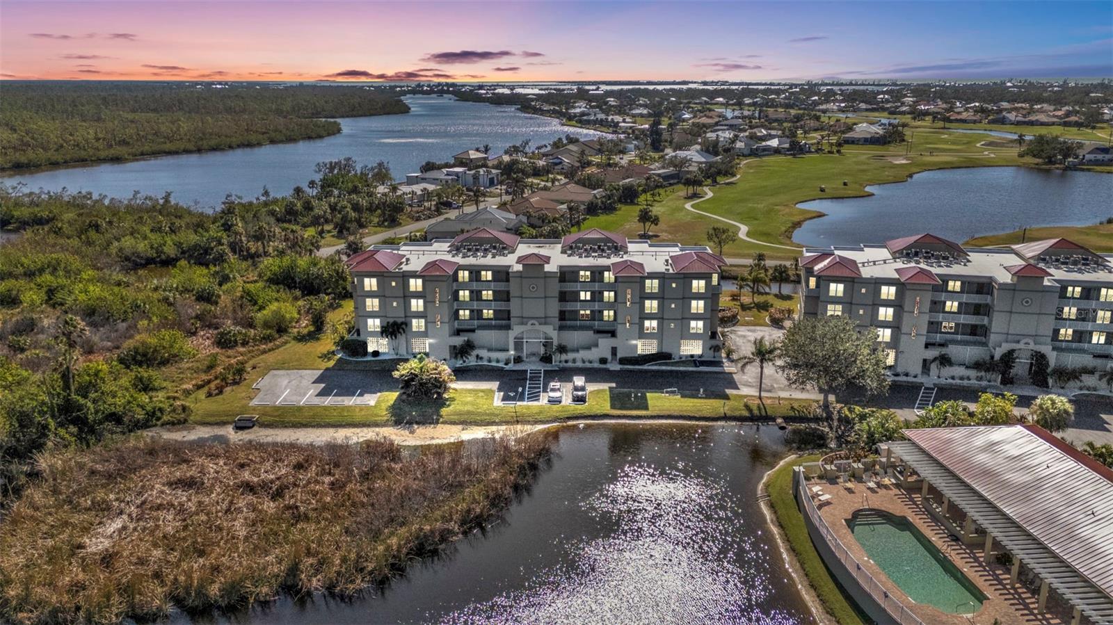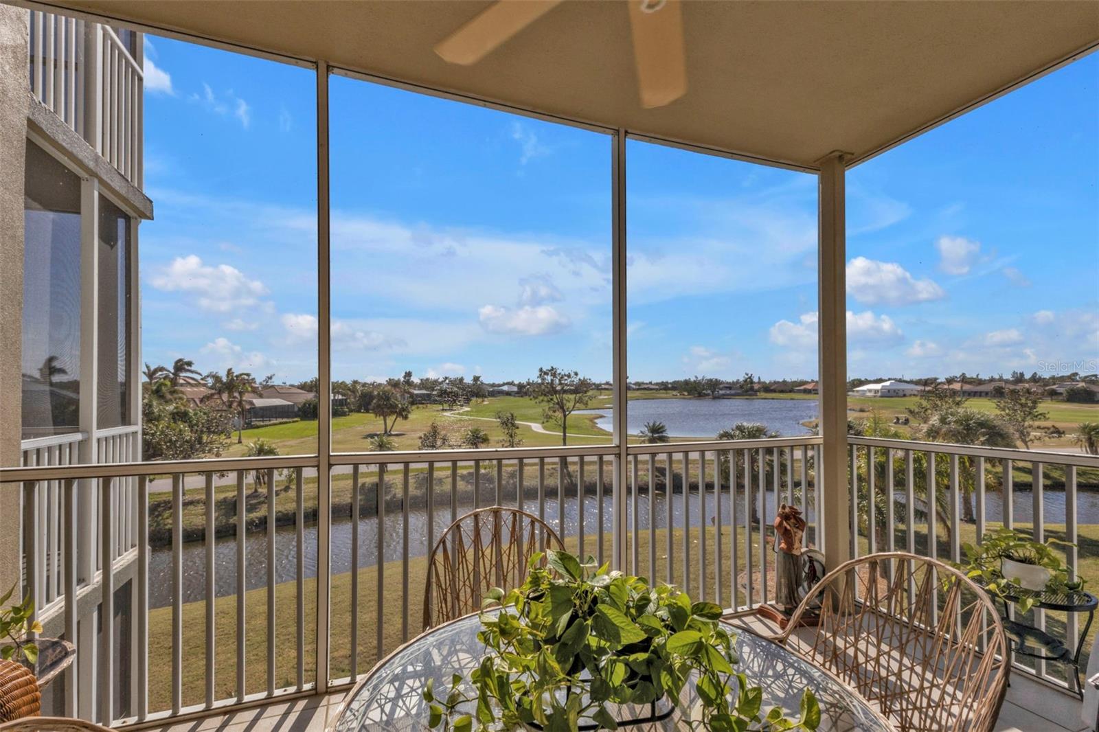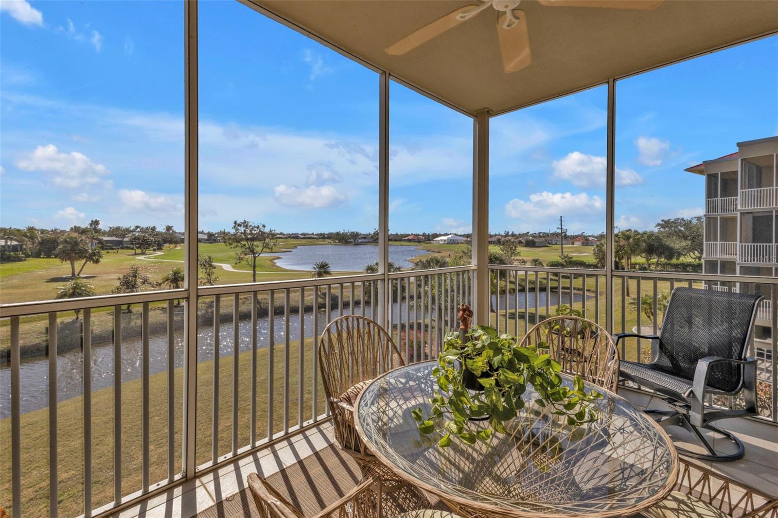 RARELY AVAILABLE 3 Bedroom, 2 Bathroom, THIRD FLOOR condo with BEAUTIFUL Water & Golf Course views located in The Preserve at Windward. CLICK ON THE VIRTUAL TOUR LINK 1 FOR THE VIDEO AND VIRTUAL LINK 2 FOR THE 3D TOUR. Featuring a bright & airy floor plan, vinyl flooring throughout, high ceilings, recessed lighting and MUCH MORE! Spend quality time with friends and family in the open living and dining room. The kitchen offers ALL stainless steel appliances, Quartz countertops, tiled backsplash and a closet pantry with a formal dining room off the kitchen. The spacious master bedroom has a walk-in closest, a glass slider to the lanai and a private bathroom with a dual sink vanity, walk-in shower and a water closet. The guest rooms are on a split floor plan offering plenty of privacy with built-in closets and a shared guest bathroom nearby. Sip your morning coffee or unwind with your favorite evening beverage on the screened lanai while enjoying the GORGEOUS water and golf course views. This unit comes with a private storage unit in an under-building parking garage. The Preserve at Windward is a gated community next to the Links Golf Club with a clubhouse, community pool, and fitness center, with underground utilities and an elevator & under building parking garage with assigned parking. Conveniently located near shopping, fine & casual dining spots, LIVE entertainment, biking, boating, and Englewood's beautiful beaches are just a short drive away, providing an opportunity to soak up the sun, swim in crystal-clear waters, or indulge in beachfront dining. Schedule your showing TODAY!