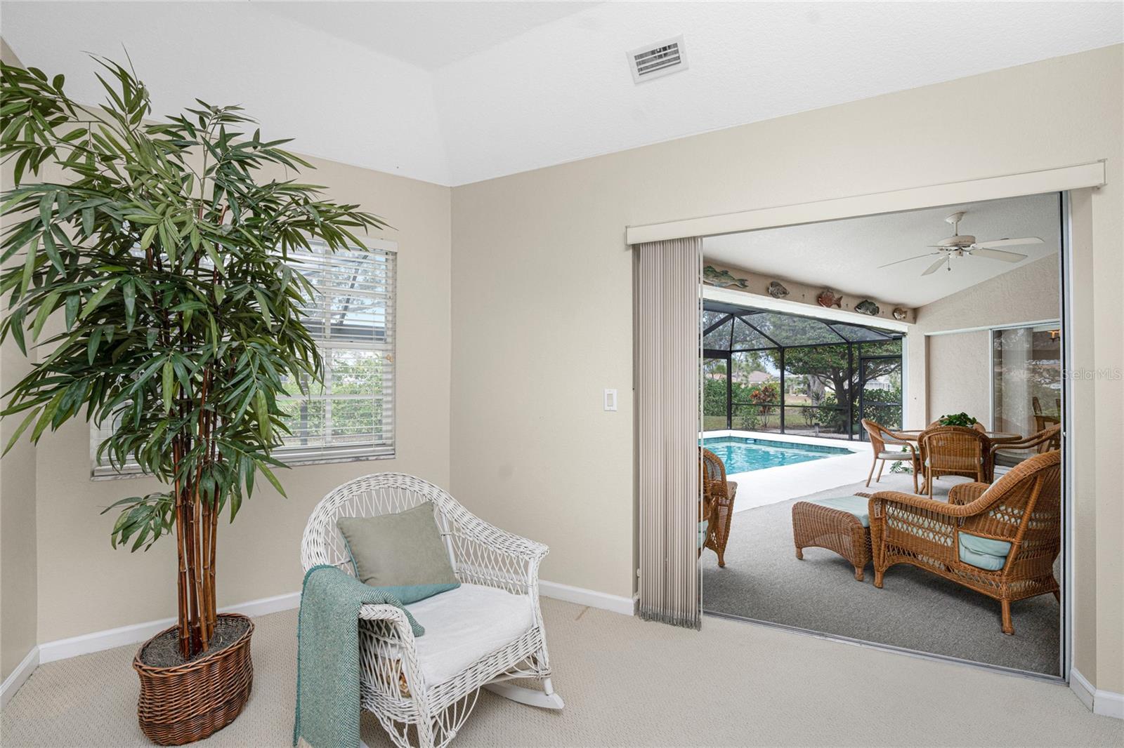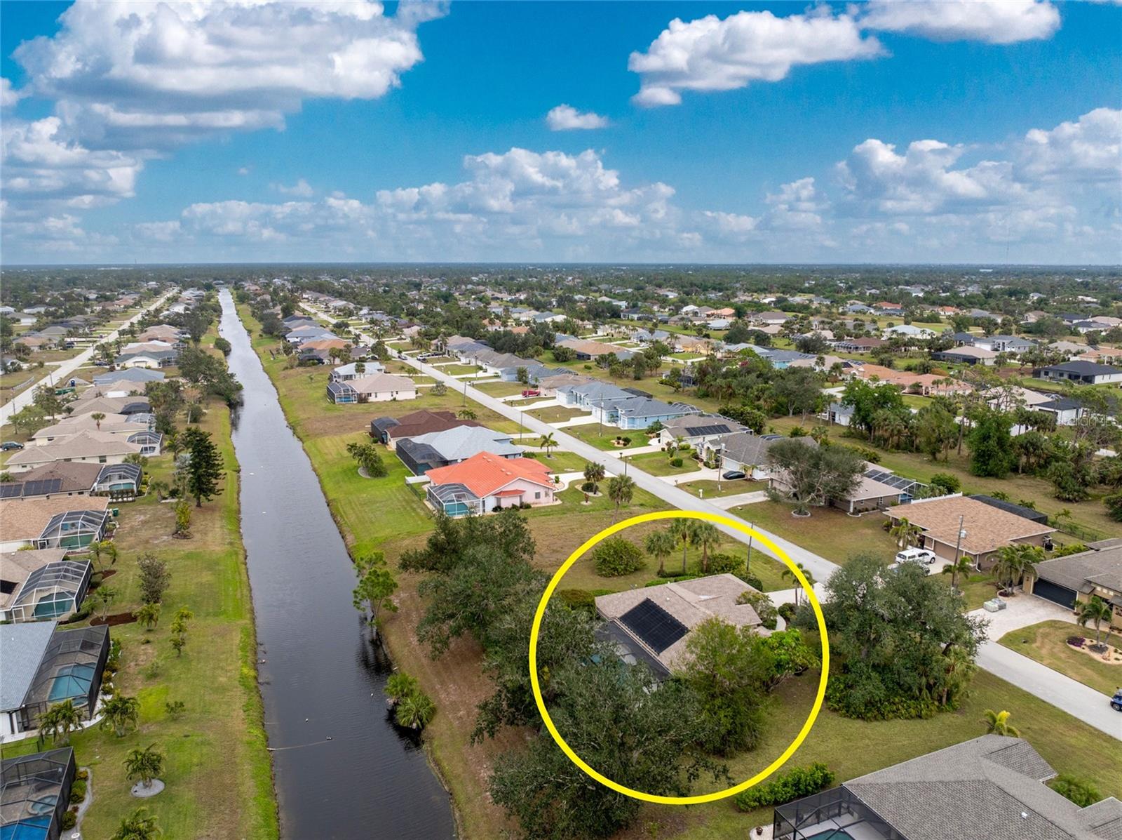 BEAUTIFUL WATERFRONT 3 Bedroom, 2 Bathroom, 2 Car Garage, Pool home with a Den situated on an DOUBLE LOT on a FRESH WATER CANAL in Rotonda West. CLICK ON THE VIRTUAL TOUR LINK 1 FOR THE VIDEO AND VIRTUAL LINK 2 FOR THE 3D TOUR. Featuring a bright & airy floor plan, vaulted & tray ceilings, Bahama shutters, and MUCH MORE! Entertain friends and family in the living room with a glass slider to the lanai. The kitchen offers ALL appliances, solid surface counters, under-cabinet lighting, two closet pantries, a breakfast bar and an off kitchen dining room. The open den off the kitchen is perfect for a home office or additional living & entertaining space. The spacious master bedroom offers a glass slider to the lanai, a walk-in closet and a private bathroom with a dual sink vanity, soaking tub, walk-in shower, private toilet and a linen closet. The guest bedrooms are on a split floor plan with built-in closets and a shared guest bathroom nearby. Expand your living and entertaining space to the lanai where you can sip your morning coffee or unwind w your favorite evening beverage. Dip in the private OVERSIZED pool or soak up the sun from the pool deck. The backyard has a paver patio, perfect for grilling, and lush landscaping creating the perfect oasis with freshwater fishing just steps away. 2022 ROOF - SOLAR POOL HEATER - ADDITIONAL VACANT LOT AVAILABLE FOR PURCHASE. The Rotonda West community offers a park & preserve where you can enjoy well-maintained walking trails, a community center with year-round activities and 5 Public Golf Courses! Just a short car ride to the Gulf Beaches of Boca Grande, Englewood, or Manasota Key to name a few where you will find world-class fishing and white sand between your toes. Other area amenities include fine & casual dining, shops and boutiques, boating, and golfing. Schedule your showing TODAY! Taxes include the additional lot.