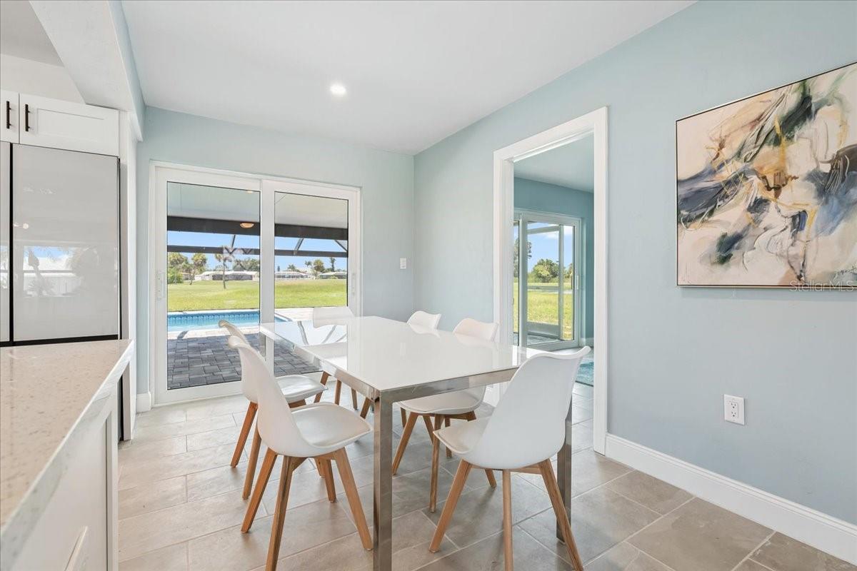 Fully remodeled home with golf and water views in the deed-restricted community of Rotonda West. This stunning home features a spacious open floor plan filled with natural light and wood-look plank tile flooring throughout—no carpet. The kitchen has been completely updated with quartz countertops, soft-close cabinetry, a stylish tile backsplash, and brand-new appliances. A large island provides additional seating and prep space, perfect for both entertaining and everyday living. The living and dining areas are open and inviting, offering a seamless flow for gathering and relaxation. Both bathrooms have been tastefully remodeled with modern finishes, and all bedrooms are generously sized with ample closet space. The home also includes an indoor laundry room with extra storage. Recent upgrades include a new roof in 2022 and hurricane-impact windows and sliding doors throughout. All new Electric AND Plumbing! HVAC only 3 years old! Step outside to your private Florida oasis: a brand-new pool cage encloses nearly 1,800 square feet of outdoor living space with new paver decking. The sparkling pool and expansive lanai are ideal for enjoying the sunshine, outdoor dining, or entertaining while taking in peaceful golf course and water views. Rotonda West offers five golf courses, walking and biking trails, boating, fishing, and is conveniently located near several beautiful Gulf beaches, shops, and restaurants.