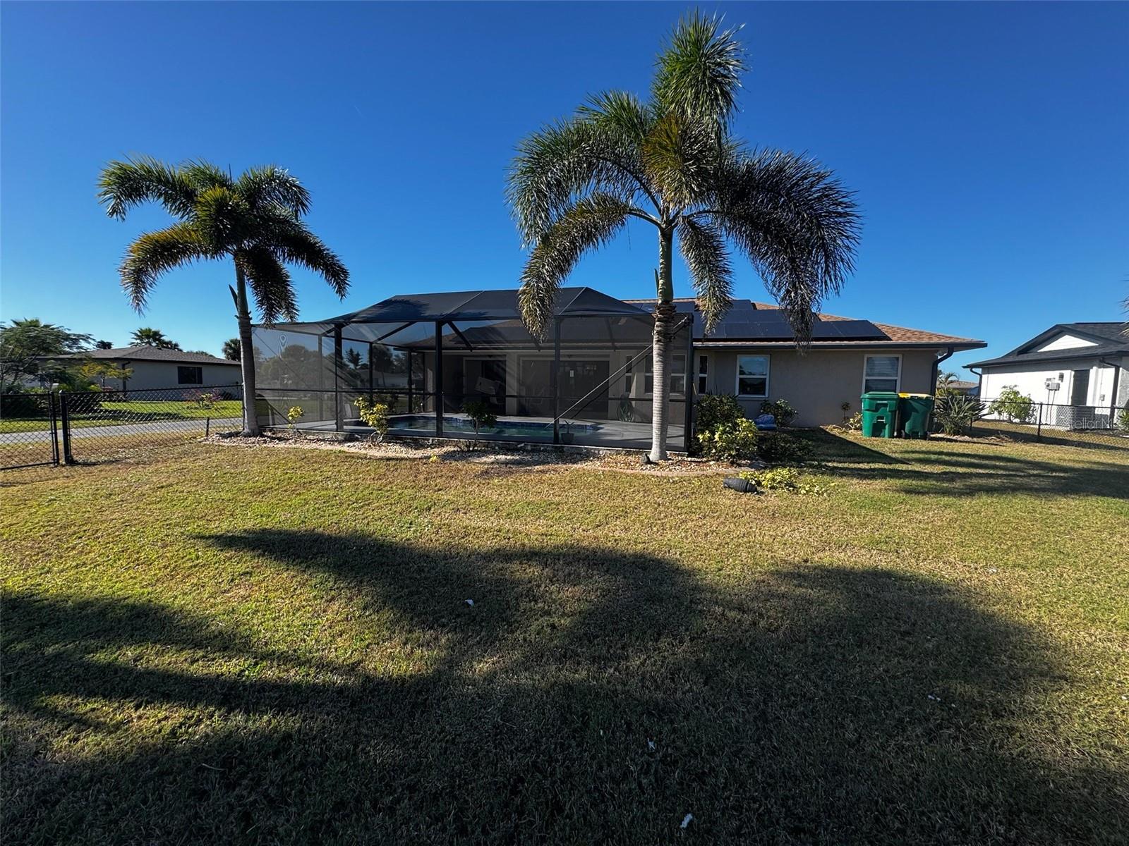 Welcome to this beautifully updated home located at 7 Oakland Hills Court in Rotonda West, offering a thoughtfully renovated interior and major system upgrades that provide both comfort and peace of mind. This residence features a new roof (2023), newly resurfaced pool (2023) with a pool cage installed in 2024, and a new driveway January 2026. The home is equipped with solar panels installed in 2020, to be paid off by the seller at closing, resulting in estimated electric bills just under $30 per month. Additional improvements include a 2022 A/C system with air purification, 2020 hybrid hot water heater, full kitchen, bathroom, and flooring remodel, and a fully fenced yard with irrigation. The remodeled kitchen is designed for both function and style, featuring soft-close cabinetry, pull-out pantry drawers, spice cabinet, cookie sheet cabinet, built-in trash, glass-top stove, pot filler, pop-up electrical outlets in the island and peninsula, glass rinser at the sink, air-button garbage disposal, and a dedicated coffee bar area. The 2023 smart appliances can be controlled via a phone app. Washer and dryer are included. The living area is enhanced with an electric fireplace and TV entertainment mount w/ sound bar nook and ceiling fans, creating a warm and inviting atmosphere. This home offers a rare combination of modern upgrades, energy efficiency, and outdoor enjoyment in a desirable Rotonda West location. A must-see property for buyers seeking quality, efficiency, and move-in-ready living. Walking distance to the Hills Golf and Country Club where locals hang out and open to the public for dinner on Wednesday and Friday nights and Sunday mornings breakfast. Fridays are all you can eat fish night.