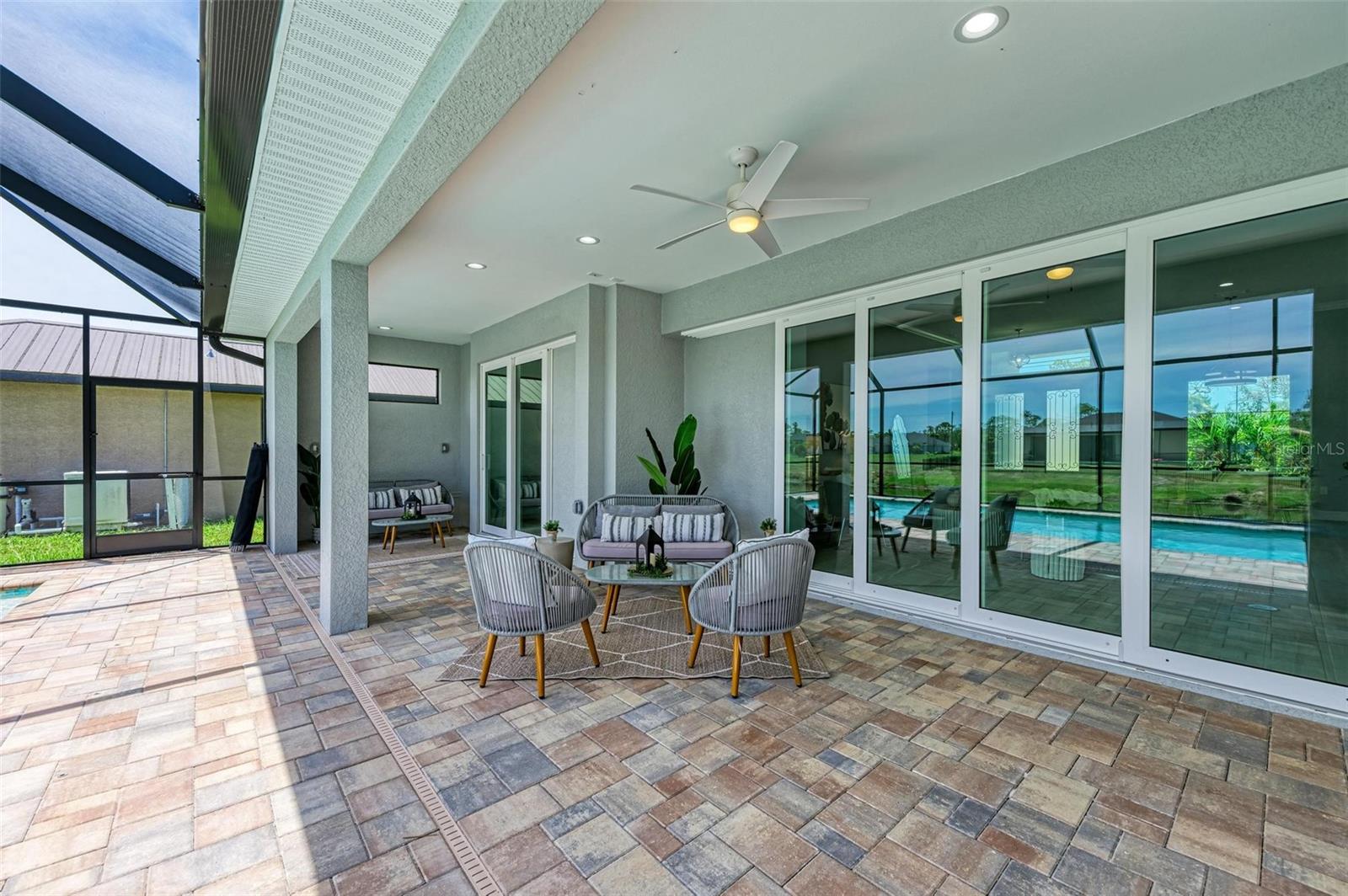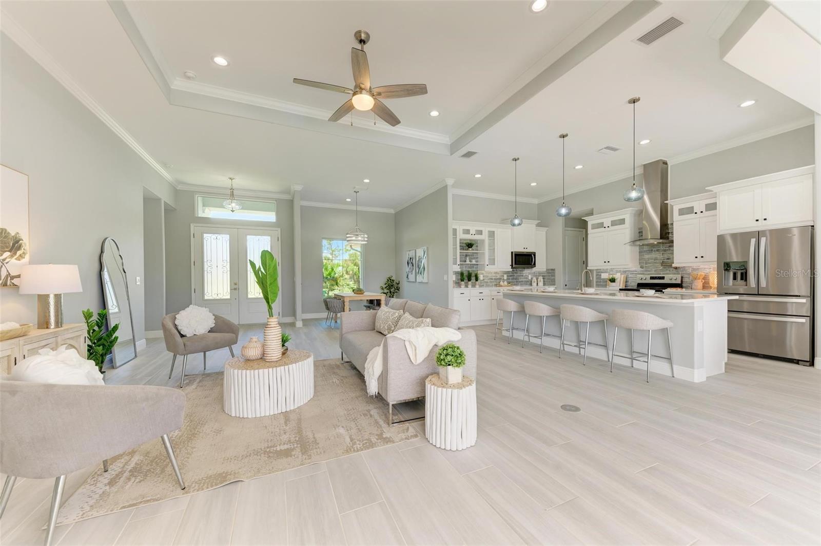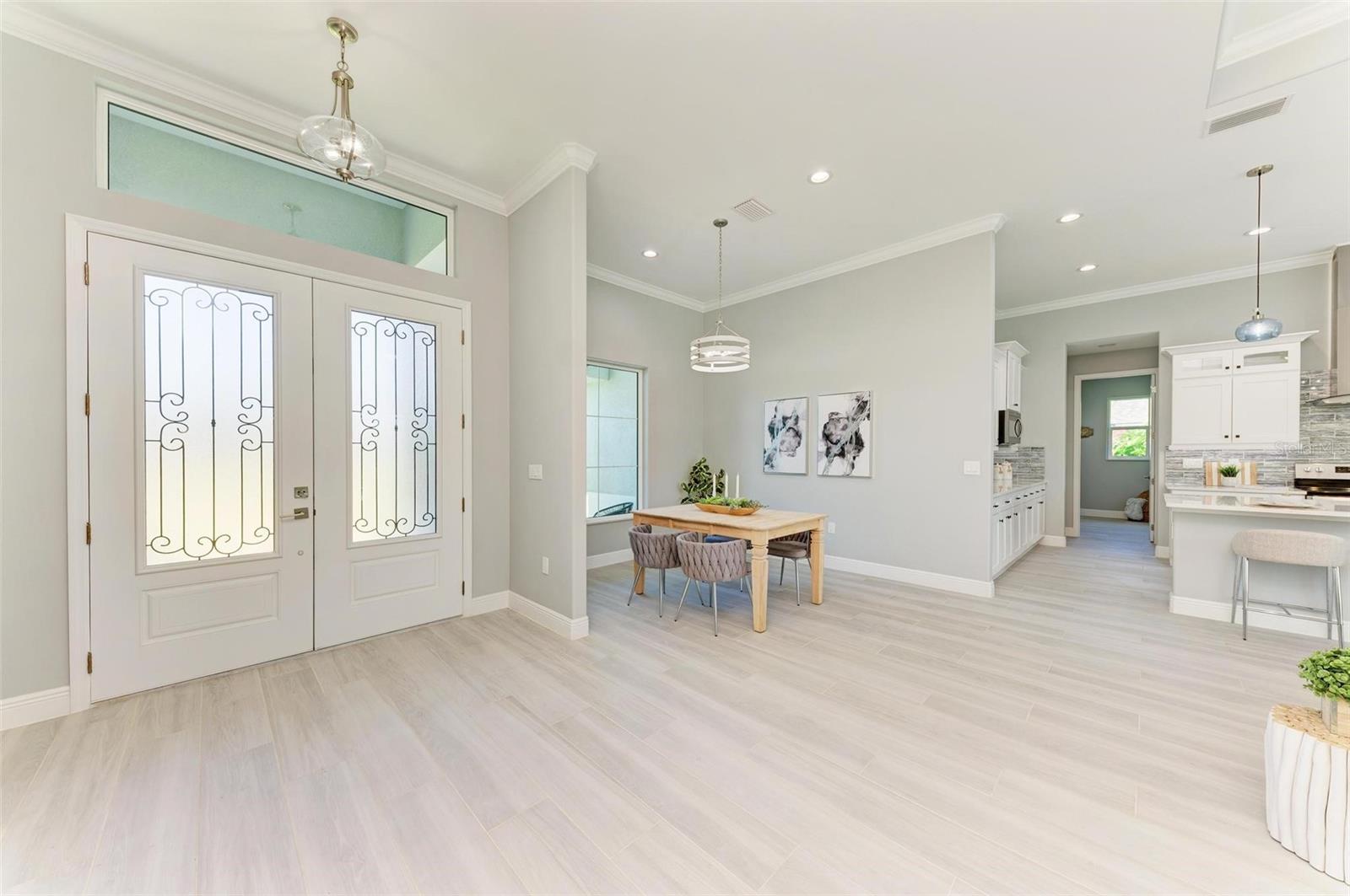 X-FLOOD ZONE - Flood insurance should not be required! New construction pool home on an over sized lot! Home is complete. Photos are of the same floorplan at a different location. This home has a stone accent on the exterior. With a generous 2,170 square feet of living space, this home offers a seamless blend of elegance and functionality. The well-designed layout features 3 bedrooms and 2 baths, strategically arranged in a split floor plan configuration to provide both privacy and harmony. Step through the covered entry and be greeted by 8-foot double impact-rated glass doors that swing open to reveal a spacious expanse with 11-foot ceilings. Your gaze will be immediately drawn to the captivating view of the covered lanai and the inviting pool. The magic truly lies in the zero post corner sliding doors, seamlessly pocketing to one side, granting an uninterrupted connection between the indoors and the outdoors. Prepare to be wowed by the heart of this home – the kitchen. This culinary haven is adorned with top-tier upgrades that are sure to delight any chef. The centerpiece is a striking 33" stainless steel farm sink, nestled within a sprawling quartz countertop island. The glass and stainless-steel range hood elegantly accentuate the custom tile backsplash. Stainless-steel appliances and white shaker soft-close cabinets with glass accents exude both style and functionality. A convenient pot filler faucet over the stove adds an extra layer of convenience. And just a few steps away, a well-appointed walk-in pantry beckons with ample shelving. The open concept floor plan creates a harmonious flow, making entertaining a breeze. A vast family area flaunting a 12-foot tray ceiling, a formal dining room, and a cozy dining nook with a view to the lanai offer the ideal spaces for all your gatherings. The tranquil gray walls harmonize with the plank wood-look porcelain floors, creating an ambiance of modern sophistication. Retreat to the master bedroom, a haven of tranquility featuring a tray ceiling and a pocketing sliding door that leads to the lanai. Dual walk-in closets provide ample storage, while the master bath offers a "car wash" walk-through shower that boasts a granite bench and a dual rain and handheld shower with custom tile accents. White shaker cabinets adorn the dual vanities, offering an abundance of drawer storage. Privacy is ensured with a dedicated toilet closet. Step out onto the lanai to discover your outdoor haven. Covered space, an outdoor ceiling fan, and plumbing for a future outdoor kitchen create the ultimate outdoor living experience. The expansive deck surrounds the inviting pool, featuring a sun shelf with a lighted bubbler – the epitome of relaxation. 779 Boundary Blvd presents an unparalleled opportunity to own a slice of Florida paradise, complete with luxurious upgrades and a thoughtfully designed layout. Don't miss your chance to make this stunning property your own – seize the opportunity now! Pictures are of the same staged model at a different location. Confirm flood zone status and insurance requirements with your lender or insurance agent. Pool plaster and screen to be completed prior to sale close.
