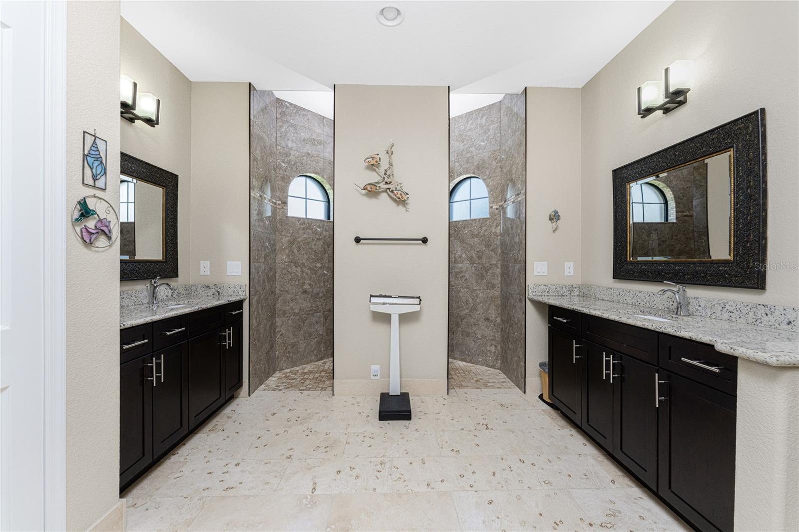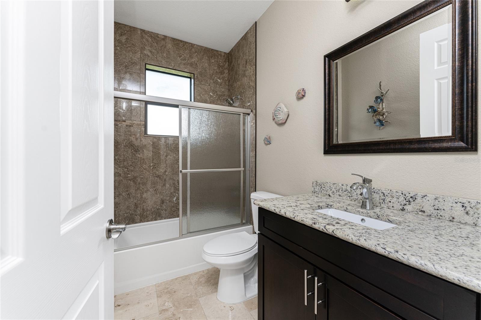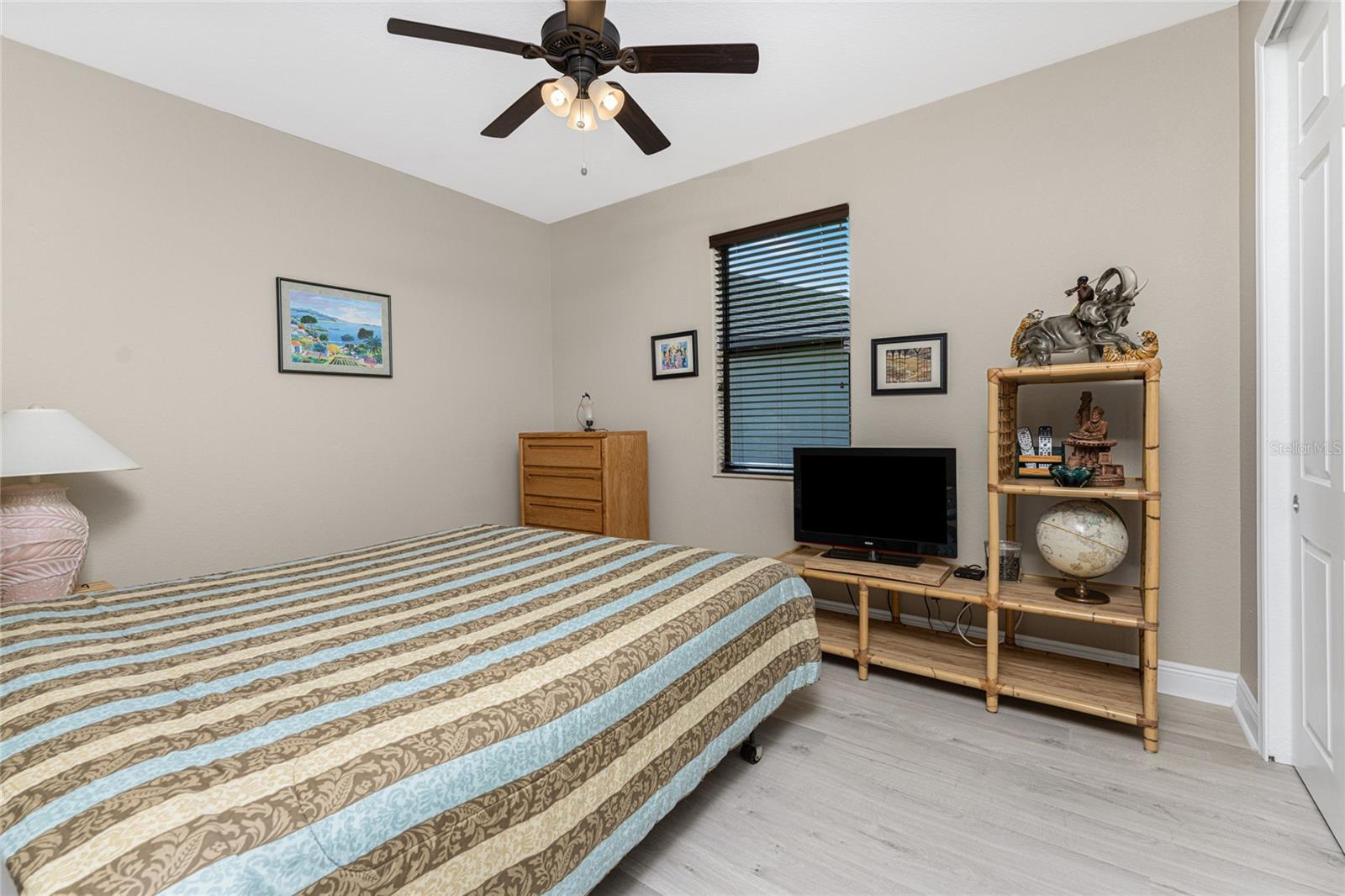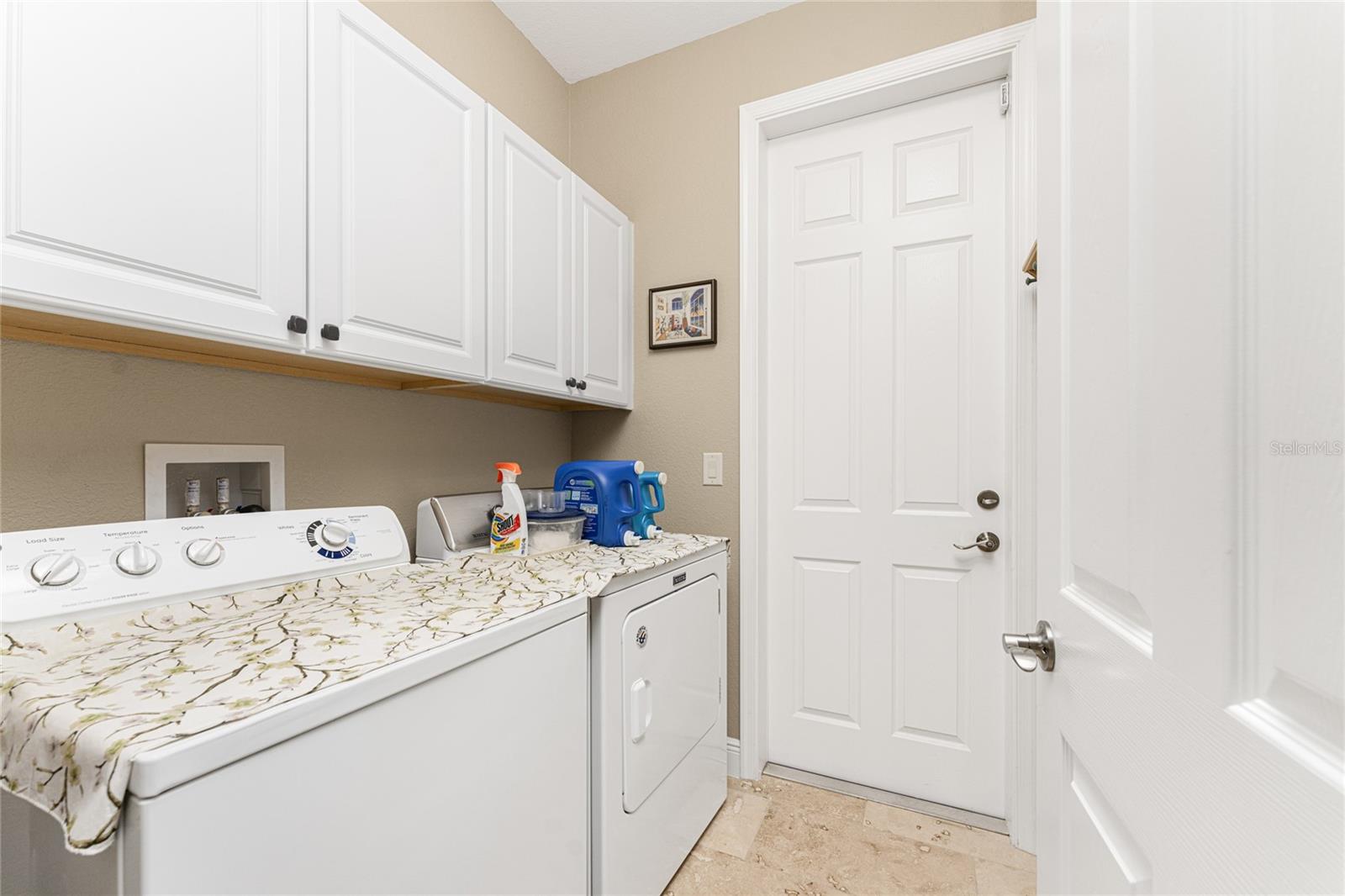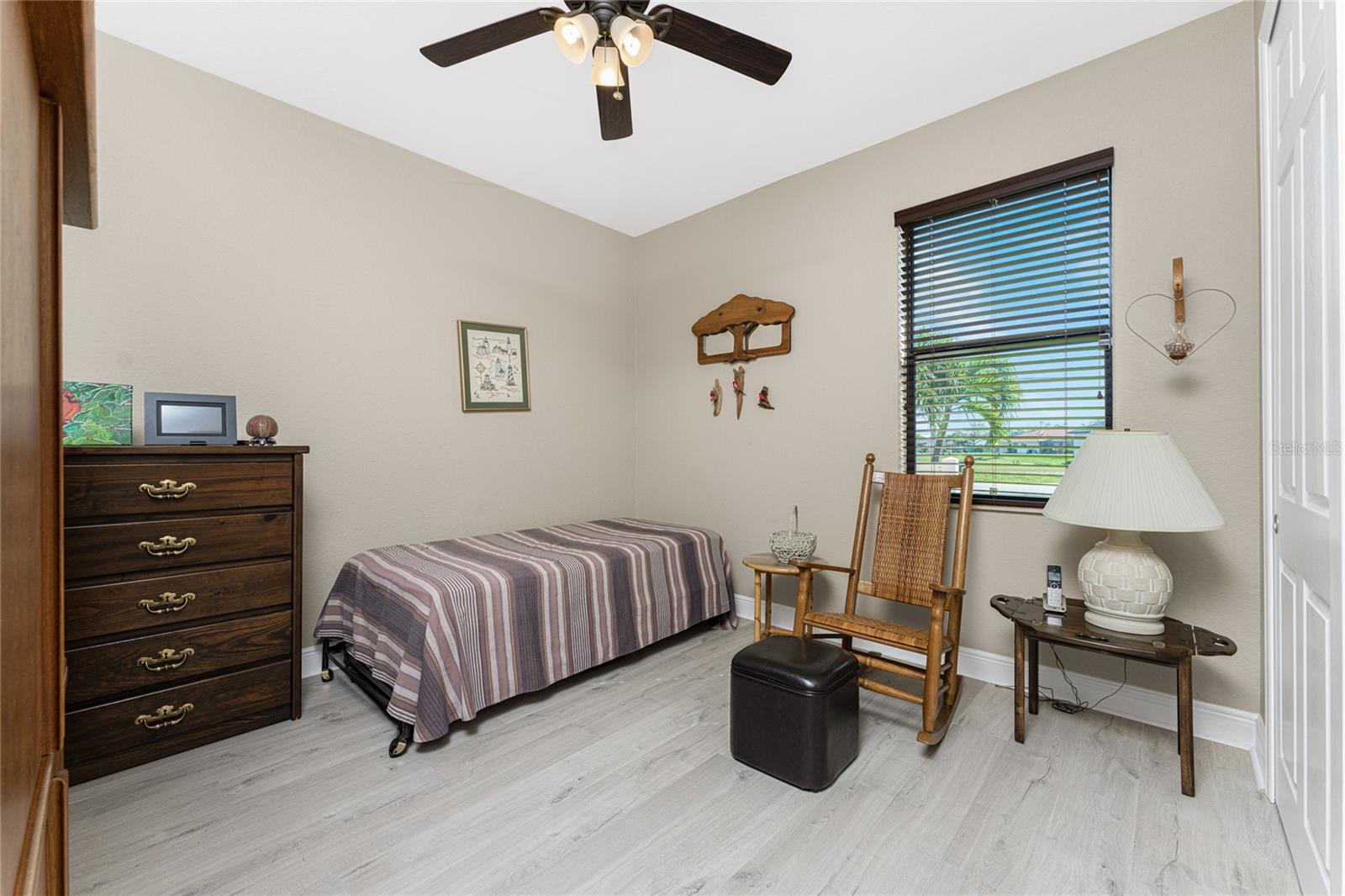 This custom built home has been meticulously maintained and is ready for YOU! Seated on an oversized, corner lot with a circular concrete stamped driveway, all you could dream of has been created with a myriad of additional quality features, details and finishes! As you walk up to the 8' high, double glass doors and step into the foyer, you know this home is going to be everything you want… and more! A spacious "great room" greets you with 12' high coffered & tray ceiling, elegant crown moulding, 8' doorways, and travertine floors throughout most of the home. With the open floor plan you can view the spacious "designer" kitchen with recessed lighting, a large island, dark wood cabinetry with under cabinet lighting, elegant tile backsplash, stunning granite countertops, quality stainless steel appliances including drawer microwave. Enjoy two dining areas--the formal dining room that boasts a 14' double tray ceiling with a stunning chandler, plus the roomy dining area open to the kitchen, with additional cabinets & counter space offering the perfect office space or buffet style dining for all of your holiday gatherings and dinner parties. All of this provides eye-catching views of your surroundings through an 8’ high glass “wall” of sliding and pocketing glass doors with a “zero corner” -- opening the house to your amazing personal retreat, including a spacious (36��� x 11’) covered lanai with a seating area. As if that were not enough, there’s an additional 39’ x 19’ screened enclosure with your private heated pool and nearby outdoor shower – your own private retreat! And there is plenty of room inside this home! With a “split” bedroom plan, the primary suite is separate with a spacious bedroom, tray ceiling with crown moulding, sliding glass pocketing doors to the lanai area, two walk-in closets and the ensuite, spa-like bathroom with separate vanities, large walk-through shower and linen closet. On the opposite side of the house, with a pocket door to ensure privacy for all, there are two additional bedrooms that have laminate flooring and sizeable closets--and the guest bathroom with a tile tub/shower combo & linen closet right outside its door. Combine this with a full 3-car oversized garage giving you plenty of storage – this is a “dream come true” home. Bedroom Closet Type: Walk-in Closet (Primary Bedroom).