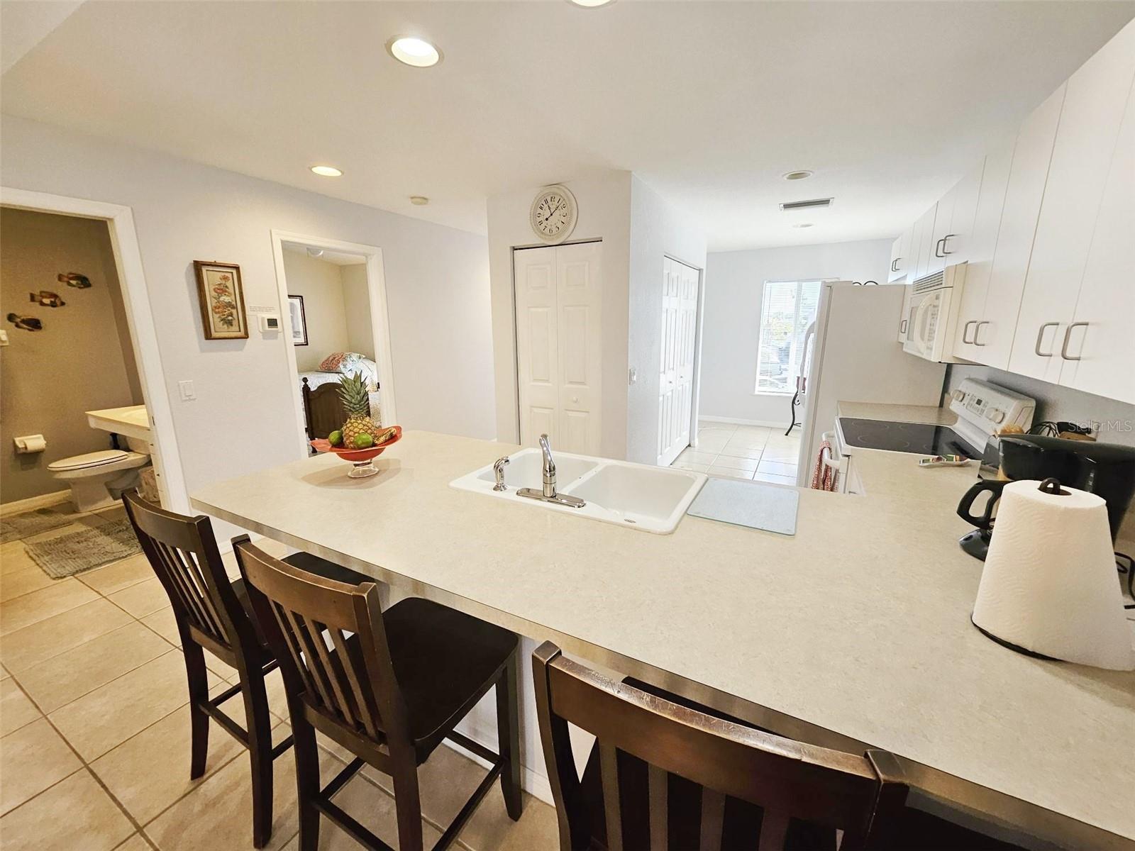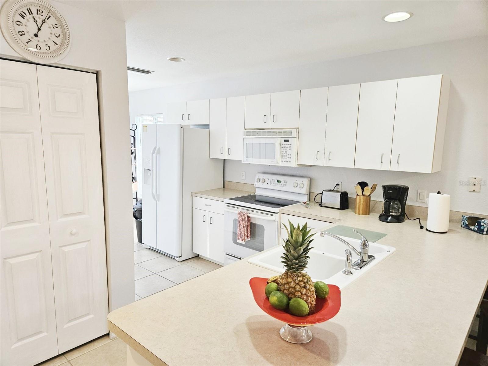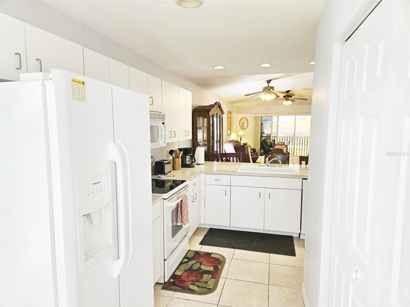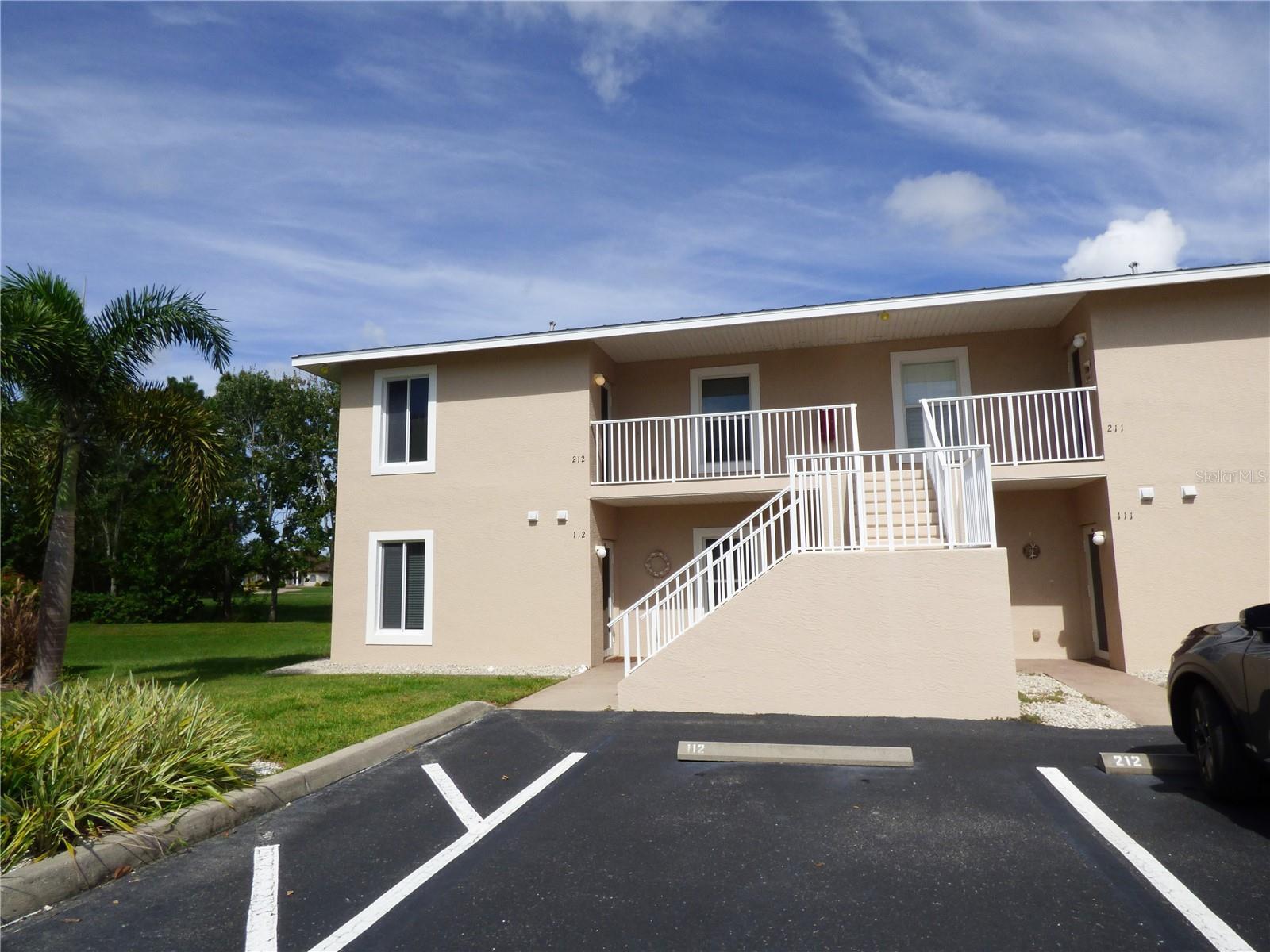 RESHESHED BY OWNER DECEMBER 2024!!! DON'T MISS THIS SECOND-FLOOR TURN KEY END UNIT CONDO WITH A WATER VIEW FROM THE LIVING ROOM AND FOYER. LOCATED IN THE GREAT COMMUNITY OF FILDDERS GREEN NATURE TRAIL IN ROTONDA WEST GOLF COMMUNITY. This end unit is tiled throughout, including the screened (with vinyl sliding doors) terrace/lanai with storage, and great outside views. the deed includes a covered dedicated carport as well as parking space in front of the unit. Fiddlers Green Nature Trail is an exceptionally clean and well-managed community offering so many amenities, a big clubhouse with a kitchen, 2 tennis courts, 2 shuffleboards, and BBQ areas... This unit has a newer HVAC system in 2020, a new washer and dryer in 2021, ... this community is in an area that offers golf, fishing, and the local beaches! The furniture and accessories are not offered in the sale of this condominium it is turn-key furnished what you see is what you get. This unit has been a seasonal rental so well appreciated by the tenants coming back several times.
