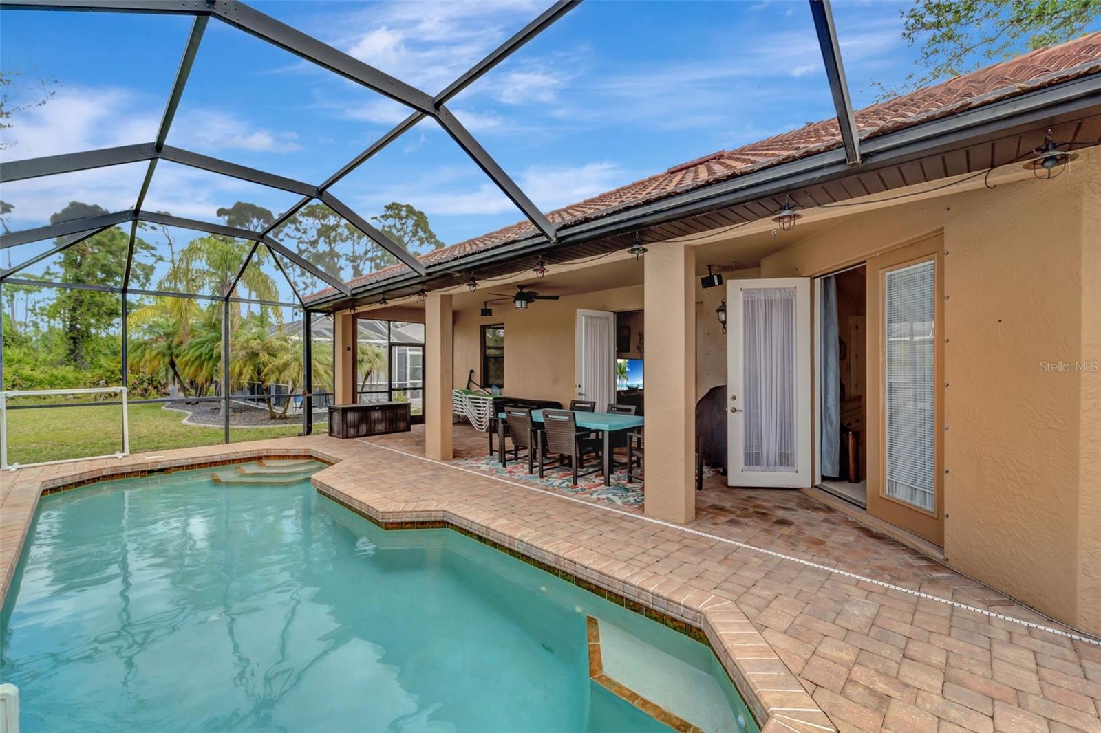 Stunning Well Maintained (~ALWAYS~Gently Used-as a Winter Retreat~)Mediterranean Style Home! As you approach the home please take note of the brick pavers, along with welcoming front porch, mature landscaping and a covered screened entry. As you enter, you are greeted by a formal dining room and to the right a home office/den area. The home comes furnished minus personal items to be kept by the seller. (attached to listing). The kitchen is open and features solid wood cabinets,solid surface counters space, a breakfast area and over-sized pantry. The large living room with french doors over looks your saltwater pool~paver pool deck, with a covered area to keep you cool and plenty of suntanning space with your screened lanai. The Master Suite allows you to step outside via french doors as well. The Master Bath features a separate Tub and Shower with a huge walk-in closet. The Split floor plan allows you and your guests to spread out as the other 2 bedrooms along with a cozy Den and 2nd Bath are on the other side of the home. 2nd bath features a tub and shower combo. Off the Kitchen is the Laundry area complete with cabinets above the Washer/Dryer for additional storage. As you make your way through the laundry area, there is the entrance to the 2 car garage, including hurricane shutters. Additional features to the home are as follows~New Pool Heater, New 17 Seer A/C and Air-Handler, Pre-wired for Surround Sound,Security System (buyer to purchase security contract) and Irrigation System. Now let's discuss the location of the home~NEAR~ Manasota Key, and Boca Grande~ plenty of Beaches to explore for shelling~ If boating and fishing is your thing~ you will be just minutes from several public boat ramps and world class fishing both inshore and off shore~ If Golfing is your thing~ you are surrounded by several courses~Bike paths throughout the community~ Plenty of local Seafood and Home Cooking Restaurants most are family owned and operated near by~ Artsy Dearborn just minutes away~ Airport travel is made easy with locations such as Ft. Myers, Punta Gorda, Sarasota and Tampa! Make your appointment today! Easy to show!