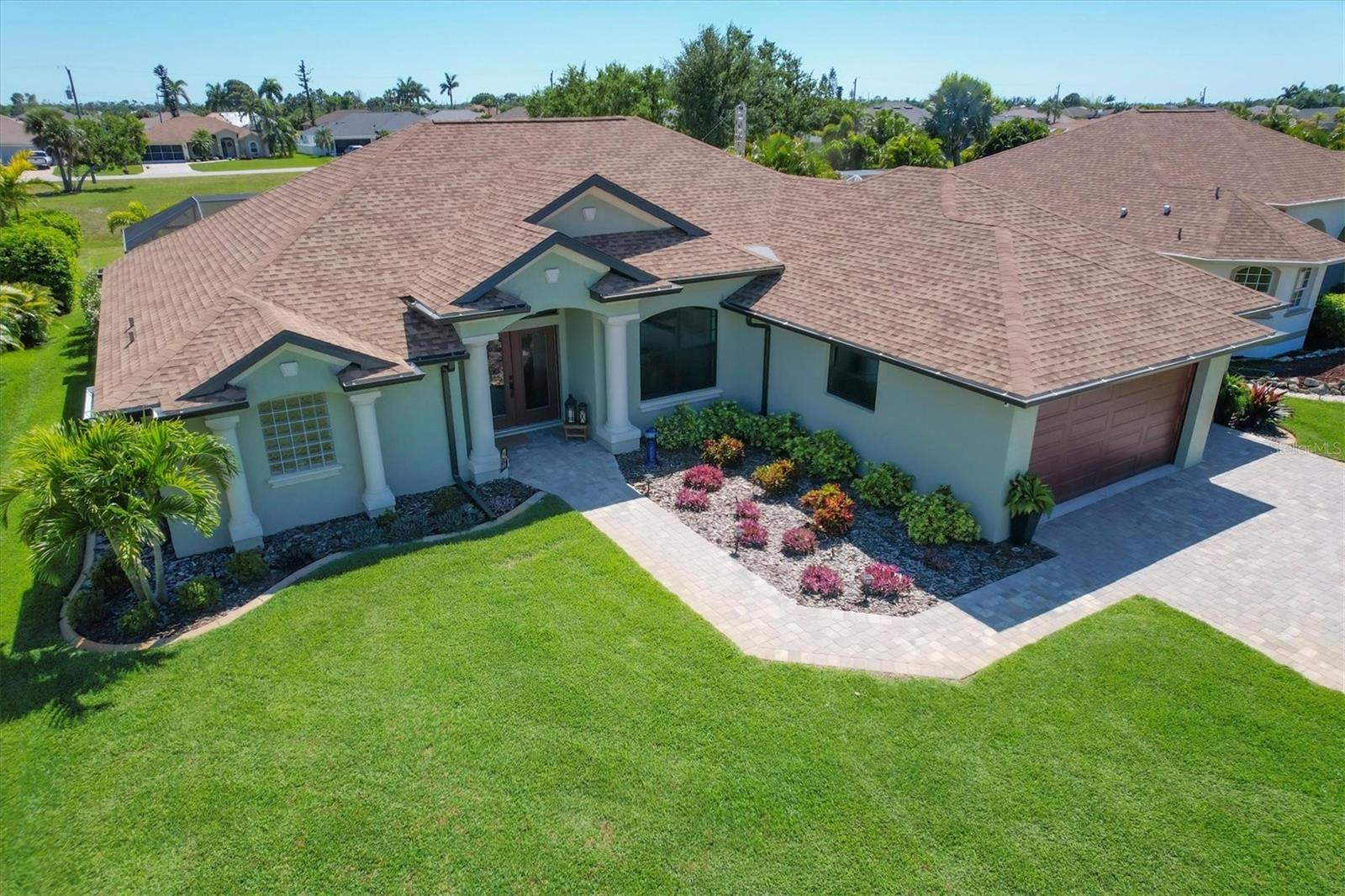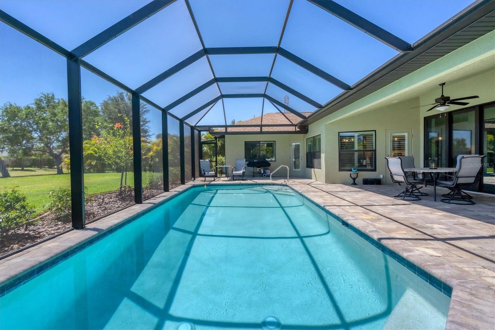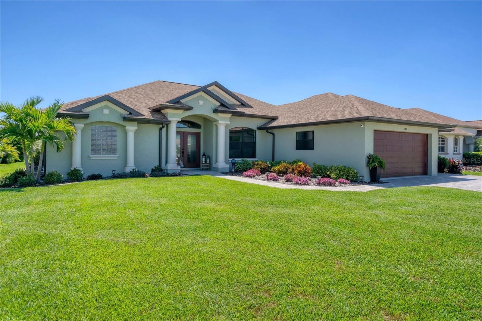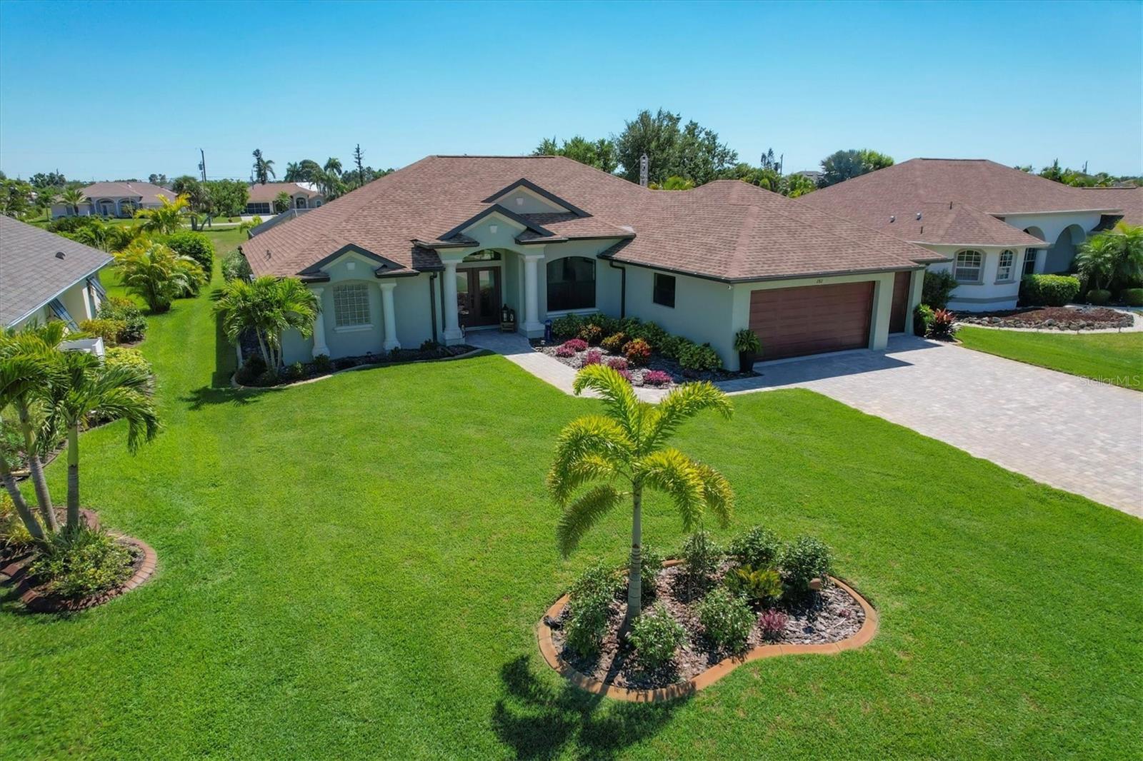 Experience luxury living at its finest in this meticulously maintained home that emits sophistication inside and out. From the moment you arrive, the beautifully manicured landscaping, sustained by two wells, sets the tone for what awaits within.The expansive driveway, adorned with pavers, leads to a remarkable three-door garage, boasting over 1000 sq ft of space—ideal for car enthusiasts or those with a penchant for storing toys.Step through the front door to discover the spaciousness of the open floor plan, featuring a thoughtfully designed 3-bedroom split layout with generously sized rooms and ample closet space. The great room is an entertainer's dream, seamlessly flowing into the large, gourmet kitchen adorned with two pantries, a sizable island, upgraded granite countertops, and matching Samsung stainless steel appliances.Adjacent to the kitchen, a cozy coffee bar beckons, leading to a well-appointed laundry room complete with custom sink and shelving. Plantation shutters adorn the impact glass windows, offering both elegance and practicality by providing shade while welcoming in an abundance of natural light.The primary bedroom suite is a sanctuary, boasting pool views and an exquisite en suite bathroom with an oversized shower and walk-in closet. Throughout the main living areas, upgraded porcelain wood tile flooring adds a touch of luxury, complemented by crown molding and tray ceilings—an ode to the fine craftsmanship of this luxury builder.Step outside through the glass sliders to discover the epitome of outdoor living—a paradise awaiting your enjoyment. The extended patio area provides coverage for comfortable grilling even in inclement weather, while the heated pool overlooks an expansive, meticulously manicured backyard.Nestled in a prime location, this home offers more than just luxury living—it's a lifestyle. Within minutes, you can indulge in rounds of golf at several public courses, sink your toes into beautiful sandy beaches, or embark on world-class fishing adventures.Don't miss the opportunity to make this gem your own and start living your best life today. Contact us to schedule your private viewing and experience the epitome of luxury living firsthand.