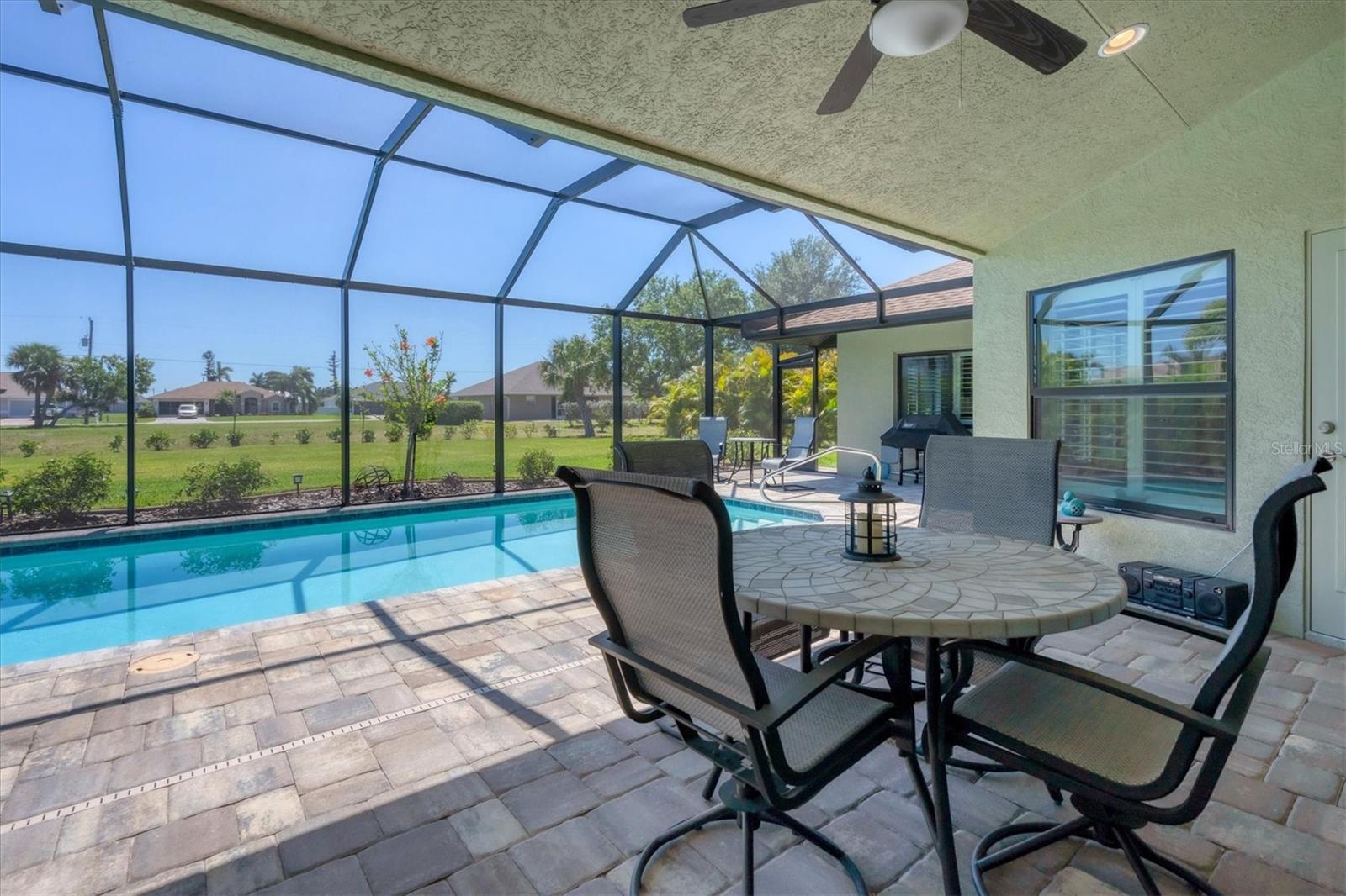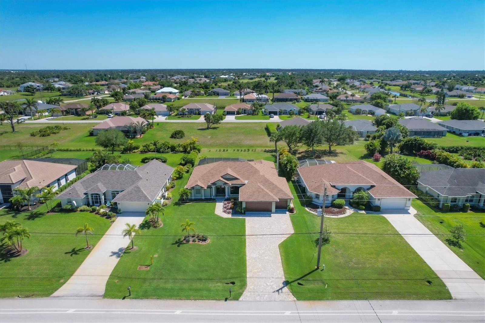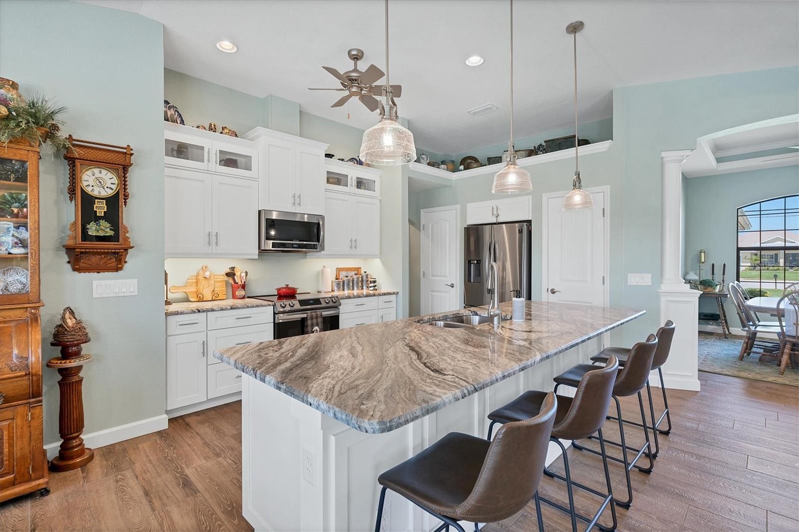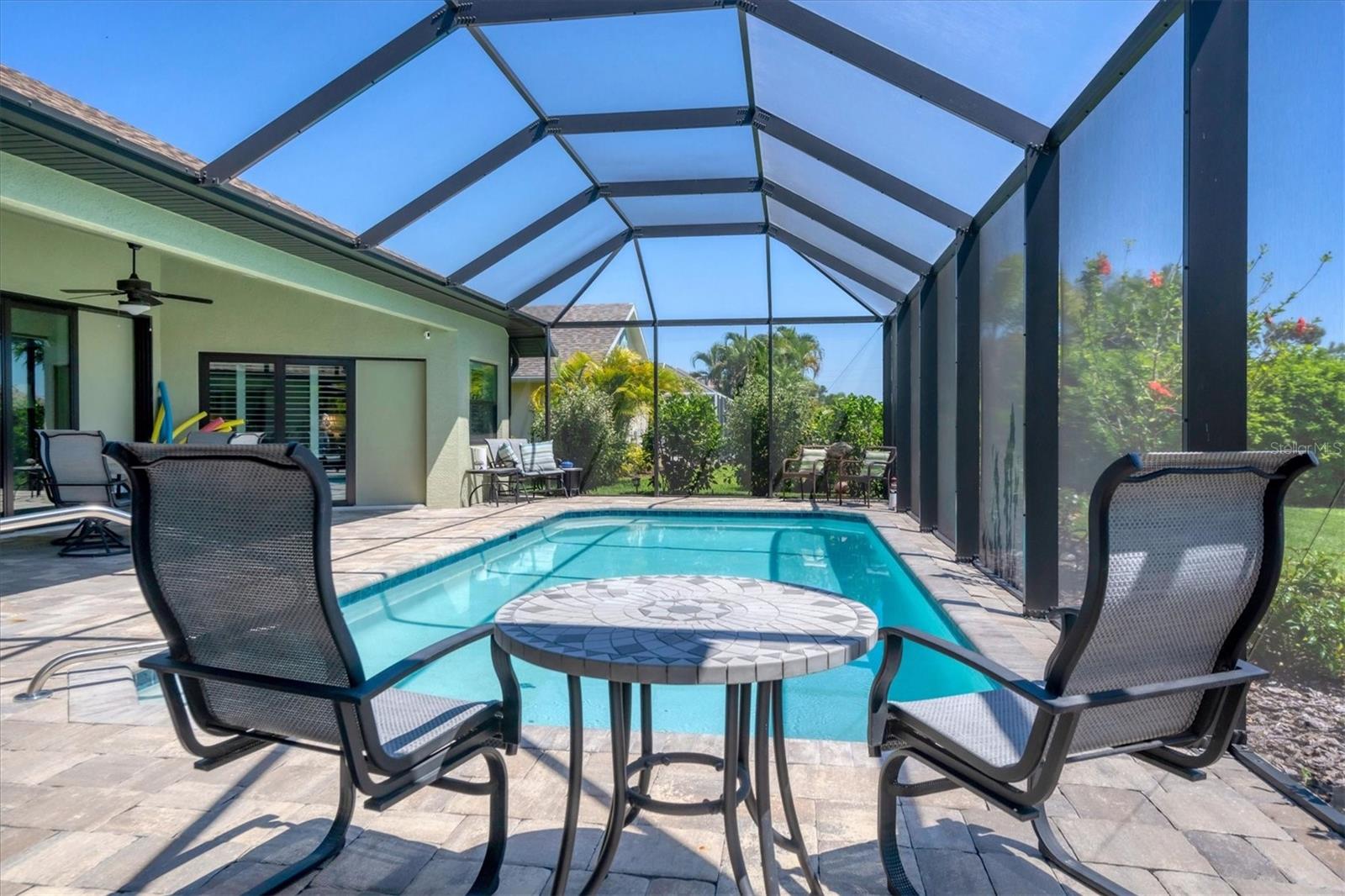 Experience luxury living at its finest in this meticulously maintained home that emits sophistication inside and out. From the moment you arrive, the beautifully manicured landscaping, sustained by two wells, sets the tone for what awaits within.The expansive driveway, adorned with pavers, leads to a remarkable three-door garage, boasting over 1000 sq ft of space—ideal for car enthusiasts or those with a penchant for storing toys.Step through the front door to discover the spaciousness of the open floor plan, featuring a thoughtfully designed 3-bedroom split layout with generously sized rooms and ample closet space. The great room is an entertainer's dream, seamlessly flowing into the large, gourmet kitchen adorned with two pantries, a sizable island, upgraded granite countertops, and matching Samsung stainless steel appliances.Adjacent to the kitchen, a cozy coffee bar beckons, leading to a well-appointed laundry room complete with custom sink and shelving. Plantation shutters adorn the impact glass windows, offering both elegance and practicality by providing shade while welcoming in an abundance of natural light.The primary bedroom suite is a sanctuary, boasting pool views and an exquisite en suite bathroom with an oversized shower and walk-in closet. Throughout the main living areas, upgraded porcelain wood tile flooring adds a touch of luxury, complemented by crown molding and tray ceilings—an ode to the fine craftsmanship of this luxury builder.Step outside through the glass sliders to discover the epitome of outdoor living—a paradise awaiting your enjoyment. The extended patio area provides coverage for comfortable grilling even in inclement weather, while the heated pool overlooks an expansive, meticulously manicured backyard.Nestled in a prime location, this home offers more than just luxury living—it's a lifestyle. Within minutes, you can indulge in rounds of golf at several public courses, sink your toes into beautiful sandy beaches, or embark on world-class fishing adventures.Don't miss the opportunity to make this gem your own and start living your best life today. Contact us to schedule your private viewing and experience the epitome of luxury living firsthand.