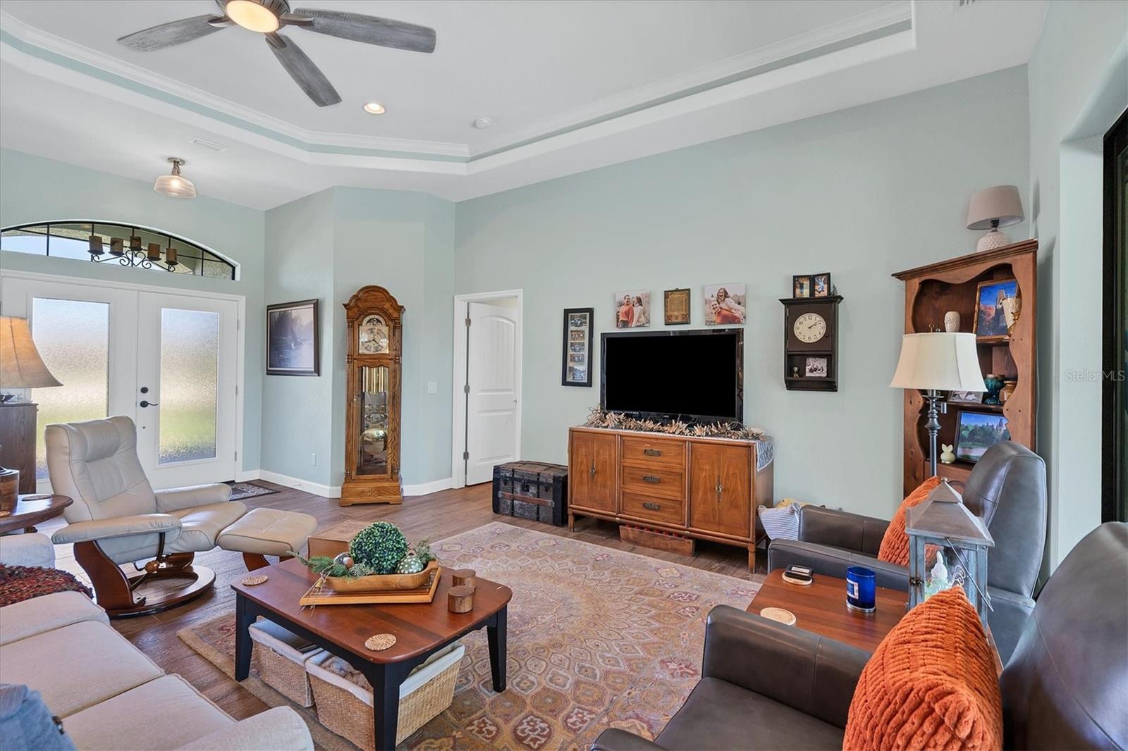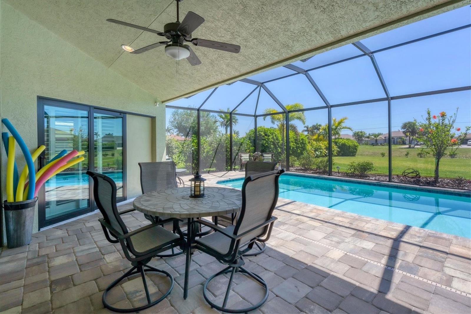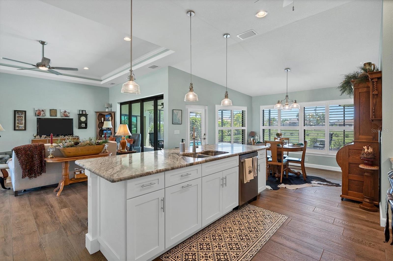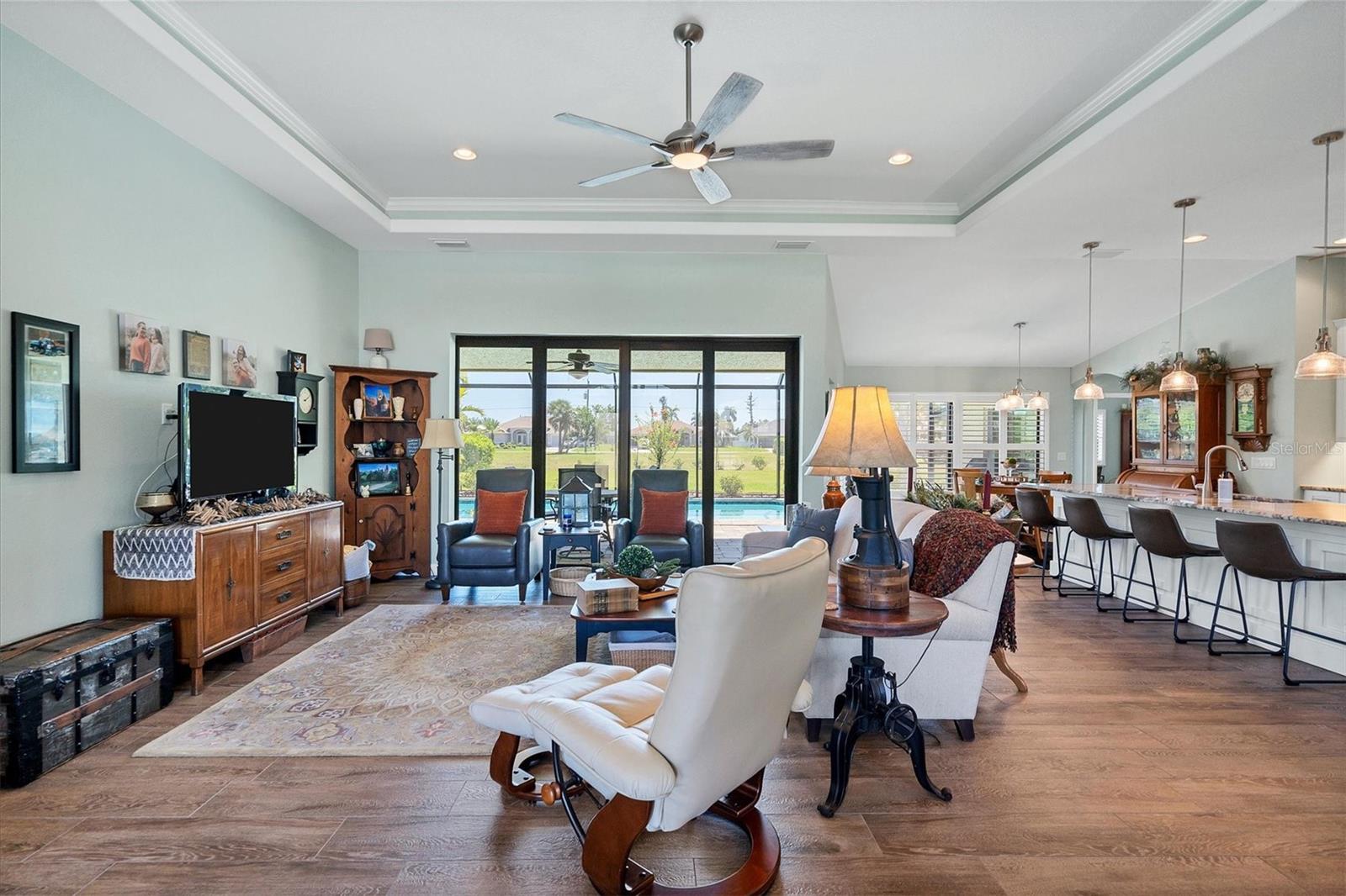 Experience luxury living at its finest in this meticulously maintained home that emits sophistication inside and out. From the moment you arrive, the beautifully manicured landscaping, sustained by two wells, sets the tone for what awaits within.The expansive driveway, adorned with pavers, leads to a remarkable three-door garage, boasting over 1000 sq ft of space—ideal for car enthusiasts or those with a penchant for storing toys.Step through the front door to discover the spaciousness of the open floor plan, featuring a thoughtfully designed 3-bedroom split layout with generously sized rooms and ample closet space. The great room is an entertainer's dream, seamlessly flowing into the large, gourmet kitchen adorned with two pantries, a sizable island, upgraded granite countertops, and matching Samsung stainless steel appliances.Adjacent to the kitchen, a cozy coffee bar beckons, leading to a well-appointed laundry room complete with custom sink and shelving. Plantation shutters adorn the impact glass windows, offering both elegance and practicality by providing shade while welcoming in an abundance of natural light.The primary bedroom suite is a sanctuary, boasting pool views and an exquisite en suite bathroom with an oversized shower and walk-in closet. Throughout the main living areas, upgraded porcelain wood tile flooring adds a touch of luxury, complemented by crown molding and tray ceilings—an ode to the fine craftsmanship of this luxury builder.Step outside through the glass sliders to discover the epitome of outdoor living—a paradise awaiting your enjoyment. The extended patio area provides coverage for comfortable grilling even in inclement weather, while the heated pool overlooks an expansive, meticulously manicured backyard.Nestled in a prime location, this home offers more than just luxury living—it's a lifestyle. Within minutes, you can indulge in rounds of golf at several public courses, sink your toes into beautiful sandy beaches, or embark on world-class fishing adventures.Don't miss the opportunity to make this gem your own and start living your best life today. Contact us to schedule your private viewing and experience the epitome of luxury living firsthand.