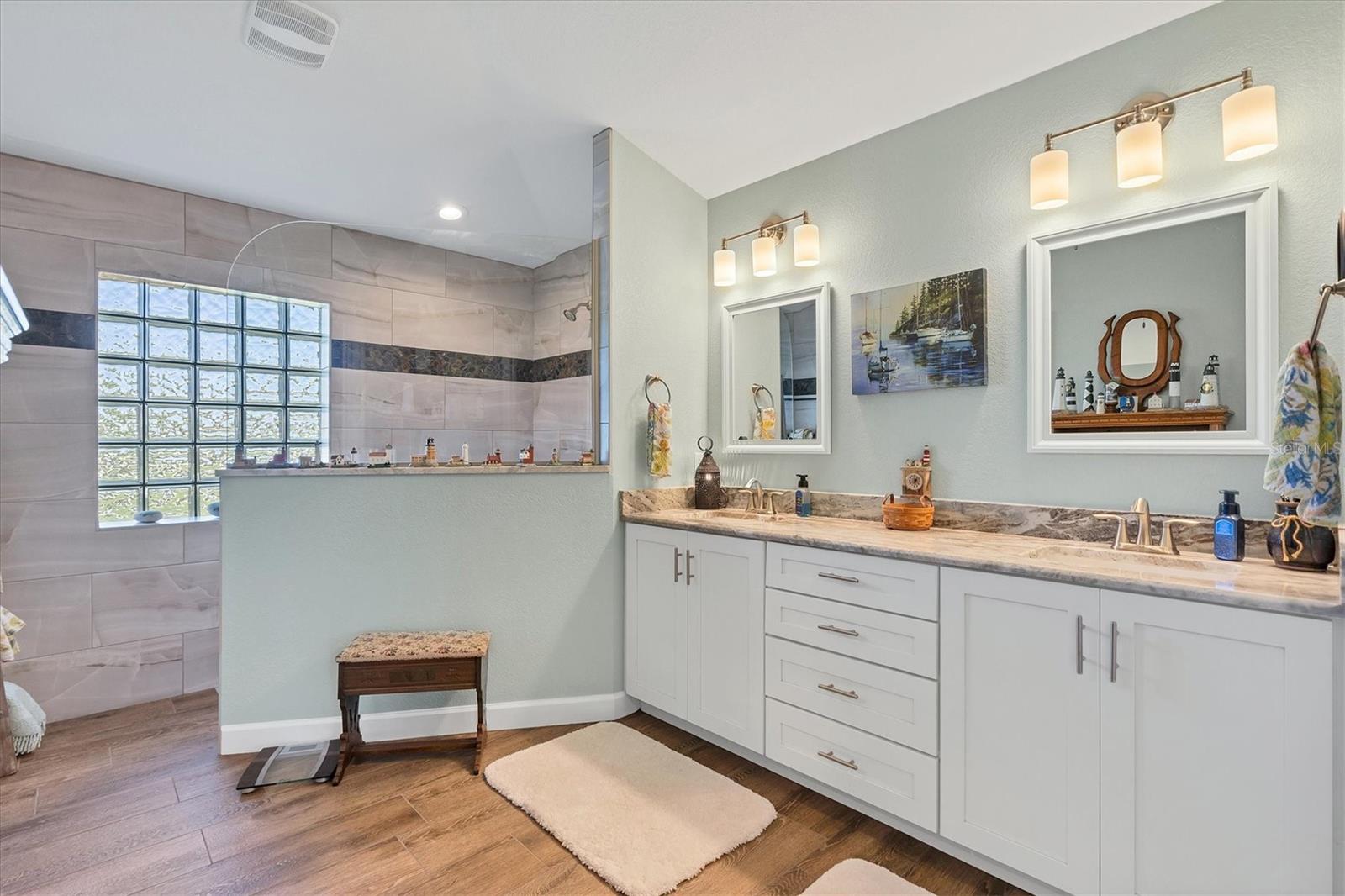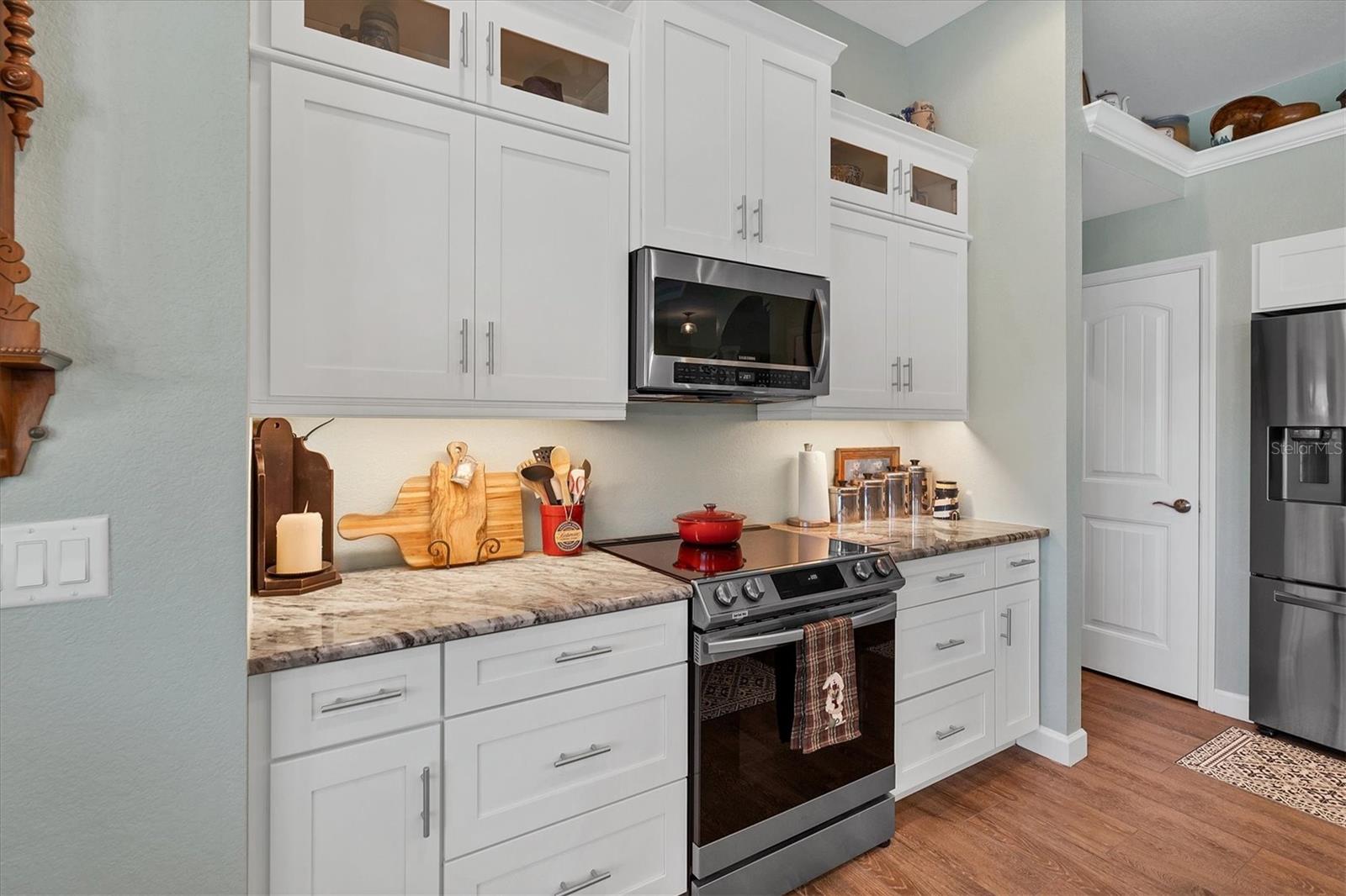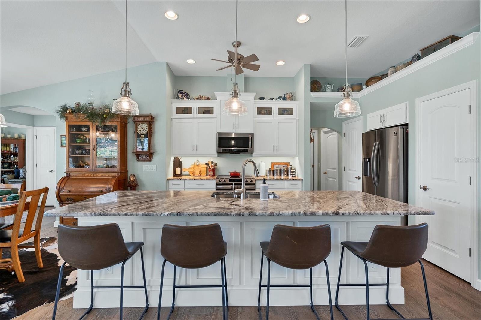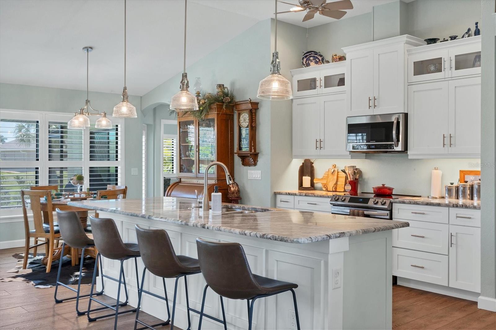 Experience luxury living at its finest in this meticulously maintained home that emits sophistication inside and out. From the moment you arrive, the beautifully manicured landscaping, sustained by two wells, sets the tone for what awaits within.The expansive driveway, adorned with pavers, leads to a remarkable three-door garage, boasting over 1000 sq ft of space—ideal for car enthusiasts or those with a penchant for storing toys.Step through the front door to discover the spaciousness of the open floor plan, featuring a thoughtfully designed 3-bedroom split layout with generously sized rooms and ample closet space. The great room is an entertainer's dream, seamlessly flowing into the large, gourmet kitchen adorned with two pantries, a sizable island, upgraded granite countertops, and matching Samsung stainless steel appliances.Adjacent to the kitchen, a cozy coffee bar beckons, leading to a well-appointed laundry room complete with custom sink and shelving. Plantation shutters adorn the impact glass windows, offering both elegance and practicality by providing shade while welcoming in an abundance of natural light.The primary bedroom suite is a sanctuary, boasting pool views and an exquisite en suite bathroom with an oversized shower and walk-in closet. Throughout the main living areas, upgraded porcelain wood tile flooring adds a touch of luxury, complemented by crown molding and tray ceilings—an ode to the fine craftsmanship of this luxury builder.Step outside through the glass sliders to discover the epitome of outdoor living—a paradise awaiting your enjoyment. The extended patio area provides coverage for comfortable grilling even in inclement weather, while the heated pool overlooks an expansive, meticulously manicured backyard.Nestled in a prime location, this home offers more than just luxury living—it's a lifestyle. Within minutes, you can indulge in rounds of golf at several public courses, sink your toes into beautiful sandy beaches, or embark on world-class fishing adventures.Don't miss the opportunity to make this gem your own and start living your best life today. Contact us to schedule your private viewing and experience the epitome of luxury living firsthand.