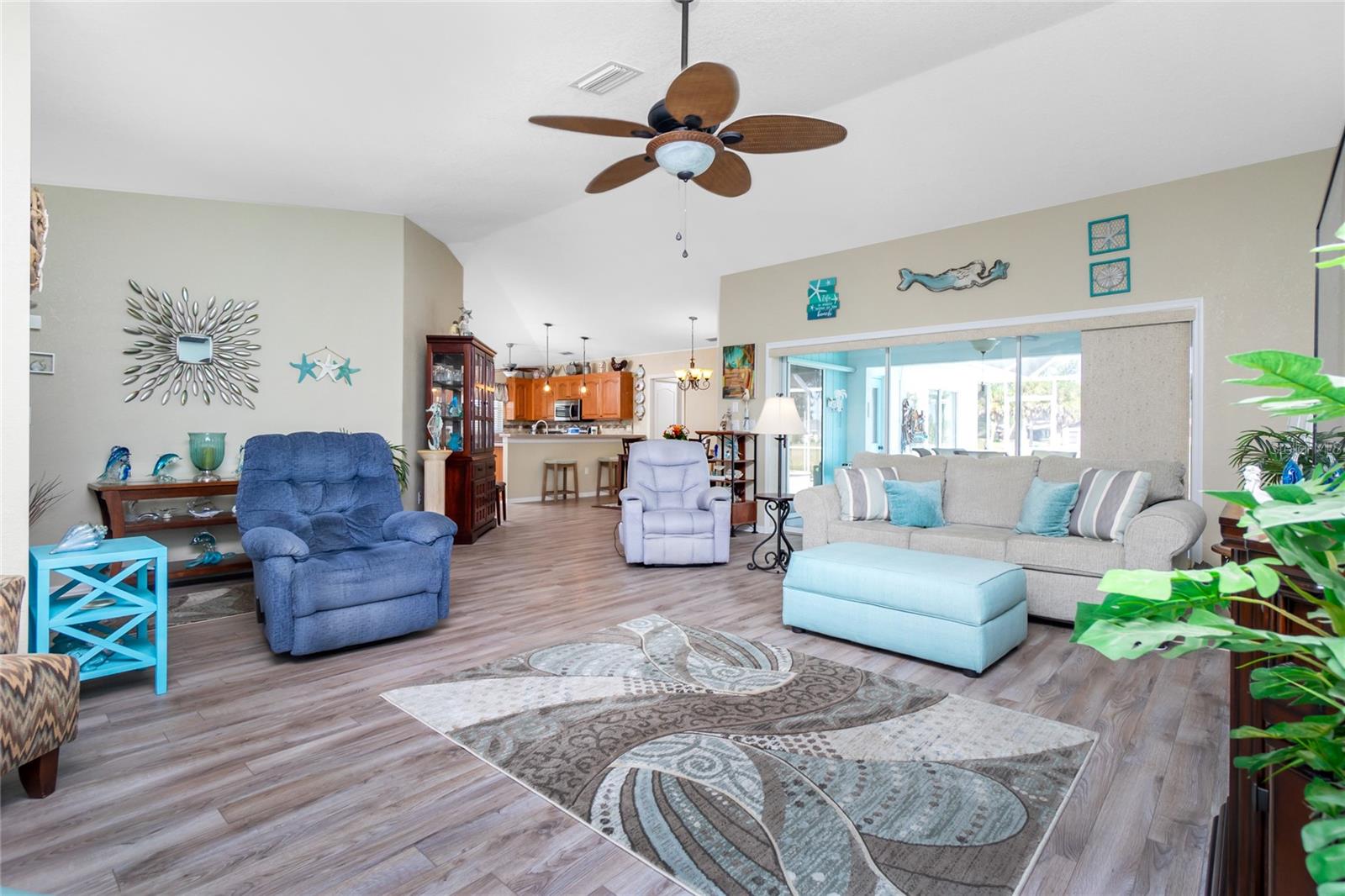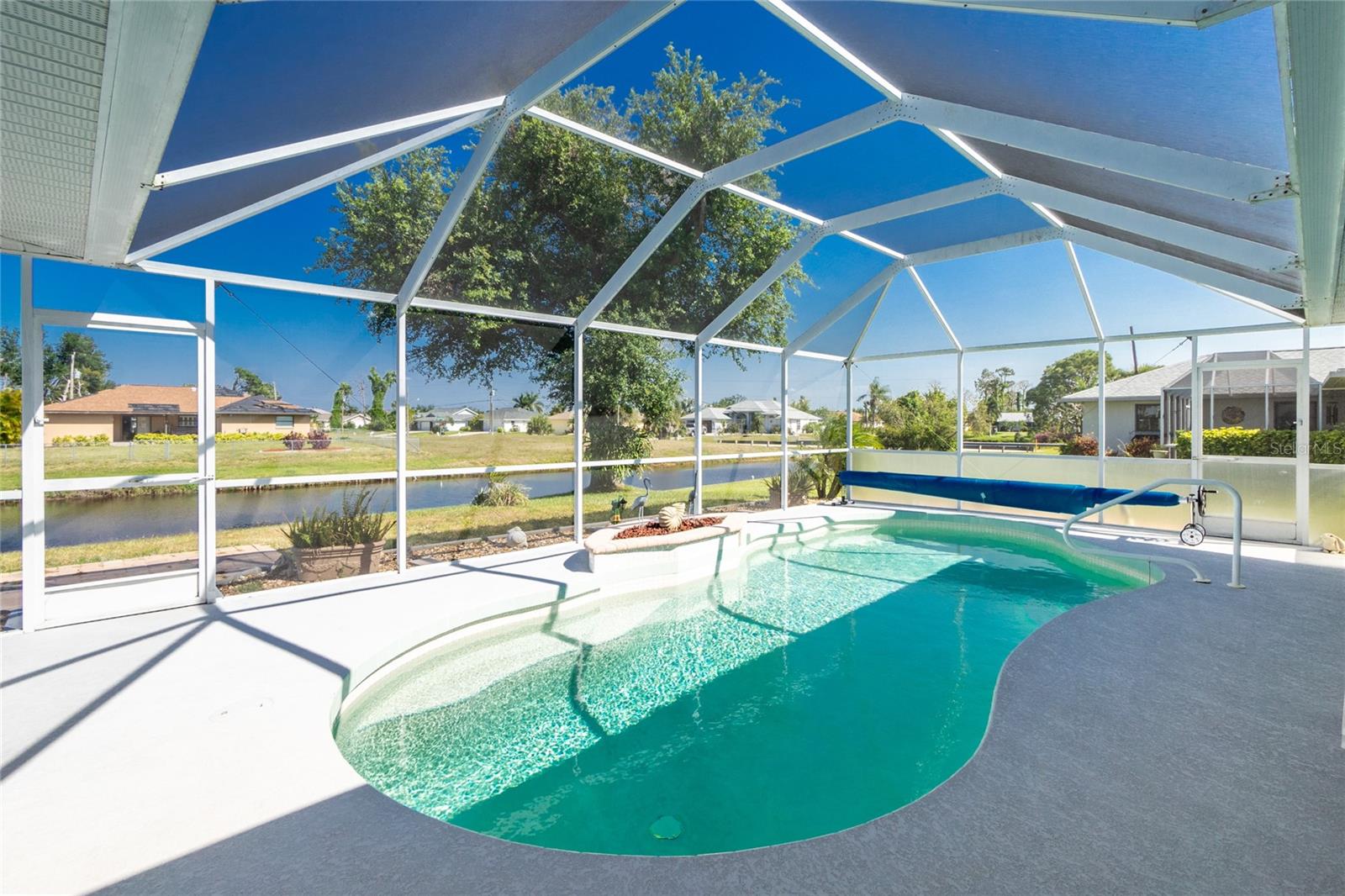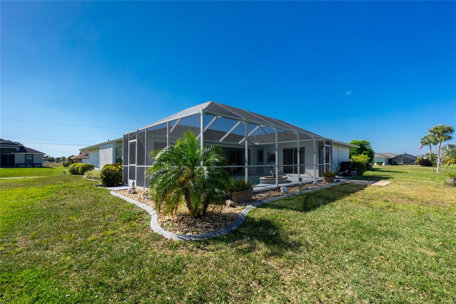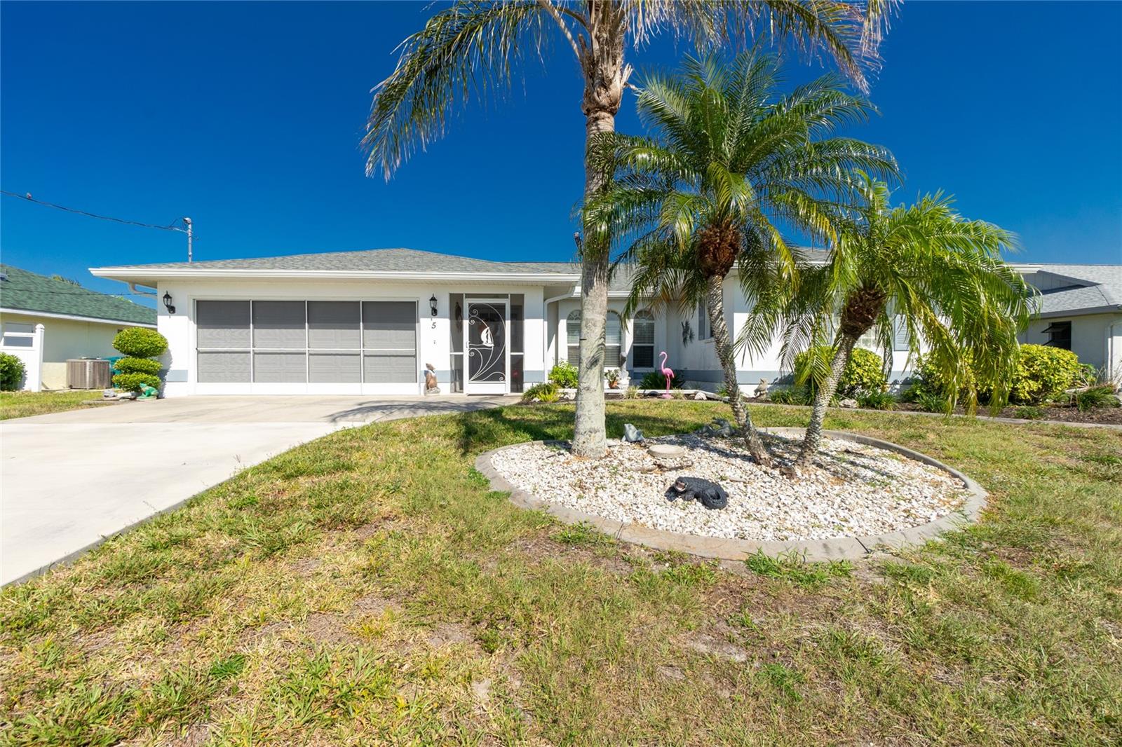HOME SWEET HOME! This 3 bedroom, 2 bath, 2 car garage HEATED POOL home sits on a premium Rotonda lot on a freshwater canal. The home has a Great Room floor plan which blends the kitchen, living and dining rooms together. The home also has the split floor plan which puts the primary bedroom at the opposite side to the guest bedrooms. The kitchen features a breakfast bar and solid wood cabinets. The primary bedroom has a tray ceiling, a bump out and sliding pocketing doors leading to the pool and lanai. The primary bathroom features dual vanities, a jetted tub, a separate shower stall and a private commode. There are 2 walk-in closets in the primary bedroom and bedrooms 2 and 3 also have walk-in closets. There are also sliding pocketing doors off the Great Room and eat-in kitchen which bring the "outside inside" especially during the cooler winter months. Rotonda West is a wonderful deed restricted community which is close to world-class beaches, lots of golfing, shopping and dining. Book your appointment to see this great home today ... you won't be disappointed!