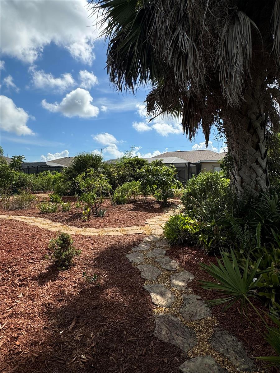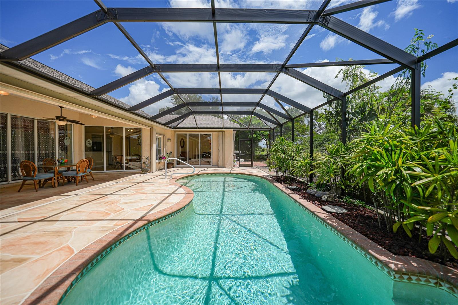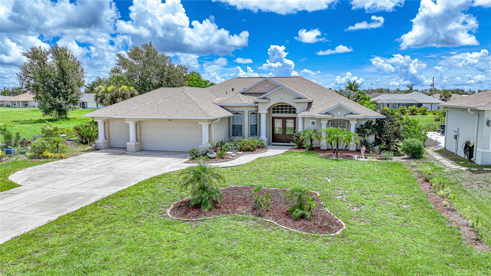 HUGE PRICE DECREASE!! Are you a gardening enthusiast looking for a peaceful retreat or need more elbow room?? Then take a peek at this spacious house boasting three bedrooms, two baths, a THREE CAR GARAGE and HEATED POOL with your own PRIVATE GARDEN PARADISE as a backyard surrounded by LUSH GREENERY and VIBRANT flowers!! And it's just been freshly mulched! Situated on OVER A THIRD OF AN ACRE, this property offers city water/sewer and is NOT IN A FLOOD ZONE!!!! <br> <br> With a substantial living area spanning 2300 sq ft, you’ll find a dignified formal living room and dining area as well as a generous family room with ample space for both family and visitors. The primary bedroom is expansive with newly installed laminate floors complete with it own en-suite bathroom boasting a sizable Roman Tub, walk in shower, private water closet and an immense walk in closet! The other two bedrooms situated on the other side of home have been upgraded with modern laminate flooring and are equally impressive in size! <br> <br> The entrance is adorned with double front doors with glass panels, numerous windows throughout and four glass pocket sliders leading to the pool deck area allowing an abundance of natural light all day! The kitchen is equipped with stainless steel appliances, two double door pantries, plenty of cupboard space, granite counters and a separate counter area that can be used as a buffet or coffee bar. Adjacent to the kitchen you’ll find a spacious dinette area perfect for your entertaining needs. Alternatively, you can utilize the formal dining room featuring a beautiful tray ceiling and crown molding for special occasions. Other interior highlights include recessed lighting, newer modern fans in most rooms, 18” ceramic tile in the living/kitchen/dinette areas, pocket doors for privacy, MANABLOC PLUMBING and fresh paint! <br> <br> Step outside to the pool area and you'll be greeted by a SPARKLING HEATED POOL allowing year round enjoyment. Explore the private garden where you can stroll along the stepping stone path taking in the beauty of butterflies and breathtaking sunsets. The PRIVATE GARDEN boasts a variety of plants including FRUIT and PALM TREES and CACTI along with numerous potted plants, shrubbery and flowers! Use your imagination to bring this space back to life this summer!! Other exterior features include ACCORDIAN HURRICANE SHUTTERS for peace of mind, rain gutters, an irrigation sprinkler system with rain barrels, beautiful arches and column architecture. The property offers a deep lot with a long driveway and plenty of parking. Inside utility/laundry room complete with slop sink, cupboards and storage. <br> <br> Located in the remarkable area of Rotonda West, this property is surrounded by 5 golf courses offering a total of 99 holes. Additionally there are walking and biking trails, a stunning 165 acre park, serene lakes, lush landscaping, and a new community center. Our PRISTINE GULF BEACHES including Englewood and Boca Grande are just a short drive away. If you enjoy the outdoors there are ample opportunities for fishing, boating and water sports. Historic downtown Punta Gorda or Dearborn Street in Englewood are both worth a visit for their charming shops, eateries and Farmer's Market's. Close proximity to local and regional airports. ROOF 2022, pool heater 2023, AC 2019, Water heater 2019.