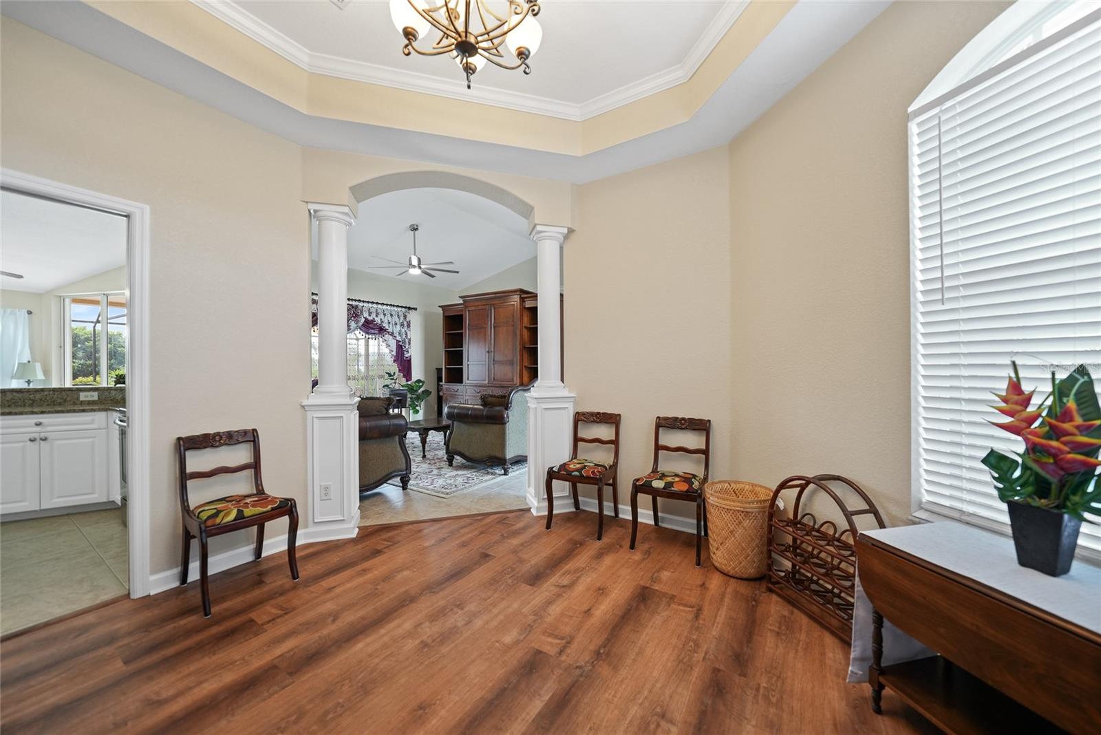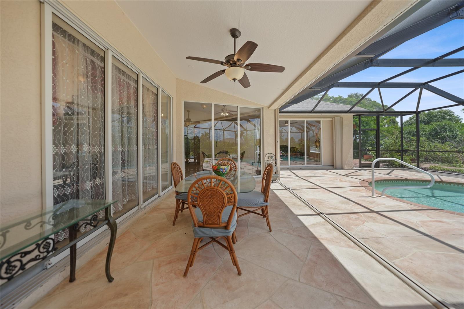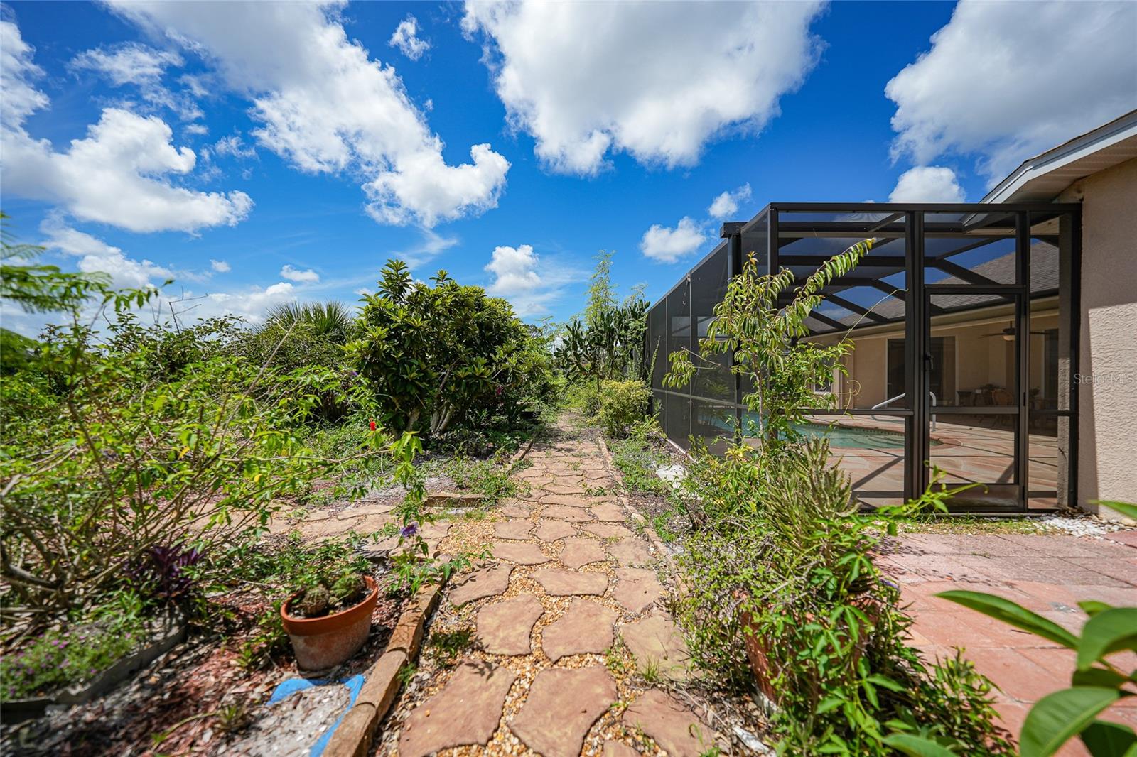 HUGE PRICE DECREASE!! Are you a gardening enthusiast looking for a peaceful retreat or need more elbow room?? Then take a peek at this spacious house boasting three bedrooms, two baths, a THREE CAR GARAGE and HEATED POOL with your own PRIVATE GARDEN PARADISE as a backyard surrounded by LUSH GREENERY and VIBRANT flowers!! And it's just been freshly mulched! Situated on OVER A THIRD OF AN ACRE, this property offers city water/sewer and is NOT IN A FLOOD ZONE!!!! <br> <br> With a substantial living area spanning 2300 sq ft, you’ll find a dignified formal living room and dining area as well as a generous family room with ample space for both family and visitors. The primary bedroom is expansive with newly installed laminate floors complete with it own en-suite bathroom boasting a sizable Roman Tub, walk in shower, private water closet and an immense walk in closet! The other two bedrooms situated on the other side of home have been upgraded with modern laminate flooring and are equally impressive in size! <br> <br> The entrance is adorned with double front doors with glass panels, numerous windows throughout and four glass pocket sliders leading to the pool deck area allowing an abundance of natural light all day! The kitchen is equipped with stainless steel appliances, two double door pantries, plenty of cupboard space, granite counters and a separate counter area that can be used as a buffet or coffee bar. Adjacent to the kitchen you’ll find a spacious dinette area perfect for your entertaining needs. Alternatively, you can utilize the formal dining room featuring a beautiful tray ceiling and crown molding for special occasions. Other interior highlights include recessed lighting, newer modern fans in most rooms, 18” ceramic tile in the living/kitchen/dinette areas, pocket doors for privacy, MANABLOC PLUMBING and fresh paint! <br> <br> Step outside to the pool area and you'll be greeted by a SPARKLING HEATED POOL allowing year round enjoyment. Explore the private garden where you can stroll along the stepping stone path taking in the beauty of butterflies and breathtaking sunsets. The PRIVATE GARDEN boasts a variety of plants including FRUIT and PALM TREES and CACTI along with numerous potted plants, shrubbery and flowers! Use your imagination to bring this space back to life this summer!! Other exterior features include ACCORDIAN HURRICANE SHUTTERS for peace of mind, rain gutters, an irrigation sprinkler system with rain barrels, beautiful arches and column architecture. The property offers a deep lot with a long driveway and plenty of parking. Inside utility/laundry room complete with slop sink, cupboards and storage. <br> <br> Located in the remarkable area of Rotonda West, this property is surrounded by 5 golf courses offering a total of 99 holes. Additionally there are walking and biking trails, a stunning 165 acre park, serene lakes, lush landscaping, and a new community center. Our PRISTINE GULF BEACHES including Englewood and Boca Grande are just a short drive away. If you enjoy the outdoors there are ample opportunities for fishing, boating and water sports. Historic downtown Punta Gorda or Dearborn Street in Englewood are both worth a visit for their charming shops, eateries and Farmer's Market's. Close proximity to local and regional airports. ROOF 2022, pool heater 2023, AC 2019, Water heater 2019.