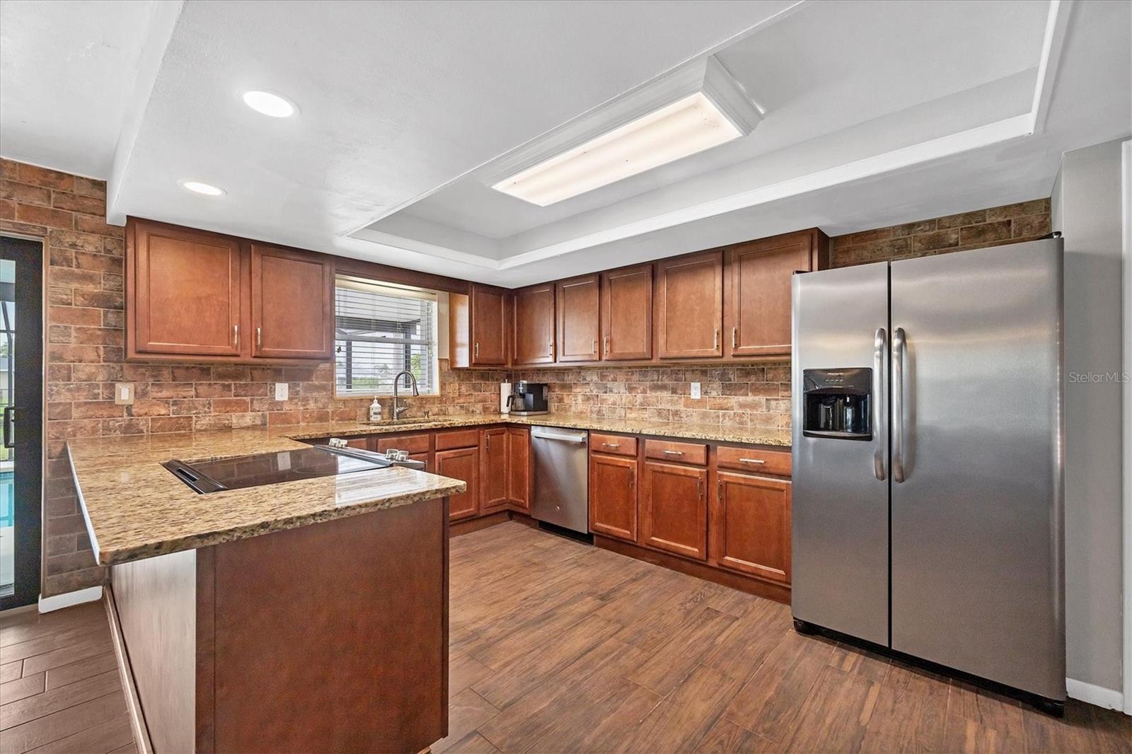 NEW OVERSIZED pool cage just installed in this fully fenced in 3 beds, 2 baths, 2 car garage waterfront home that's minutes from the beach! Find luxury and comfort in this skillfully crafted and well-maintained home in the community of Rotonda West. Let the relaxation begin when you are greeted with the most serene waterfall pond feature, and double french doors in the enclosed front porch. Upon entering the foyer, you will notice an illuminating and open floor plan with updated porcelain plank style tiles that run seamless throughout. The clean contemporary kitchen offers ample storage and working space with solid wood cabinets, granite countertops, and stainless steel appliances. Dazzle your company seated at the breakfast bar by cooking your favorite dishes on the center island cooktop or gather in the spacious dining room for endless entertaining. The primary bedroom provides lanai access with sliding glass doors. The custom designed seashore charmed glass bathroom boasts a whirlpool bathtub, fully tiled separate shower with glass doors, dual glass sinks, built in shelving, and walk in closet. Enjoy peace of mind, new roof 2022. Lounge in your heated oversized swimming pool, kayak or enjoy boating on the canal, or simply sit back at your firepit patio. Utilize this active community of Rotonda West, with 5 well maintained and challenging golf courses along with tennis, hiking, biking, and many other clubs and groups. Besides your double wide freshwater canal waterway where you can enjoy kayaking or boating this community offers 26 miles of canals stocked with freshwater fish, lakes, and an abundant number of ponds. Enjoy all of this in your backyard or venture out 15 minutes from home to Englewood and its 5 different public beaches or head 15 minutes south to Boca Grande home of world class tarpon fishing with its welcoming beaches, restaurants, and shops. Start enjoying paradise, book your showing today!