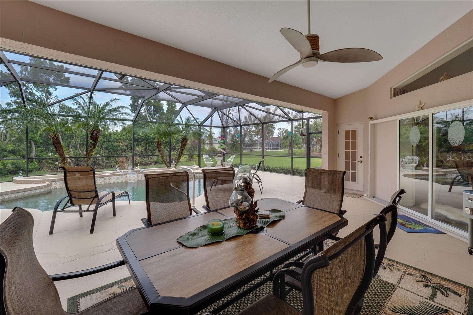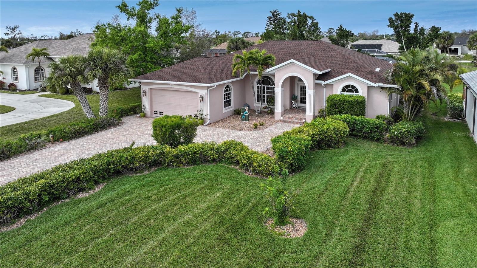 PRICE IMPROVEMENT! Experience the pinnacle of Florida living in this stunning 2,577 sq. ft. coastal retreat, where timeless elegance meets modern luxury. Ideally situated between Sarasota and Fort Myers, this 3-bedroom, 2.5-bath executive home is a private oasis, boasting a heated saltwater pool with convenient access from the home’s interior and a beautifully paved driveway on an oversized lot in the highly sought-after Rotonda West community on the Cape Haze Peninsula. Meticulously maintained and lightly lived in for only six months each year, this home exudes model-quality sophistication. Recent upgrades include a new HVAC system (2021), Firelite landscape stone, custom LED pool lighting, elegant plantation and Bahama shutters, a new roof (December 2022), new gutters, an enhanced irrigation system, and fresh interior and exterior paint (2021). Step inside to soaring volume ceilings, crown molding, and a spacious open-concept design highlighted by a large great room—ideal for both relaxation and entertaining. The chef’s kitchen is a masterpiece, featuring granite countertops, rich cherry-stained wood cabinetry, stainless steel appliances, double built-in convection ovens, and an oversized granite island—perfect for gathering with family and friends. The luxurious primary suite offers a spa-like retreat with a soaking tub, dual granite vanities, and a glass-block walk-in shower. Expansive sliding pocket doors open the living spaces to the lanai, creating a seamless transition to the outdoors, where the heated saltwater pool awaits for year-round enjoyment. The convenient pool-access half bath enhances the home’s functional design, ensuring effortless indoor-outdoor living. Nestled among golf courses, parks, and scenic walking trails, this home is just minutes from the pristine beaches of Boca Grande and Manasota Key, as well as world-class tarpon fishing, boating, marinas, shopping, and dining. Don’t miss this rare opportunity to own a piece of Florida paradise!