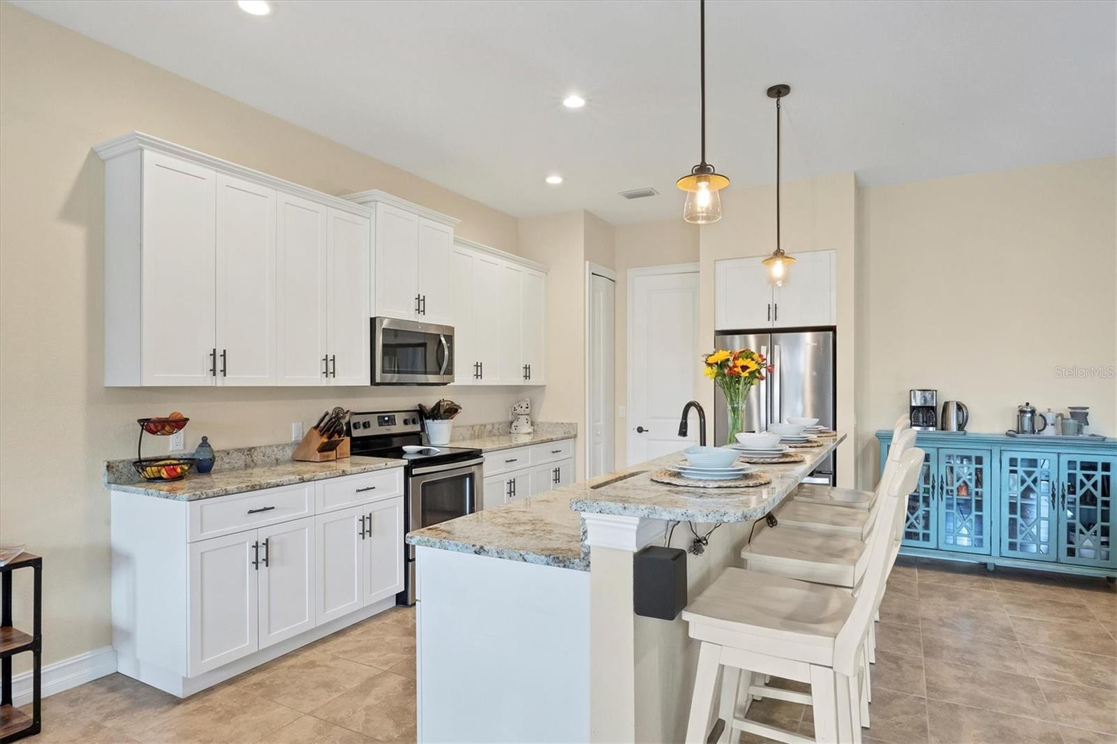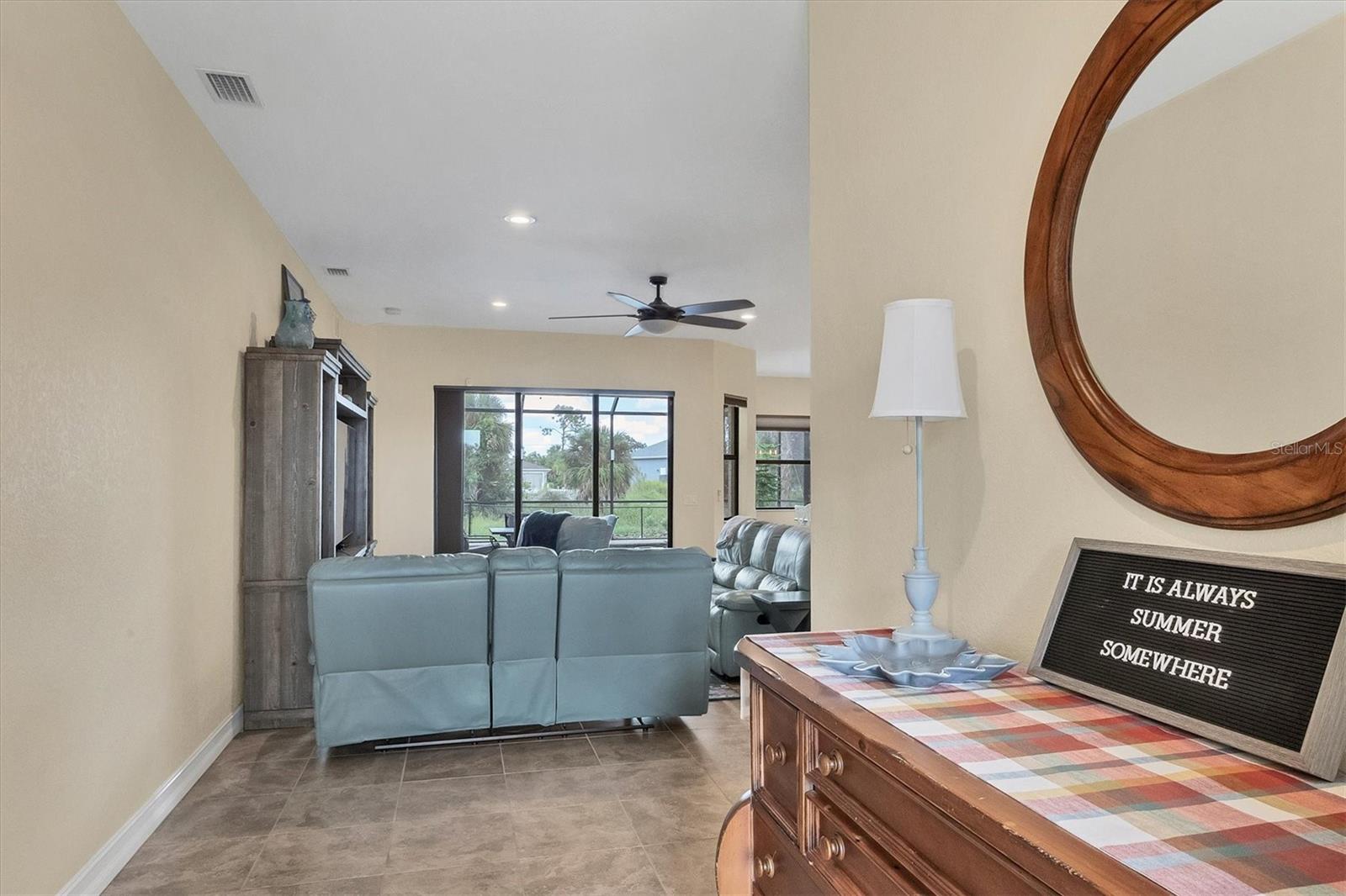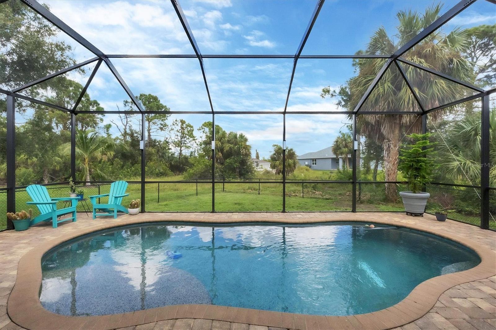 The quintessential Florida home for buyers searching for a cozy winter escape or a lovely year-round residence is found within the walls of this charming home, nestled on a quiet cul-de-sac in the heart of the highly desired community of Rotonda Lakes. Rich with desirable upgrades, the finishes will please even the most discriminating homeowner. Upon entry, guests will appreciate a soothing neutral color palette accentuated by soaring 10' ceilings and 8' interior doors, resulting in a light, airy, and welcoming ambiance. Ceramic tile runs throughout the home to create comfortable transitions from room to room. The resident chef will surely appreciate the well-appointed kitchen with 48" cabinetry, tastefully coordinated granite countertops, a large prep island, stainless steel appliances, and a custom-designed pantry closet to accommodate your storage needs efficiently. An adjacent dining room was designed to make even a weeknight meal feel special, with sliders opening to the lanai and its tranquil and fenced backyard. A flex room/media room/den is found behind elegant double doors, making working from home or binge-watching the latest series a pleasure. The kitchen flows effortlessly into the great room, where triple sliders open to the cozy lanai, gracefully integrating the indoor/outdoor living areas, with plenty of room to arrange furniture in conversation-friendly configurations to encourage guests to slow down, relax, play board games, or savor a 5:00 cheeseboard. Here, a heated pool surrounded by an attractive paver patio awaits. Mood-setting LED lighting has been incorporated into the pool cage structure to enhance the setting further. Just beyond is a fenced backyard--an ideal place for your furry friends, and a zoned irrigation system nourishes the yard. Relaxation is encouraged in the primary suite. Spacious volume ceilings and a large walk-in closet with custom-designed storage solutions highlight this room. At the same time, its ensuite bath exudes a spa-like ambiance, dual sinks, and a generous walk-in shower with an attractive tile surround. Two additional bedrooms will comfortably accommodate guests, and they share a bath outfitted with a tub/shower combination accentuated with a ceramic tile surround. Rotonda Lakes is a quiet, friendly community within a short drive to the pristine Gulf beaches of Boca Grande and Englewood. There are world-class fishing and boating opportunities, various delectable dining establishments, vibrant farmer's markets, and eclectic shopping venues nearby. Golf enthusiasts will appreciate the easy access to five championship courses in nearby Rotonda West. If this sounds intriguing, call today to schedule a private showing and prepare to be captivated by this picturesque community where every day feels like a vacation!