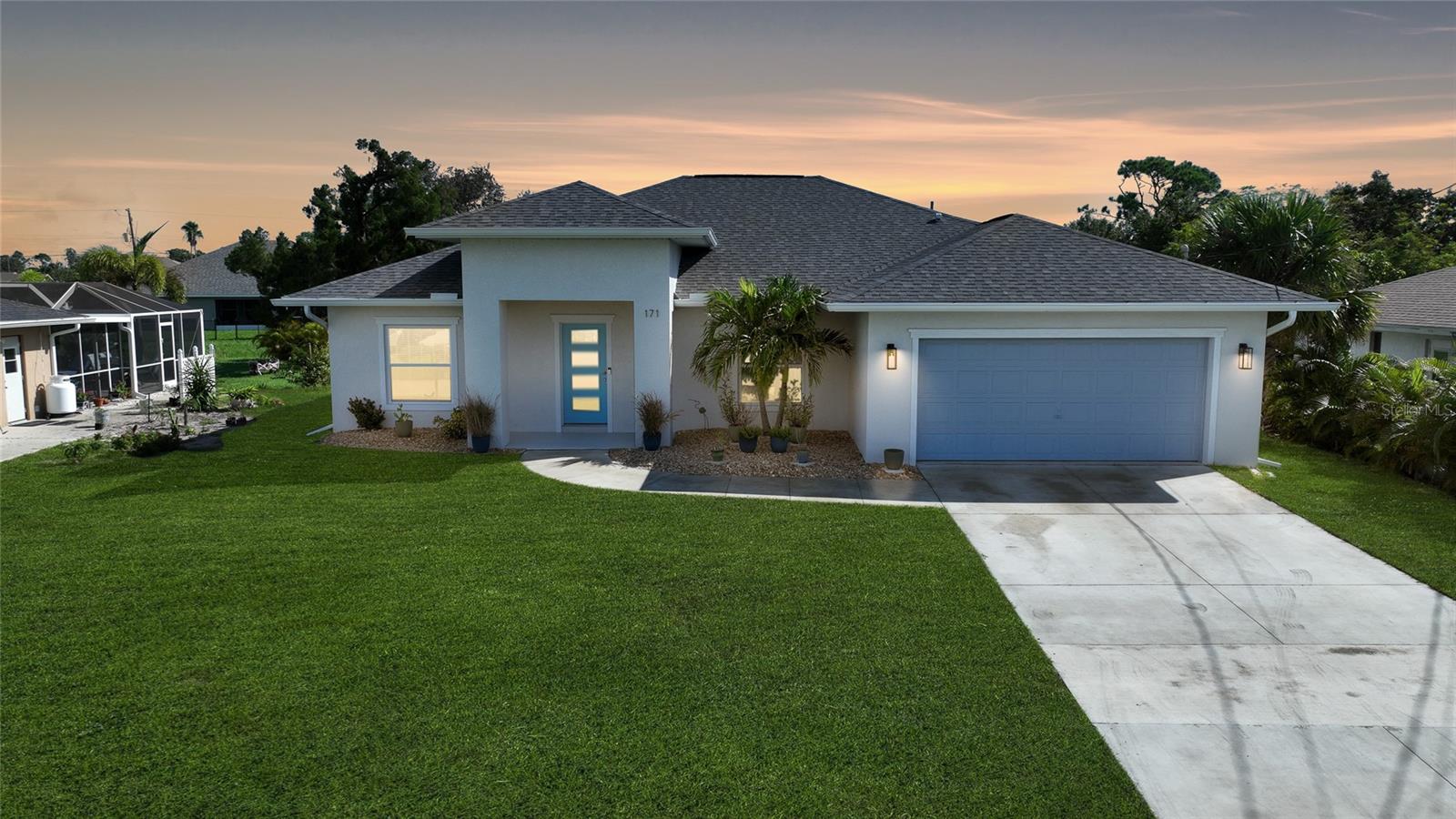 Price Improvement!!! Newer construction built in 2021 MODERN DESIGN 3 BED, 2 BATH, 2 CAR GARAGE home in Rotonda West now available! This ONE OWNER CUSTOM residence features a SPLIT BEDROOM and OPEN CONCEPT layout will exceed your expectations! <br> <br> Key features include a CONTEMPORARY IMPACT FRONT DOOR with 4 paned windows that will capture your attention from the start! IMPACT WINDOWS and SLIDERS, gorgeous trim, crown molding and baseboards, recessed lighting, updated fixtures, a serene neutral COASTAL palette and beautiful deep wood tinted luxury vinyl flooring throughout the main living spaces in addition to state of the art pendant lighting and modernized light fixtures throughout! Window treatments included (wood blinds and fabric sun slider shades)! <br> <br> The GREAT ROOM boasts VAULTED ceilings creating space and comfort for your entertaining needs in addition to a NEWER STYLISH FAN! The Kitchen is every chef's dream with an OVERSIZED QUARTZ ISLAND (9.4 ft) that can seat up to 6 with an abundance of modern cabinetry, tons of counter space, tasteful subway backsplash, tall pantry closet, cabinet lighting and stainless steel appliances. Adjacent is a breakfast bar/dining area that leads to the FULLY COVERED and screened-in back patio that spans from end to end of the home! And there is plenty of room for a pool in the back yard! <br> <br> The primary bedroom retreat is spacious with a trey ceiling, sliders to the lanai and a HUGE WALK IN CLOSET!!! The en-suite bathroom features dual sinks, private water closet, and an oversized walk in tiled shower with a new glass panel. The other two bedrooms are spacious as well featuring ceiling fans, stylish doors and built-in closets. <br> <br> Located in the remarkable area of Rotonda West, this property is surrounded by 5 golf courses offering a total of 99 holes. Additionally there are walking and biking trails, a stunning 165 acre park, serene lakes, lush landscaping, and a new community center. Our PRISTINE GULF BEACHES including Englewood and Boca Grande are just a short drive away. If you enjoy the outdoors there are ample opportunities for fishing, boating and water sports. Historic downtown Punta Gorda or Dearborn Street in Englewood are both worth a visit for their charming shops, eateries and Farmer's Market's. Close proximity to local and regional airports.