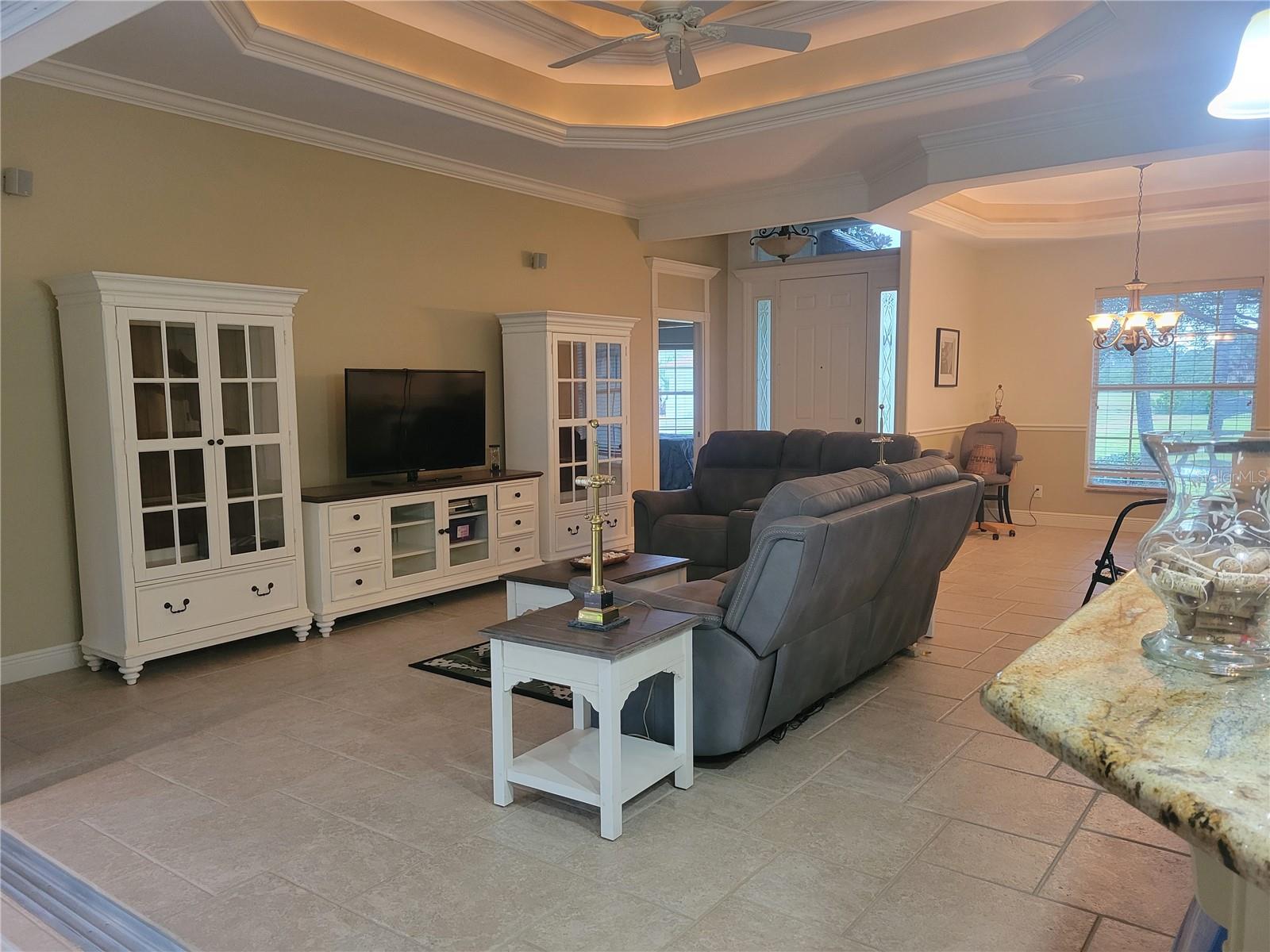 Fully Furnished Quiet Location in Rotonda West built by Luxury Home Builder Ferro Construction in 2004. NO STORM or HURRICANE DAMAGE...house is built 'tight'. Stunning Tray and Coffered Ceilings, Crown Molding, Tiled Floors, and Granite Countertops. Large Master Bedroom/Bath/Walk-in/thru closet. 2nd and 3rd bedrooms are ample size with a shared hall bath in a split layout from Master. Generous Living Room area with like new reclining sofas/chairs. Screened Lanai to enjoy al fresco dining against a wooded back lot. Owner/Seller offers remaining Grande Aire Maintenance Plan + one additional year. Rotonda West offers endless walking/biking trails & paths, a Community Center with various activities throughout the year, community RV/Boat/Trailer parking by permit, and 5 public golf courses. Convenient to shopping, dining, world renowned beaches, boating, and fishing. Property is scheduled for Exterior Power Wash.