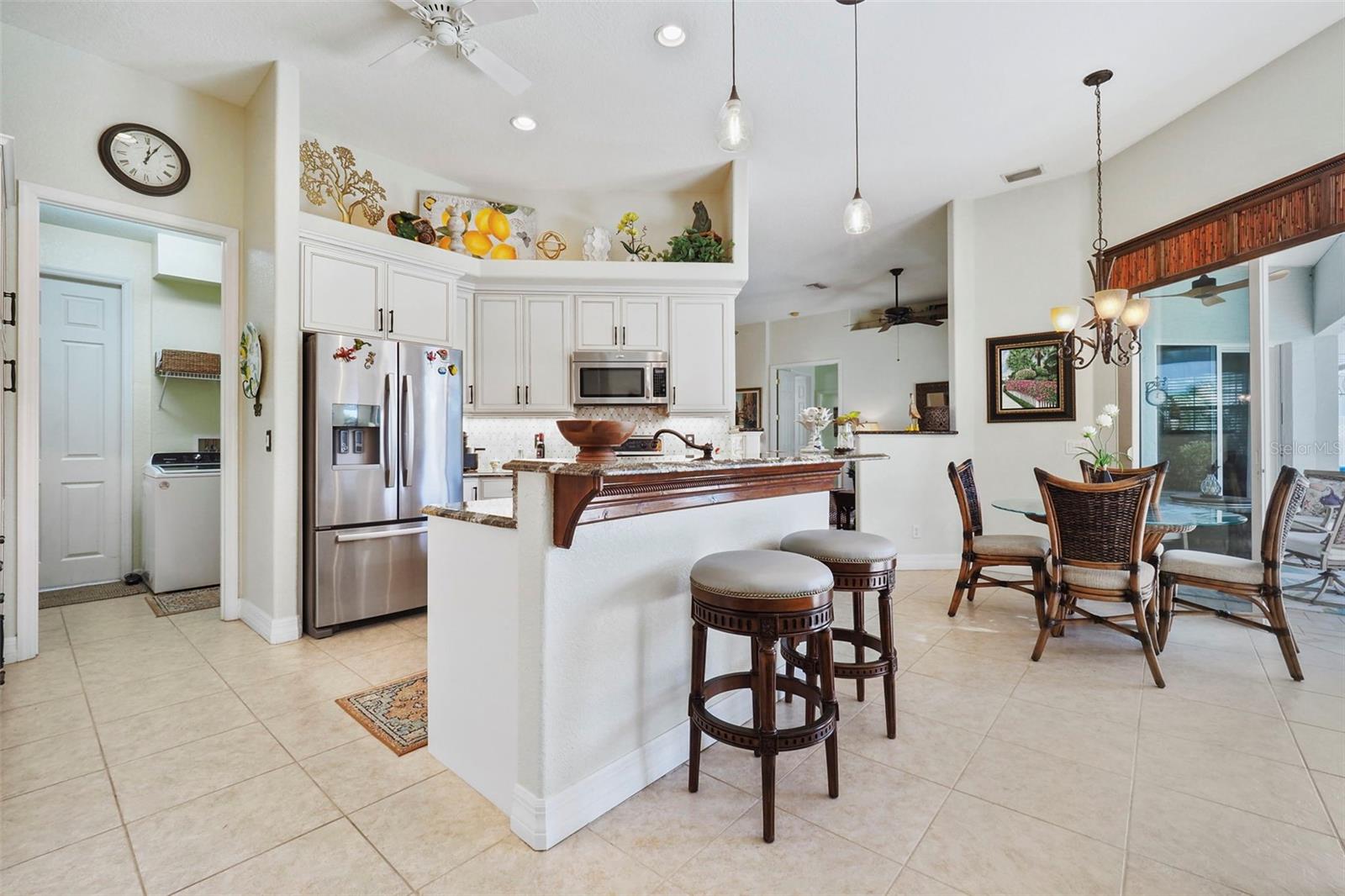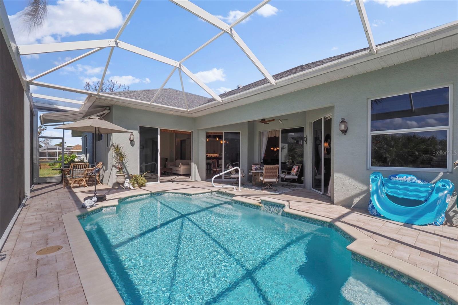 MOTIVATED SELLER! Welcome to Rotonda West, a community comprising 5 golf courses nestled in the Cape Haze peninsula. This picturesque location is where you find 265 White Marsh Lane, a unique find in a quiet neighborhood. Step into this meticulously renovated home where elegance meets comfort. As you enter, you'll immediately feel enveloped in a sense of privacy and be enticed by the open floor plan featuring a spacious living room, family room & dining area allowing for easy entertainment of family & friends. Abundant natural light filtering into the space through multiple sliding doors meshes the indoor & outdoor environments creating a smooth transition to the pool area. High ceilings and numerous sliding glass doors bathe the space in natural light, forging a warm & inviting atmosphere. The heart of the home, the chef's kitchen boasts modern appliances, solid maple cabinets including a matching large pantry, complemented by a stylish tiled backsplash and a cozy breakfast bar adorned with pendant lighting. The integrated nook with built-in bench seating provides a comfortable area for conversation while having a dinner for two or enjoying a light snack. The two spare bedrooms are ample sized offering guests their private retreat. The inviting entry to the owners' suite, framed by charming French doors, leads to a spacious area featuring tray ceiling, sliders and walk-in closet equipped with a custom closet system. The ensuite bath is a serene retreat, showcasing a double bowl vanity, a soaking tub, bench seating and a lavish glass enclosed walk-in tiled shower which becomes a sophisticated steam shower with the push of a button. Set your temperature at your comfort level and create mood music and/or lighting to enable you to relax and enjoy your private oasis. The interior laundry room features newer appliances, granite counters, solid wood cabinets, tile backsplash and wine refrigerator. The lanai/pool area is accessed via sliders from the rear of the home and provides an opportunity for you to enjoy your favorite beverage while listening to the sounds of nature or float in your private heated pool, all encompassed within the confines of the panoramic screen and backyard which is the epitome of privacy within the impeccably maintained landscape presenting an unparalleled level of sophistication. The garage, with its sleek epoxy floor, offers ample space for vehicles and a dedicated work area, perfect for DIY enthusiasts. This home is a harmonious blend of privacy and tranquility located in a wonderful community where you can enjoy golf courses, parks, tennis, walking along the 8 mile Pioneer Trail, & more. Shopping, dining, air travel, medical facilities, recreational opportunities, & pristine beaches along southwest Florida’s coastline are easily accessed. This home offers the ultimate in privacy & tranquility, allowing you to enjoy the Florida lifestyle that you deserve. The sellers invested appx. $138,000.00 for updating their property including adding polyurea to garage floor, new roof, new Rheem water heater, remodeling in owners' and guest baths, whole house exterior paint, kitchen remodel (cabinets repainted,new backsplash,hardware and soft close hinges), pool resurfaced,added new tile,pavers and panoramic screen enclosure), house interior painted, landscaping (redo flowwer beds w/weed mat, new ornamental rocks & plants), sun setter awning, expanded lanai deck. Why wait for a new build when this gem is move-in ready!