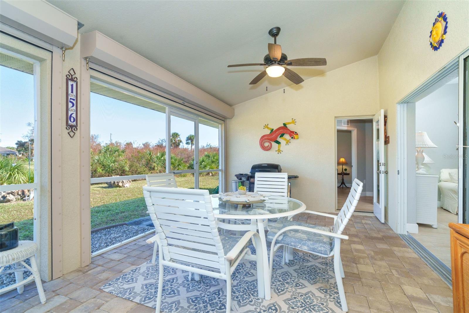 PRICE IMPROVED GREATER THAN $10,000! Nestled in the desirable community of ROTONDA LAKES, is this METICULOUSLY MAINTAINED, ONE OWNER, CANAL FRONT, gem of a home, BUILT IN 2018, that offers everything you could want and more! Boasting NO STORM DAMAGE OR FLOODING HISTORY, this home features IMPACT-RESISTANT WINDOWS, A NEWER ROOF for peace of mind, IRRIGATION SYSTEM, and is LOCATED IN AN X FLOOD ZONE! Step inside this 3 BEDROOM, 2 BATH HOME, WHICH INCLUDES A DEN/OFFICE (tucked behind 2 French doors) to find beautiful PORCELAIN TILE FLOORING THROUGHOUT. The SPACIOUS KITCHEN is a chef’s delight, boasting GRANITE COUNTERTOPS, BACKSPLASH, STAINLESS STEEL APPLIANCES, SOFT-CLOSE CABINETS WITH UNDER-LIGHTING, BREAKFAST BAR, RECESSED LIGHTING, PLANT SHELVES, and CLOSET PANTRY. The open floor plan allows for easy entertaining of family and friends in the SPACIOUS GREAT ROOM AND SEPARATE DINING ROOM/EATING AREA, each with a TRES CEILING. The great room has sliders that lead to the PRIVATE SCREENED LANAI for ease of entertainment. For added comfort, ELECTRIC STORM SHUTTERS SECURE THE LANAI, which is complete with BRICK PAVER FLOORING, COMFORTABLE LANAI FURNITURE, OF WHICH MOST IS INCLUDED IN THE SALE, AND A VIEW OF THE PRIVATE YARD. The EXPANSIVE MASTER BEDROOM also has SLIDERS TO THE LANAI, TRES CEILING, TILT WINDOWS FOR EASY CLEANING, AND A WALK-IN CLOSET. The ENSUITE MASTER BATHROOM is complete with SEPARATE WATER CLOSET, DUAL SINK GRANITE COUNTERTOP VANITY, AND STYLISH PORCELAIN TILED WALK-IN SHOWER WITH RAIN SHOWERHEAD. GUEST BEDROOMS ENJOY THEIR OWN PRIVATE ACCESS TO THE LANAI, enhancing privacy and convenience, as well as a GUEST BATH WITH GRANITE COUNTERTOP, TUB AND SHOWER. The INTERIOR LAUNDRY ROOM includes storage and shelving for easy organization. UPGRADES INCLUDE LANDSCAPE CURBING, SCREENED FRONT ENTRY, WINDOW TINTING ON 3 FRONT WINDOWS, AND NEW A/C IN 2024! Seller has prepaid for pest inspection service for 1 yr. until 3/2026! Perfectly located, this home offers access to 5 PUBLIC ROTONDA GOLF COURSES, the best of world-class fishing, as well as the Atlanta Braves Spring Training stadium and Charlotte Sports Park, which is home of the Tampa Bay Rays Spring Training, nearby. Every comfort and convenience has been thought of in this MOVE-IN READY HOME that offers coastal living with ease. PRIDE OF OWNERSHIP IS EVIDENT IN THIS BEAUTIFUL HOME. Located in a DEED RESTRICTED COMMUNITY WITH A LOW HOA, this home combines comfort, style, and convenience. Schedule your showing today and make this treasure of a house your next "HOME SWEET HOME"!