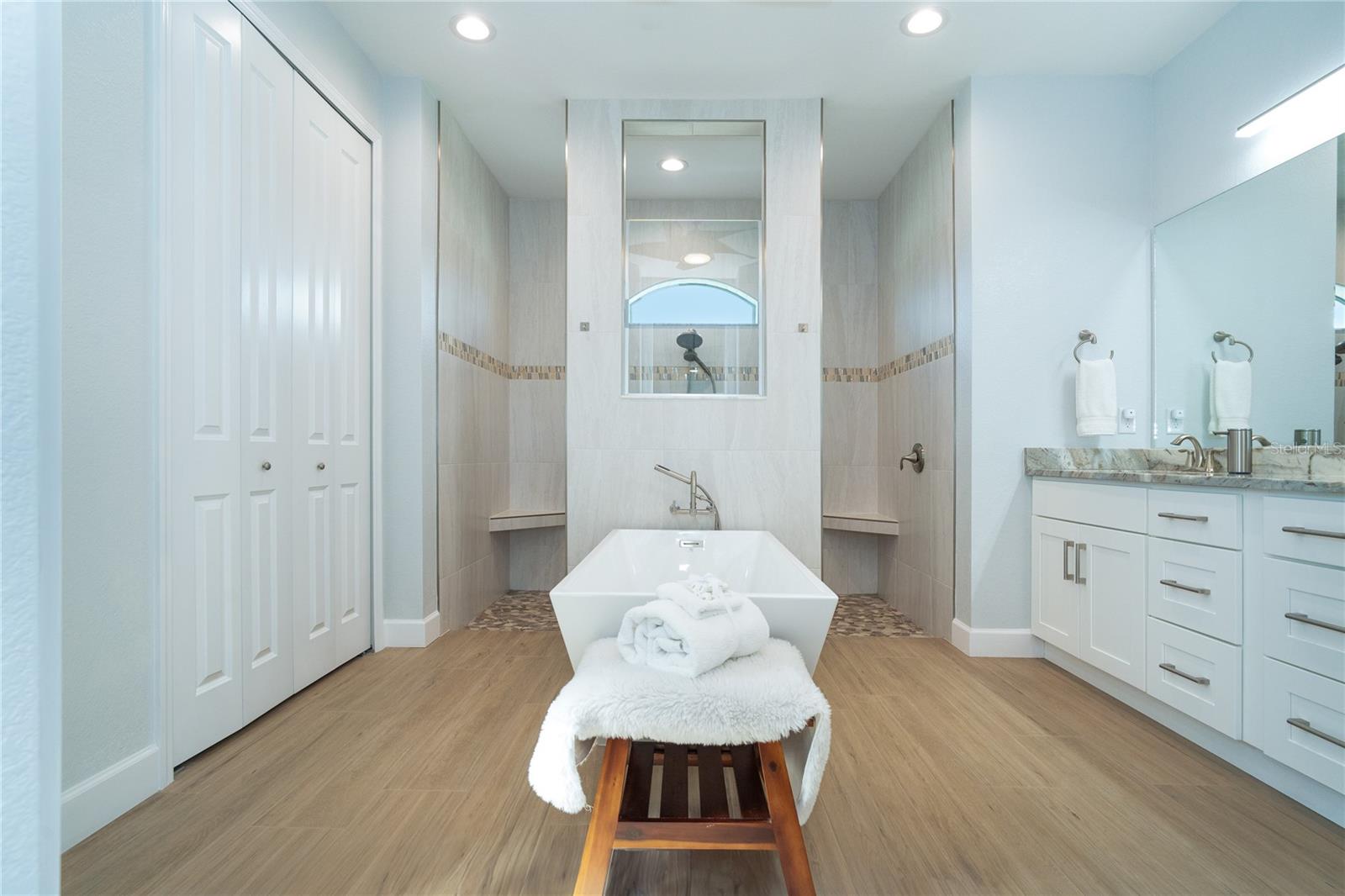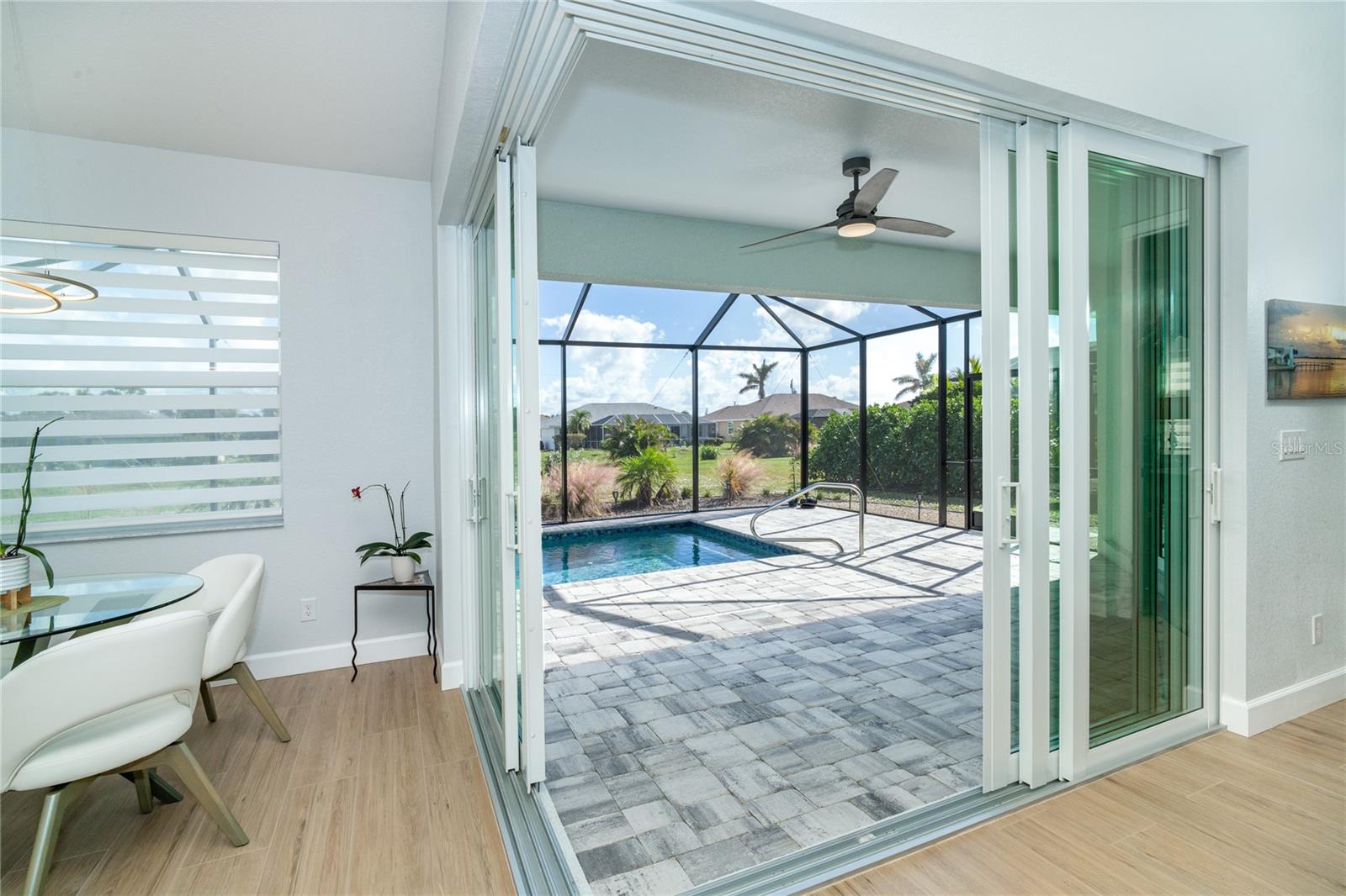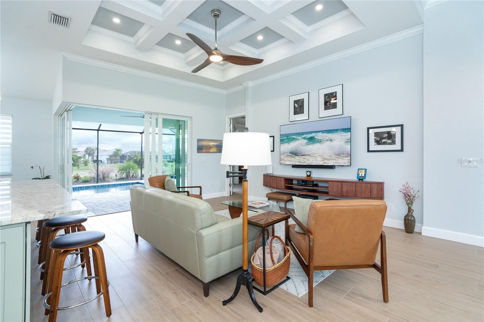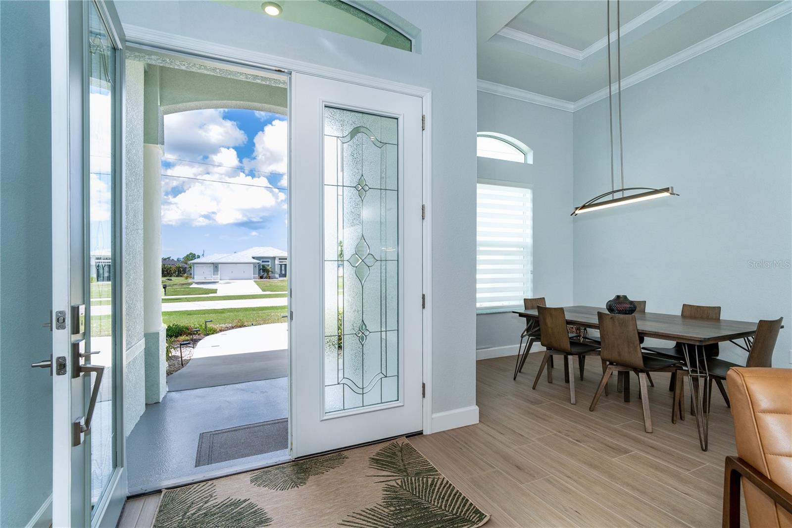 BETTER THAN NEW! Why wait to build when you can move right into this stunning, 2-year-old custom-built contemporary pool home in the highly sought-after golfing community of Rotonda West on prestigious Rotonda Blvd North? This home, located on an oversized 80’ x 200’ (.37 acre) homesite in the preferred X flood zone, boasts a thoughtfully designed open-concept floor plan with multiple builder and owner upgrades throughout. From the moment you step through the barrier-free glass double doorway into the soaring vestibule, you’ll be captivated by the bright and open split floor plan, which separates the primary suite from bedrooms 2 and 3, ensuring privacy on opposite sides of the main living area. The home’s contemporary design features elegant details like soaring ceilings with double crown molding, custom high-efficiency lighting and fans, a coffered ceiling with extra lighting, 8’ doors, pocket doors, 90-degree sliders, 5 ¼” base trim, and sleek wood plank porcelain tile flooring throughout. The chef’s kitchen is equipped with high-end G.E. Profile stainless steel appliances, self-closing cabinetry with in-cabinet Shelf Genie slide-out shelves, and a spacious island (50” D x 9’9.5” L) with seating and storage on both sides. Beautiful level 3 Quartzite countertops and a custom tile backsplash elevate the space, making it a true culinary haven. The primary suite bathroom offers a luxurious experience with an oversized “car wash” shower featuring matching benches, porcelain tile, decorative tile accents, and a sealed stone floor, as well as a separate soaking tub. Double-pane insulated impact glass windows and doors provide effortless hurricane protection throughout. Additional highlights include a spacious 3-car garage with custom epoxy and Polyaspartic floor coating, a new roof (installed Feb 2023) with an upgraded water-resistant barrier, and a beautifully designed custom pool. The 11’x25’ heated saltwater pool includes durable Pebble tec coating, decorative and reflective tile, an arched waterfall, a 1.8 variable speed pump, and a large 18’x37’ pool cage with adjoining paver patio and walkway. Outdoor features such as the Custom Curbing, stonework, custom landscaping, and lighting further enhance the property’s curb appeal. Pride of ownership is evident in every corner of this home. Schedule your private showing today and experience the charm and quality of this exceptional property!