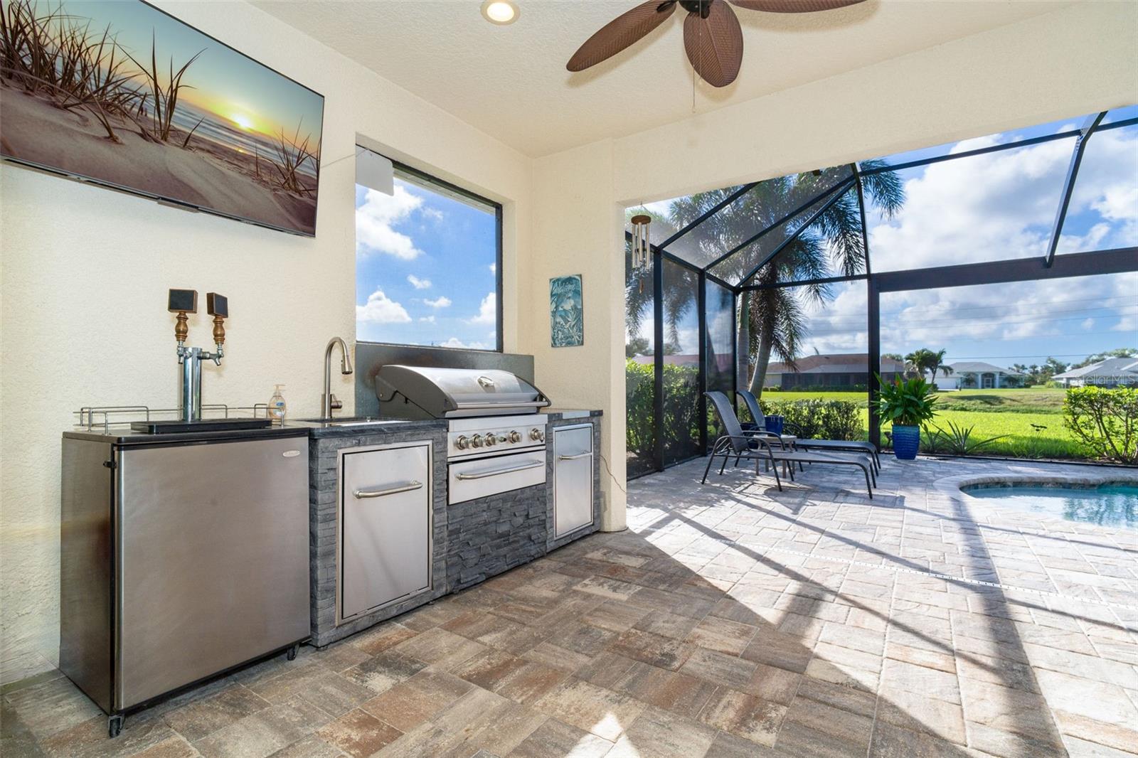 With all the homes for sale, this stands out as a RARE FIND. A stunning home that overlooks a beautiful canal in Rotonda West. A special treat is an in ground propane tank which is very economical. As well, a six-burner gas stove, a gas heated saltwater pool and more. Each bedroom has its own en-suite bath, and the 3rd bath opens to the pool/lanai. The oversized lanai comes complete with an outdoor kitchen AND a keg-o-rator to keep your drinks cold and on tap. Extra square footage was given to the primary bedroom and walk-in closet. So many extras were added, including bumping out the garage, providing extra room to fit trucks and longer vehicles (or toys)! This is a MUST SEE property and not to be missed. And, it is not in a FLOOD zone! This luxury home is located just minutes from beautiful beaches at Boca Grande, and Manasota Key, as well as 5 golf courses close by. All furniture is also negotiable. Schedule your preview now!!