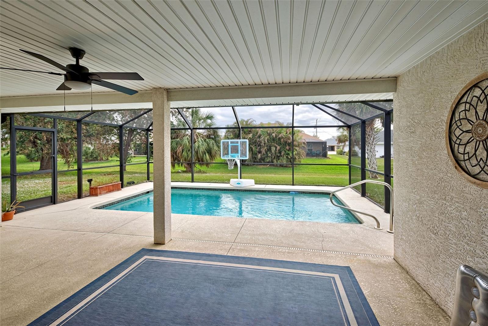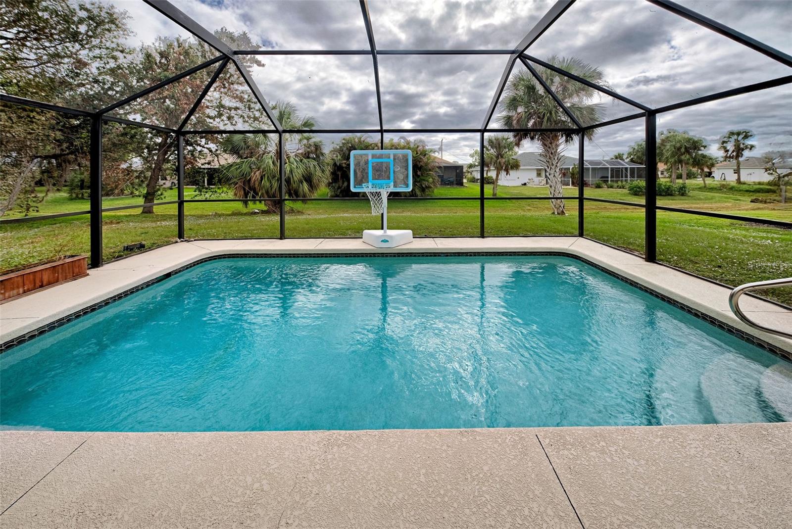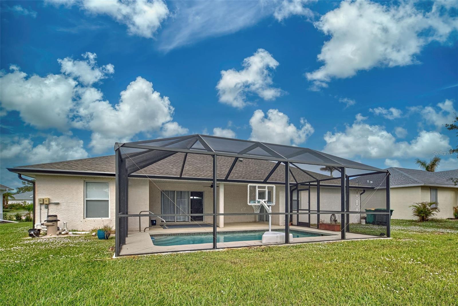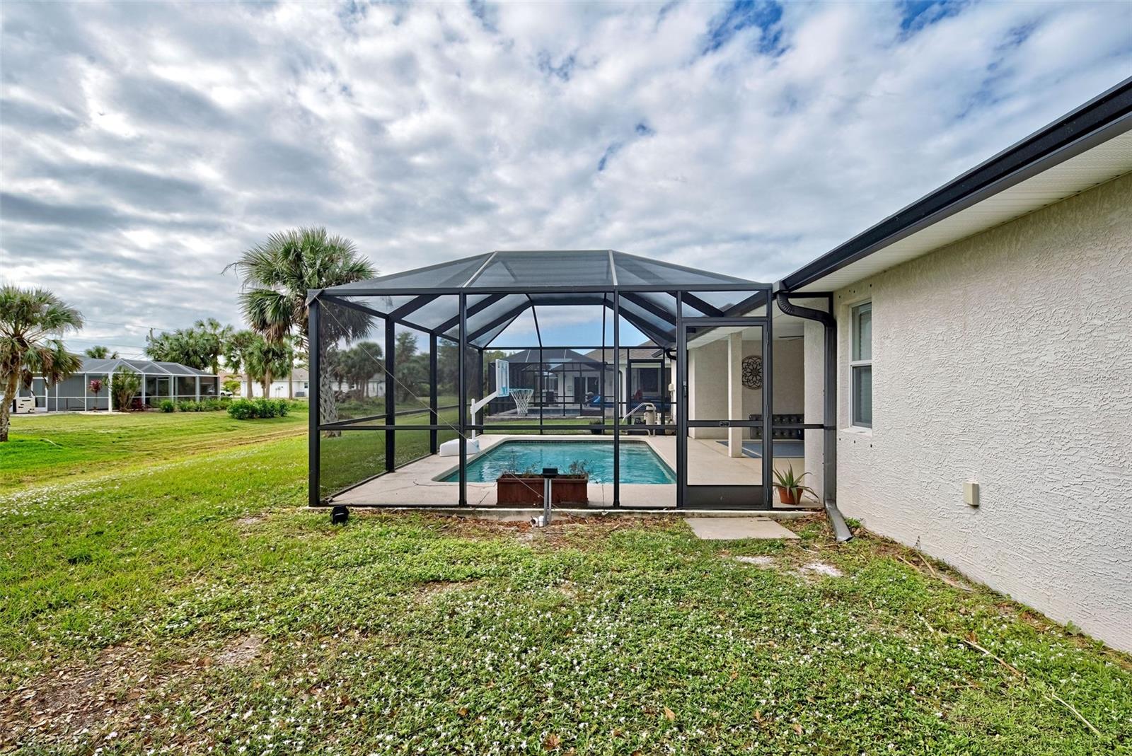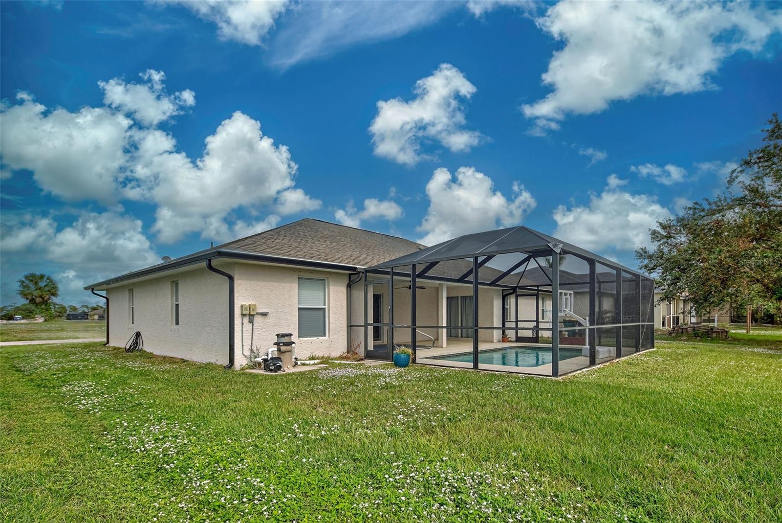 Discover your slice of paradise in the sought-after golf community of Rotonda West! This 2017-built, 3-bedroom, 2-bathroom, 2-car garage home offers a blend of modern elegance and practical comfort, making it the perfect place to call home. As you approach, you’ll be greeted by pristine curb appeal and a NEW ROOF installed in 2023, offering peace of mind and a sleek exterior. Step inside to find a bright and open living space with tile flooring throughout, vaulted ceilings, and recessed lighting, creating a welcoming and contemporary vibe. The thoughtfully designed kitchen is a chef’s dream, featuring stainless-steel appliances, gleaming granite countertops, a breakfast bar for casual dining, and a spacious pantry for extra storage. Hosting friends and family is a breeze with the open floor plan that seamlessly connects the kitchen, dining, and living areas. Retreat to the luxurious master suite, where you’ll find a walk-in closet and an en suite bathroom boasting a double vanity and an elegant, fully tiled walk-in shower. The split floor plan ensures privacy for the two additional bedrooms, which share a stylish guest bathroom with a tub/shower combination. Outside, your screened lanai invites you to relax and embrace the Florida lifestyle. Imagine sipping your morning coffee or unwinding in the evenings overlooking your private pool and lush surroundings—your own serene sanctuary. Living in Rotonda West means access to an array of amenities, from world-class golfing to boating, fishing, tennis, and scenic walking trails. The community also offers a variety of social clubs and events, all with low HOA fees and a friendly, deed-restricted atmosphere. Beyond your doorstep, you’ll enjoy close proximity to shopping, schools, parks, and dining options ranging from casual eateries to fine dining. And don’t forget—you’re just a short drive from Florida’s award-winning beaches, where you can soak up the sun and the beauty of the Gulf Coast. This home offers everything you need for comfortable, elegant living in a vibrant community. Schedule your showing today and make your dream of living in Rotonda West a reality!