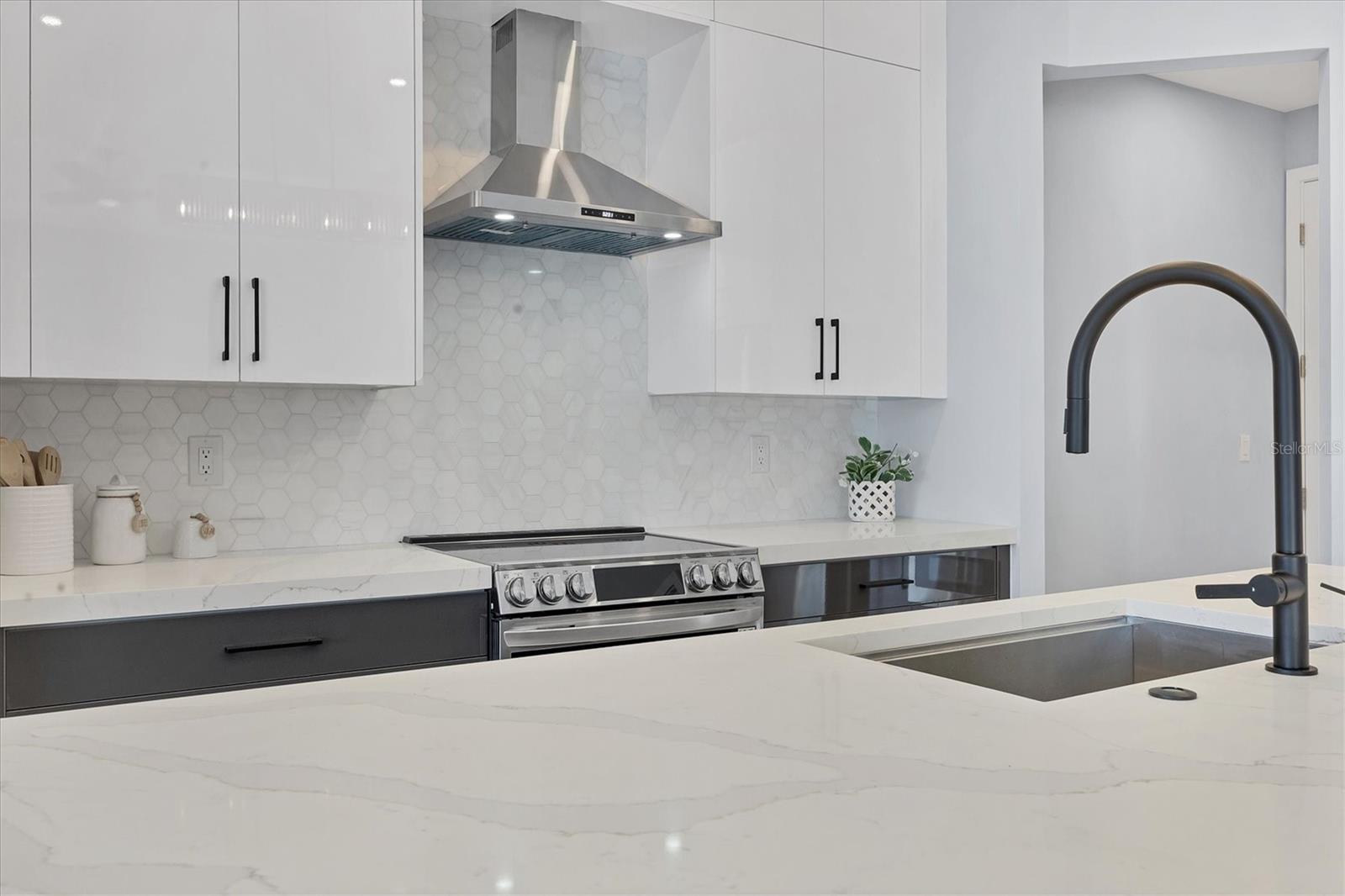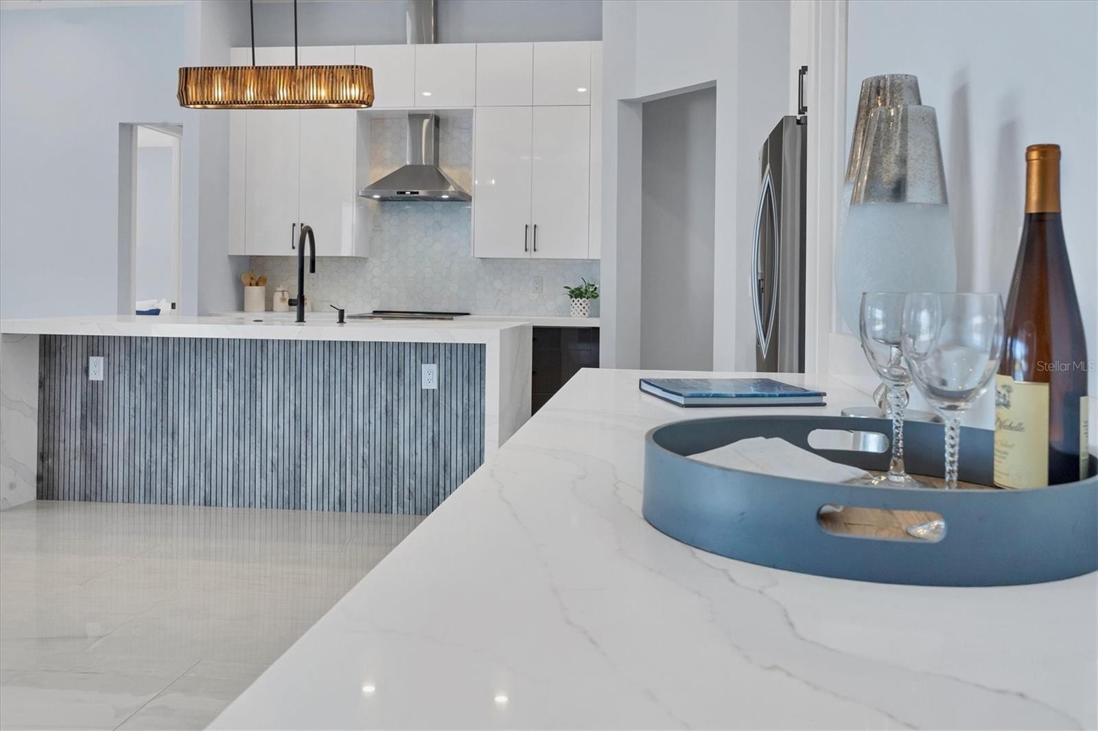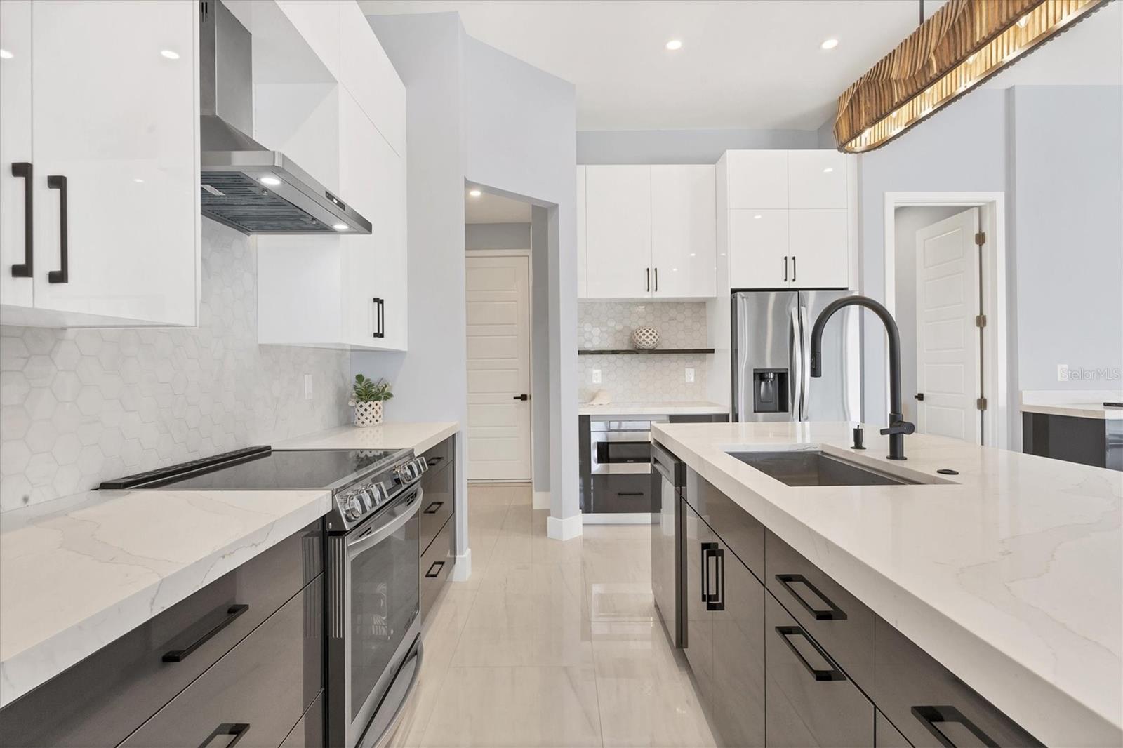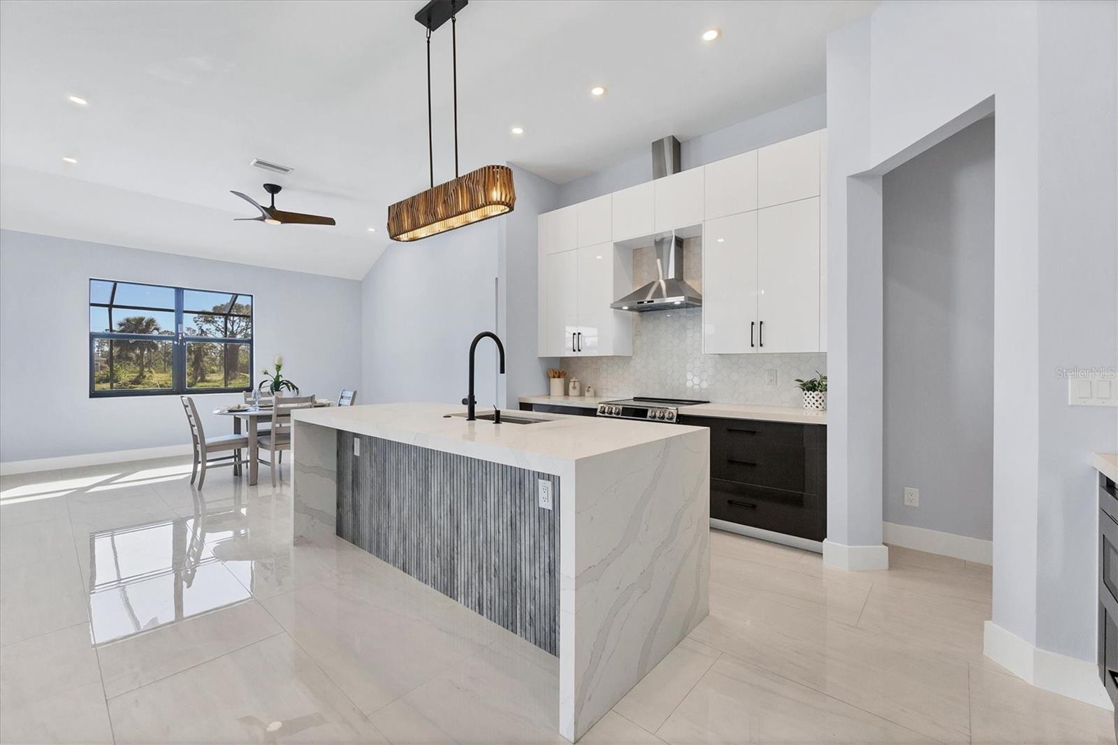 Brand-New Waterfront Home in Rotonda West! Completed in November 2024, this stunning 4 bedroom, 4 bath, 3 car garage, pool home with extraordinary upgrades is ready to welcome you! Imported Turkish pavers on the driveway and lanai add a touch of luxury, while the tile roof enhances the home's modern, elegant exterior. Inside, gleaming porcelain tile flows throughout, beautifully complemented by designer light fixtures, stylish ceiling fans, a coffered ceiling, and striking focal walls. The quadruple set of sliding glass doors frame an unforgettable view of the pool and serene waterway beyond. The European-style two-tone soft close cabinetry, paired with waterfall Quartz countertops, is complemented by a spacious island with a breakfast bar, making it ideal for entertaining. The adjoining dining area offers stunning views of the canal and pool. Step into the primary bedroom suite, where you'll find tray ceilings, sliding glass doors, and dual walk-in closets. The ensuite primary bath retreat is a luxurious haven, featuring separate dual vessel sink vanities, quartz countertops, backlit mirrors, a floor-to-ceiling porcelain tile-surrounded soaking tub, and a frameless glass walk-in shower - truly a magnificent space to unwind at the end of the day. The three additional guest bedrooms and two bathrooms all have the same consistent frameless glass walk-in showers, single vessel sinks set upon quartz countertops, and ultra sleek frameless lighted bathroom mirrors. For added convenience, there is also a full pool bath with a shower on the lanai. The outdoor living space is highlighted by a dark plank ceiling with ceiling fans, and a caged pool with a spacious sundeck, where the soothing sounds of the water create the perfect atmosphere for lounging and floating your cares away. Additional upgrades include impact windows, epoxy coated garage floors, and irrigation system. Located in the deed restricted community of Rotonda West, located on Florida’s southwest coast, is a charming, established community ideal for outdoor recreation. With 26 miles of canals, ponds, and lakes, as well as a quick drive to sandy beaches, boating in Lemon Bay and Boca Grande, and some of the world’s best fishing in the Gulf of Mexico. This area offers a perfect blend of peaceful living and an active outdoor lifestyle. Contact us today to schedule your private showing.