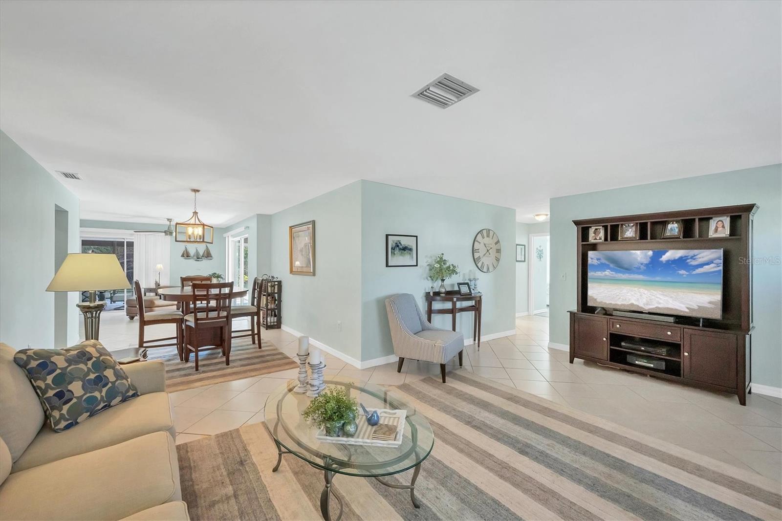 Nestled at the end of a quiet, friendly cul-de-sac, and adjacent to the driving range of the Hills Golf Course, this beautifully appointed home offers both comfort and convenience. Just around the corner to The Hills Restaurant, Golf Course, and the Rotonda West Marina, this property is perfect for those who enjoy an active lifestyle. Tastefully decorated, the layout flows seamlessly from the inviting living room with bay window, then onto the dining area and the updated granite kitchen. Gather in the spacious family room complete with extra-wide sliding glass doors that open fully to a generous, privately set lanai & saltwater pool, ideal for entertaining or simply relaxing in peace. A new pool cage is coming soon! The main living areas feature tile flooring, while the three bedrooms offer warm laminate flooring. The primary bedroom offers ensuite bath with shower. The bright & cheerful guest bedroom features sliders that open to the pool and a distant view of the golf range. The hall bath with shower, also opens to pool area. Laundry and garage complete this stunning home. Recent updates include a new roof, pool cage, (coming soon), hot water heater, garage & front doors, pool pump, pool filter & pool heater. Pool to be resurfaced. Located in the sought-after Rotonda West golf community, this home benefits from a low HOA fee of just $195 per year and is conveniently located just a 15-minute drive to Gulf beaches. Enjoy endless outdoor activities including golfing, fishing, swimming, biking, hiking and pickleball. The Rotonda West Women’s Club is a great way to meet new friends and engage in community activities. A variety of nearby restaurants offer nightly entertainment, making dining out an enjoyable experience. Move right into this lovingly cared for home offering the perfect blend of peaceful living with easy access to recreation and entertainment. Don't miss the opportunity to make it yours!