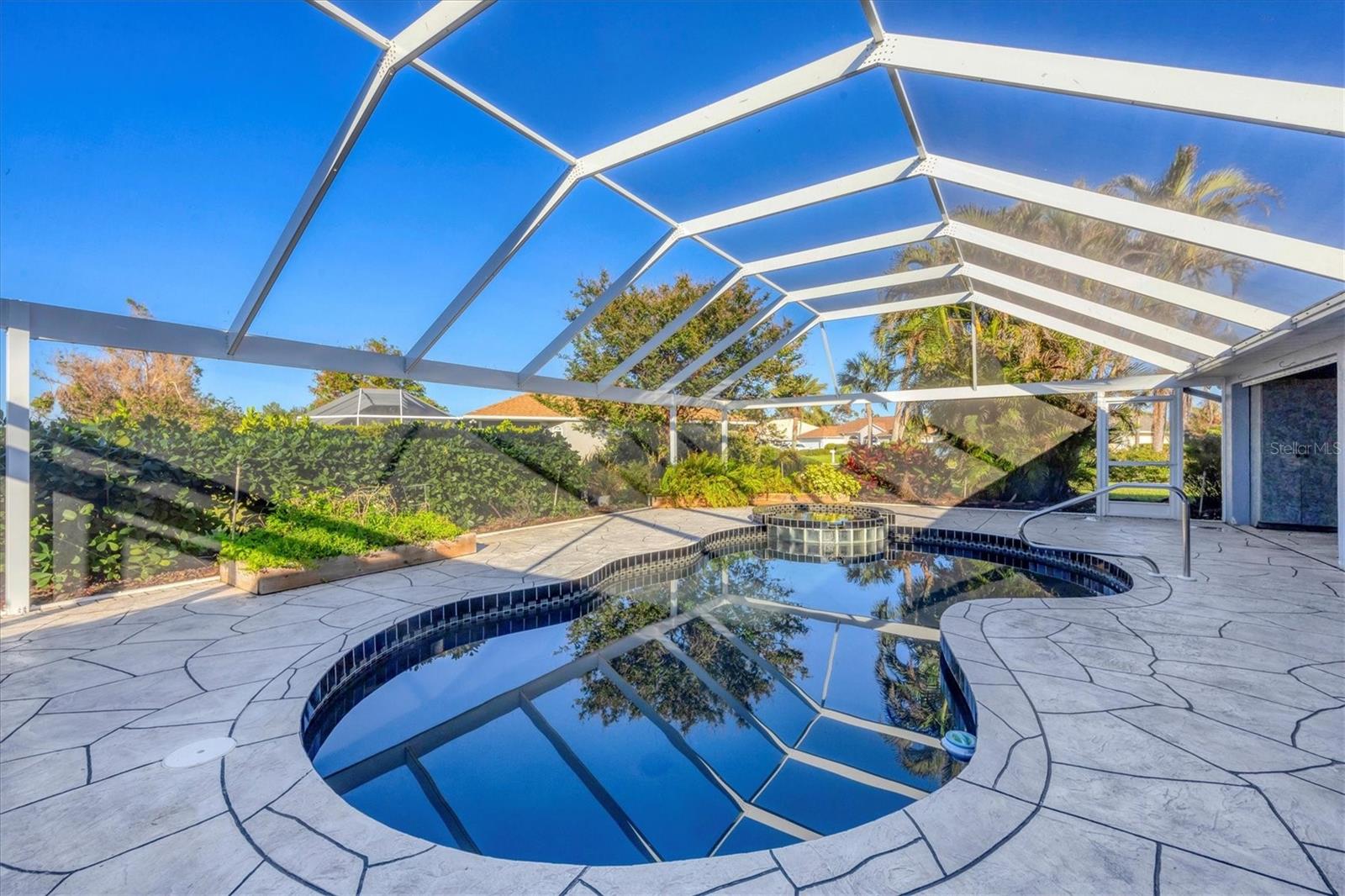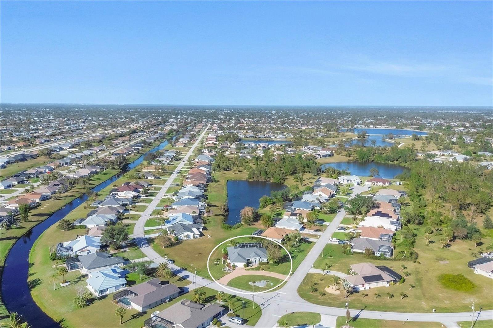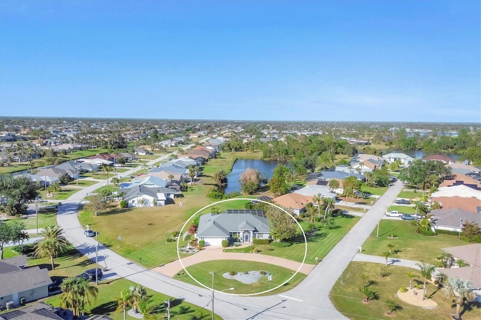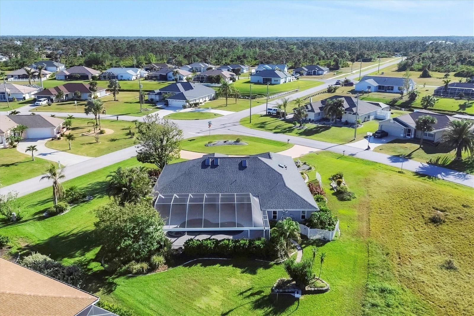 Spacious Living with Circular Driveway on Oversized Corner Lot in Rotonda West – This Three Bedroom, Two and a Half Bath Home is a Must-See! This home offers peace of mind with its location in the X flood zone, a 2023 roof, 9 impact windows, hurricane shutters for all remaining openings, and impact-resistant skylights for added storm protection. The screened entryway and double doors with decorative leaded glass welcome you into a stunning open space featuring triple pocketing sliders, vaulted ceilings, an abundance of natural light, upgraded light fixtures, and gleaming floors that flow throughout. Step into the spacious kitchen, a chef's delight with ample granite countertop space, rich wood cabinets, a tray ceiling with a skylight, and double sliding glass doors that open to the pool area, perfect for both indoor and outdoor entertaining. The primary ensuite offers private outdoor access through sliding glass doors, a tray ceiling, and a spacious walk-in closet with custom organizers. The primary bathroom serves as a serene retreat, featuring a jetted tub, a separate step-in shower, and an expansive dual-sink vanity with a makeup area. One guest bedroom features a walk-in closet and sliding glass doors leading to the pool, while the other includes a cedar reach-in closet. Both guest rooms share a convenient bathroom, and an additional half bath ensures everyone has their own space to prepare for the day. The air conditioned garage features tiled floors, tons of built-in cabinets, and a cleverly designed false wall concealing the garage door, creating a seamless extension of the home while providing abundant storage and parking space. The spacious lanai and recently updated caged pool area with panoramic screening offer everything needed to live the Florida lifestyle, featuring a spa, a wet bar with a sink and cabinets, and lush mature landscaping for added privacy. Located on Florida’s beautiful southwest coast, the deed-restricted Rotonda West community offers the perfect balance of peaceful living and an active outdoor lifestyle. With 26 miles of tranquil canals, ponds, and lakes, this charming neighborhood is just a short drive from pristine beaches, boating in Lemon Bay and Boca Grande, shopping, local dining, major league baseball facilities, and some of the world’s best fishing in the Gulf of Mexico. Whether you’re seeking relaxation or adventure, this area has it all. Contact us today to schedule your private showing!