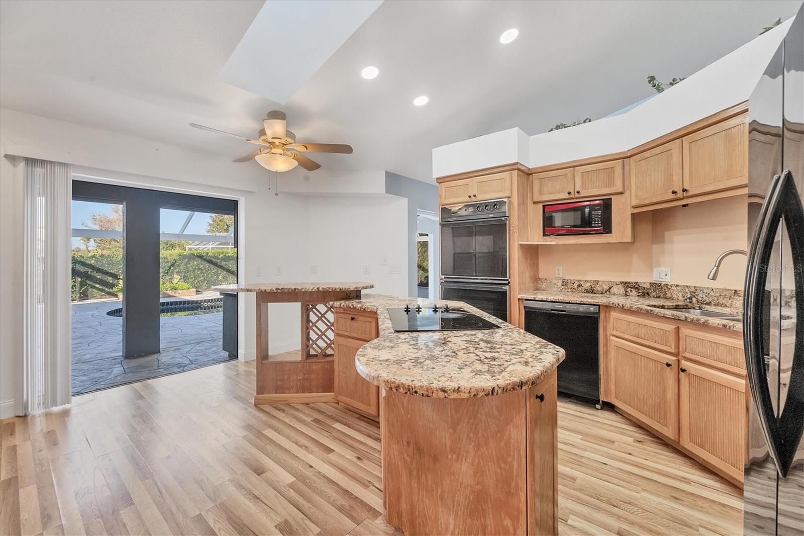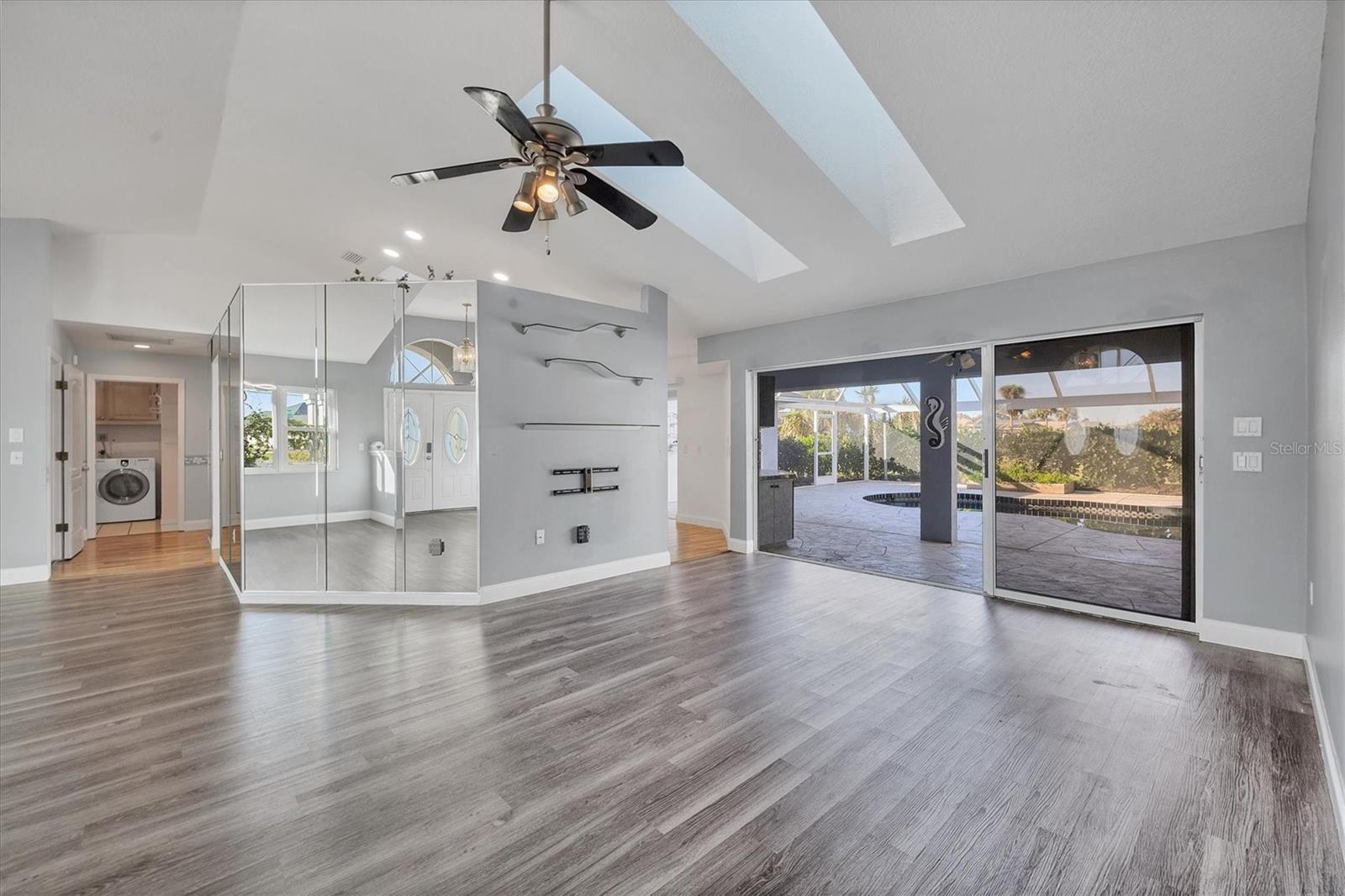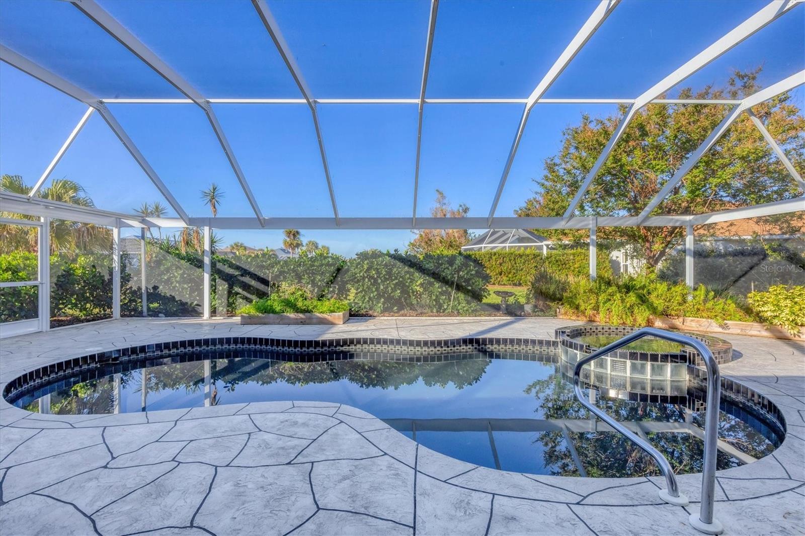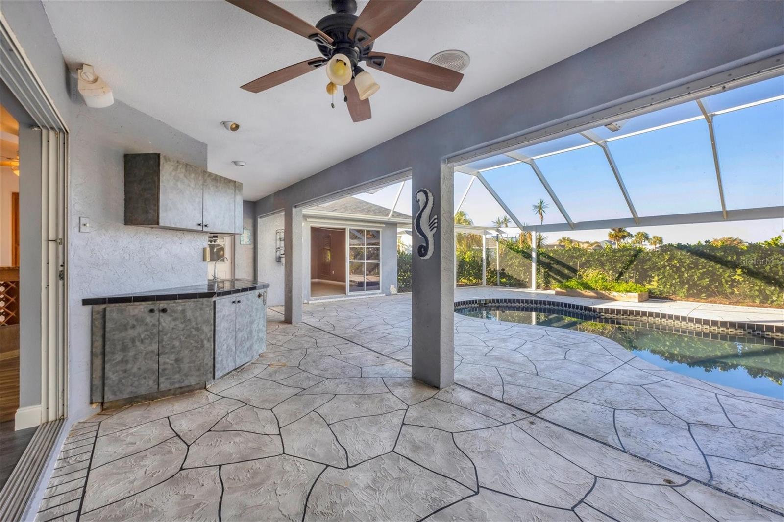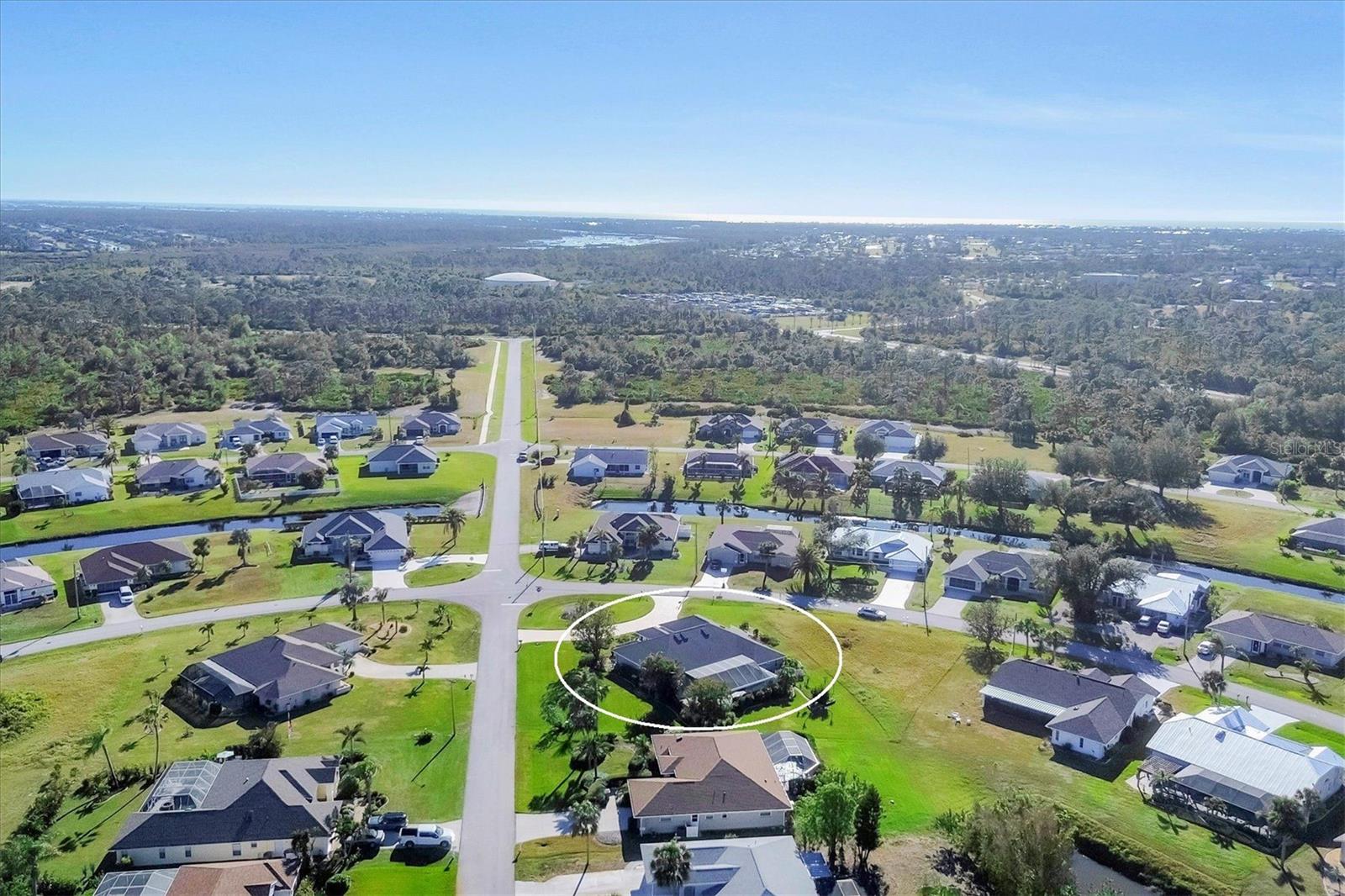 Spacious Living with Circular Driveway on Oversized Corner Lot in Rotonda West – This Three Bedroom, Two and a Half Bath Home is a Must-See! This home offers peace of mind with its location in the X flood zone, a 2023 roof, 9 impact windows, hurricane shutters for all remaining openings, and impact-resistant skylights for added storm protection. The screened entryway and double doors with decorative leaded glass welcome you into a stunning open space featuring triple pocketing sliders, vaulted ceilings, an abundance of natural light, upgraded light fixtures, and gleaming floors that flow throughout. Step into the spacious kitchen, a chef's delight with ample granite countertop space, rich wood cabinets, a tray ceiling with a skylight, and double sliding glass doors that open to the pool area, perfect for both indoor and outdoor entertaining. The primary ensuite offers private outdoor access through sliding glass doors, a tray ceiling, and a spacious walk-in closet with custom organizers. The primary bathroom serves as a serene retreat, featuring a jetted tub, a separate step-in shower, and an expansive dual-sink vanity with a makeup area. One guest bedroom features a walk-in closet and sliding glass doors leading to the pool, while the other includes a cedar reach-in closet. Both guest rooms share a convenient bathroom, and an additional half bath ensures everyone has their own space to prepare for the day. The air conditioned garage features tiled floors, tons of built-in cabinets, and a cleverly designed false wall concealing the garage door, creating a seamless extension of the home while providing abundant storage and parking space. The spacious lanai and recently updated caged pool area with panoramic screening offer everything needed to live the Florida lifestyle, featuring a spa, a wet bar with a sink and cabinets, and lush mature landscaping for added privacy. Located on Florida’s beautiful southwest coast, the deed-restricted Rotonda West community offers the perfect balance of peaceful living and an active outdoor lifestyle. With 26 miles of tranquil canals, ponds, and lakes, this charming neighborhood is just a short drive from pristine beaches, boating in Lemon Bay and Boca Grande, shopping, local dining, major league baseball facilities, and some of the world’s best fishing in the Gulf of Mexico. Whether you’re seeking relaxation or adventure, this area has it all. Contact us today to schedule your private showing!