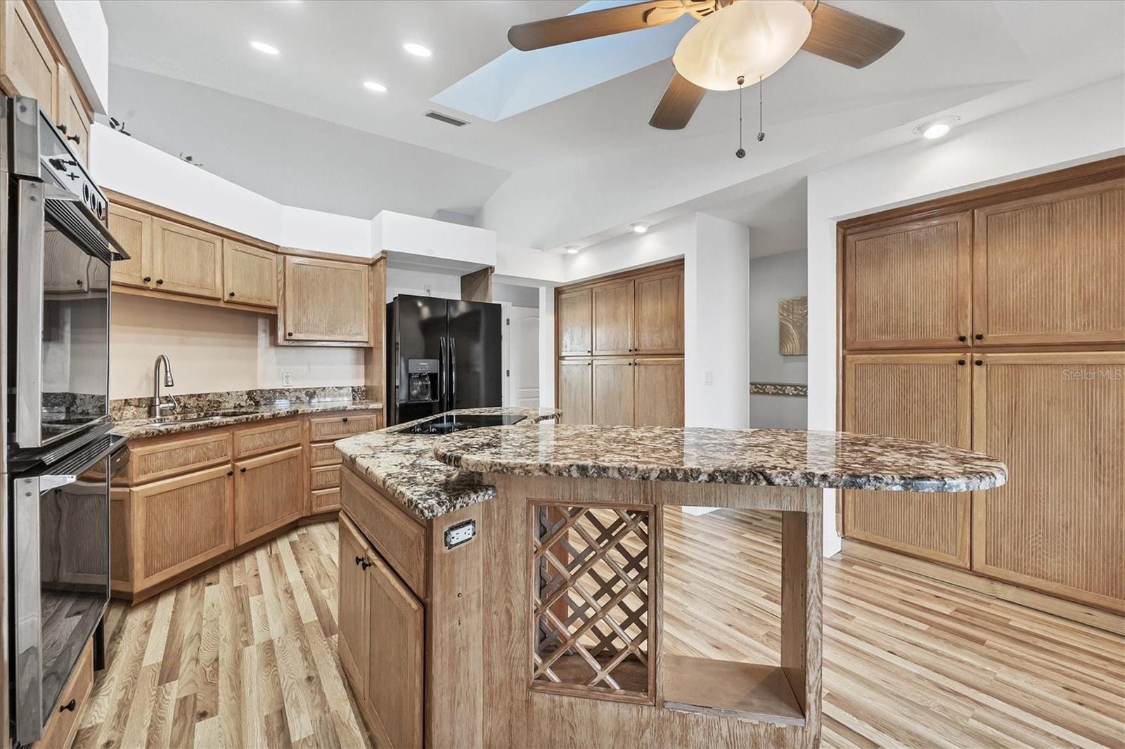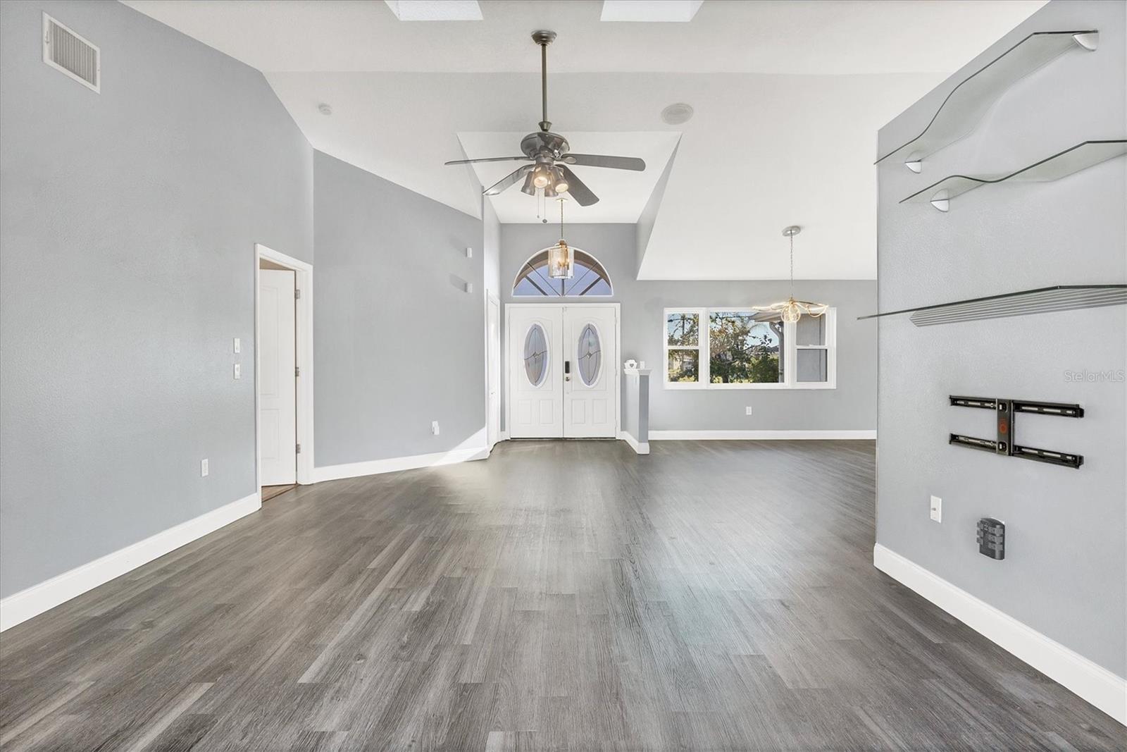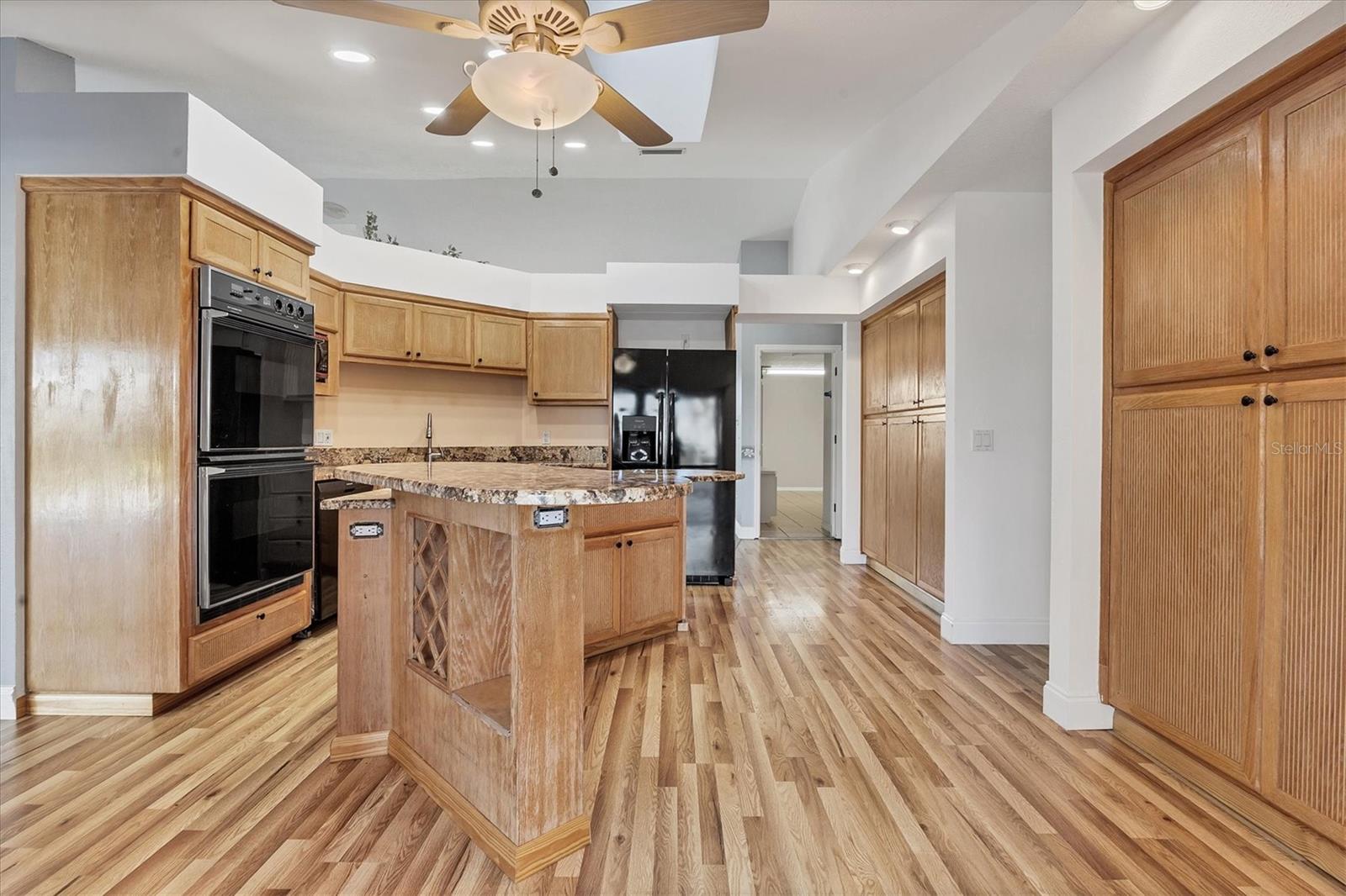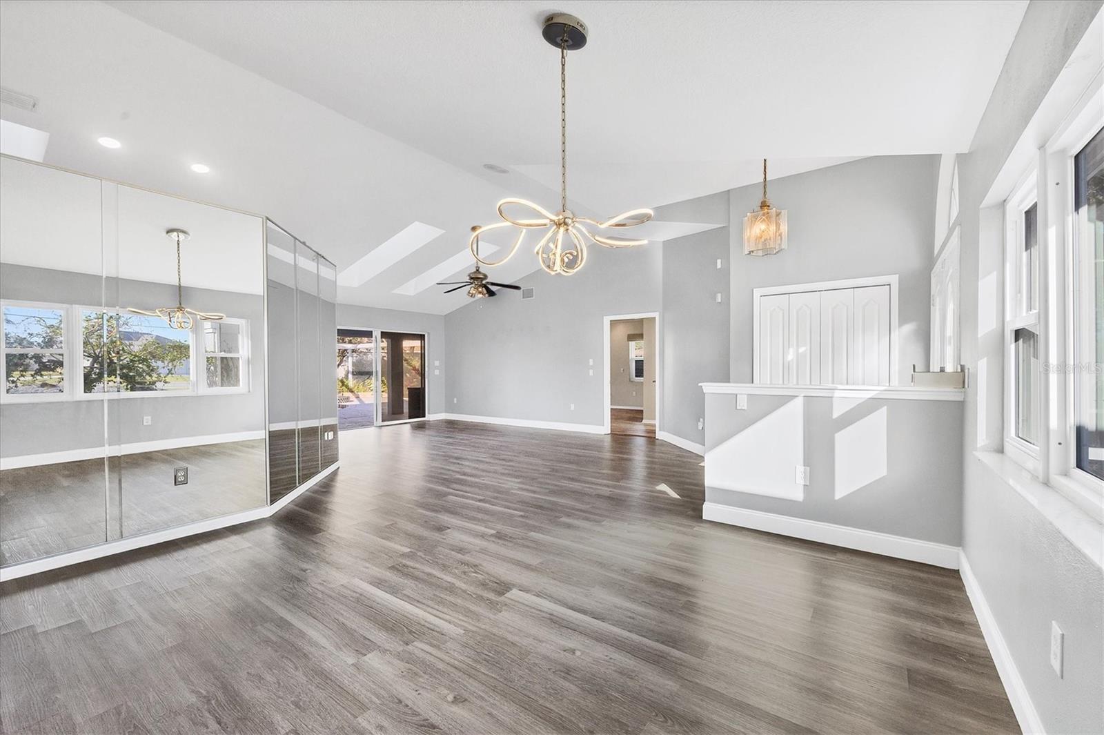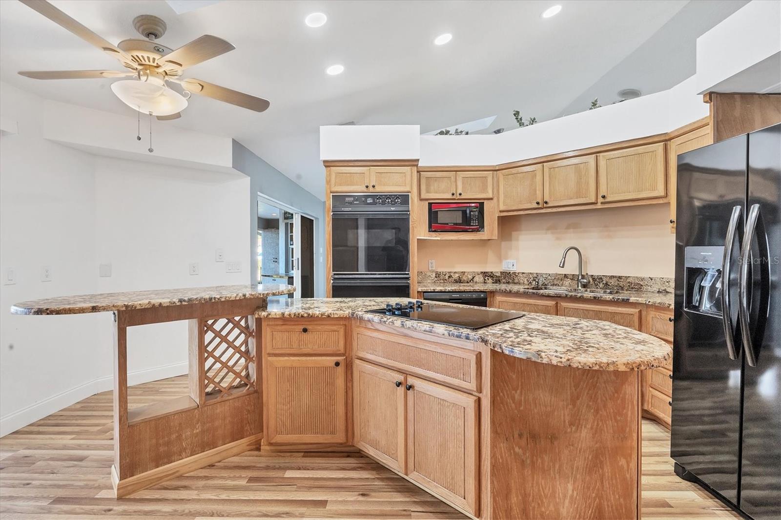 Spacious Living with Circular Driveway on Oversized Corner Lot in Rotonda West – This Three Bedroom, Two and a Half Bath Home is a Must-See! This home offers peace of mind with its location in the X flood zone, a 2023 roof, 9 impact windows, hurricane shutters for all remaining openings, and impact-resistant skylights for added storm protection. The screened entryway and double doors with decorative leaded glass welcome you into a stunning open space featuring triple pocketing sliders, vaulted ceilings, an abundance of natural light, upgraded light fixtures, and gleaming floors that flow throughout. Step into the spacious kitchen, a chef's delight with ample granite countertop space, rich wood cabinets, a tray ceiling with a skylight, and double sliding glass doors that open to the pool area, perfect for both indoor and outdoor entertaining. The primary ensuite offers private outdoor access through sliding glass doors, a tray ceiling, and a spacious walk-in closet with custom organizers. The primary bathroom serves as a serene retreat, featuring a jetted tub, a separate step-in shower, and an expansive dual-sink vanity with a makeup area. One guest bedroom features a walk-in closet and sliding glass doors leading to the pool, while the other includes a cedar reach-in closet. Both guest rooms share a convenient bathroom, and an additional half bath ensures everyone has their own space to prepare for the day. The air conditioned garage features tiled floors, tons of built-in cabinets, and a cleverly designed false wall concealing the garage door, creating a seamless extension of the home while providing abundant storage and parking space. The spacious lanai and recently updated caged pool area with panoramic screening offer everything needed to live the Florida lifestyle, featuring a spa, a wet bar with a sink and cabinets, and lush mature landscaping for added privacy. Located on Florida’s beautiful southwest coast, the deed-restricted Rotonda West community offers the perfect balance of peaceful living and an active outdoor lifestyle. With 26 miles of tranquil canals, ponds, and lakes, this charming neighborhood is just a short drive from pristine beaches, boating in Lemon Bay and Boca Grande, shopping, local dining, major league baseball facilities, and some of the world’s best fishing in the Gulf of Mexico. Whether you’re seeking relaxation or adventure, this area has it all. Contact us today to schedule your private showing!
