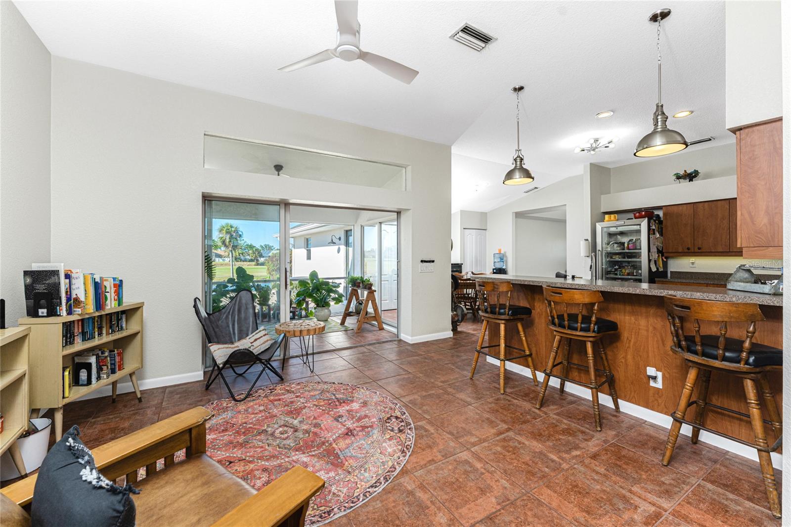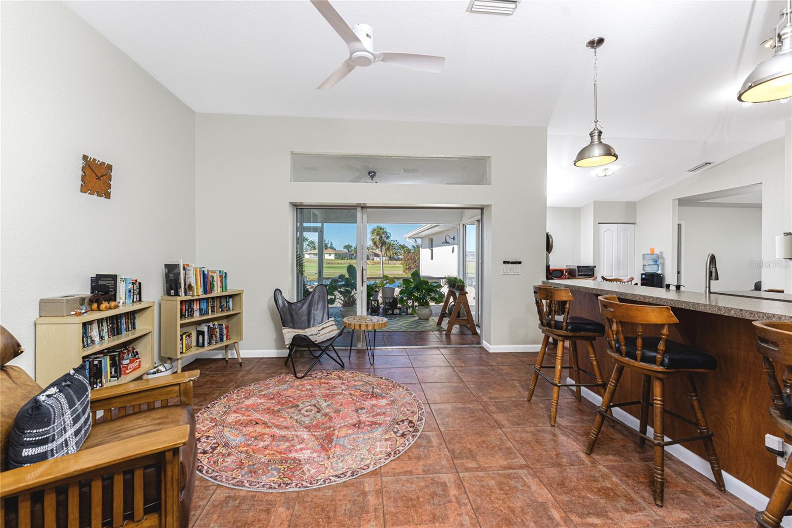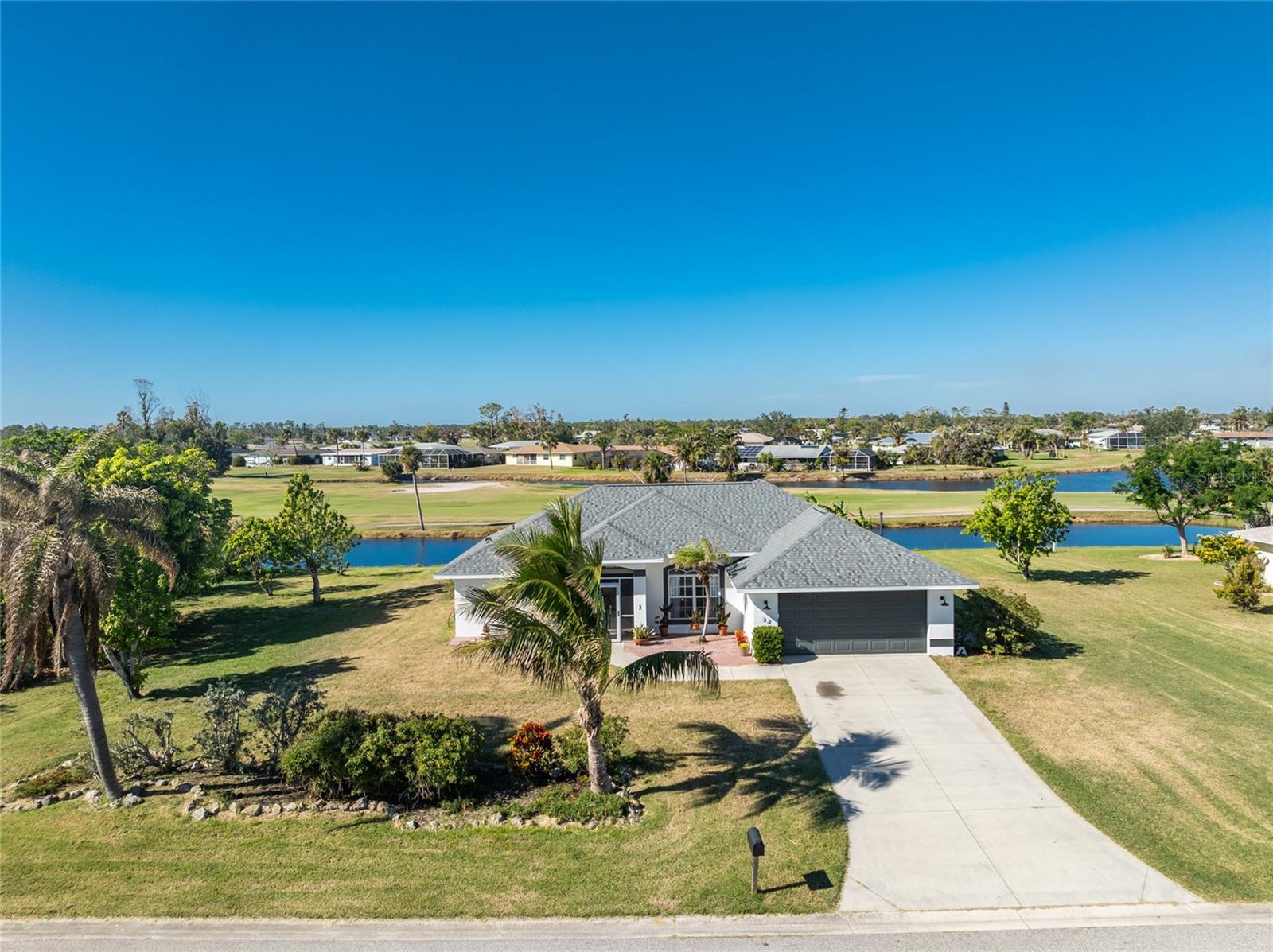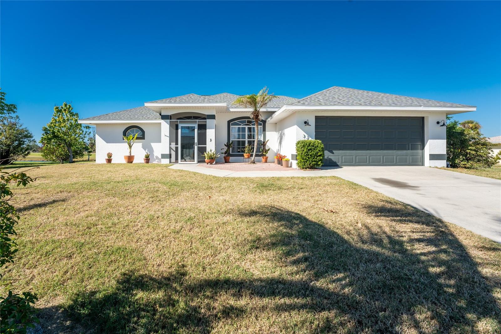 Have a large family or just like plenty of room? Take a look at this 4 BEDROOM PLUS DEN/OFFICE/2 BATH/ 2 CAR GARAGE HOME, built in 2003 by Roberts Homes, on a DOUBLE LOT with a great view of both the golf course and pond on the 2nd FAIRWAY! The screened and double door entry will invitingly welcome you in. Features include; Volume ceilings, tiled flooring throughout, and both a formal living room which opens onto the lanai plus a casual family room. Floor plan is very open and is the popular "split" design, meaning the master bedroom and bath are on one side of the house, and the three guest bedrooms are on the opposite side - the perfect arrangement for the kids or when you have company! The kitchen is truly a chef's kitchen, with a 6 burner Imperial Gas range, commercial grade Frigidaire referigerator, and LG dishwasher. The master bedroom offers both a walk in plus a wall closet for all of your clothing, tray ceiling for that decorative touch, and the master bath has a Roman Shower. Good sized laundry room makes doing the laundry a breeze! Lanai opens on to a double decker paver patio, with a built in fire pit -this would be the perfect place to add an outside kitchen. Several fruit trees will provide mangos, avocados, and peaches for your breakfast smoothie! Roof was new in 2023. This home is located in the deed restricted golf course community of Rotonda West, which has 5 golf courses, a huge nature park, clubhouse, and tennis courts with a low annual fee of only $190/per lot.