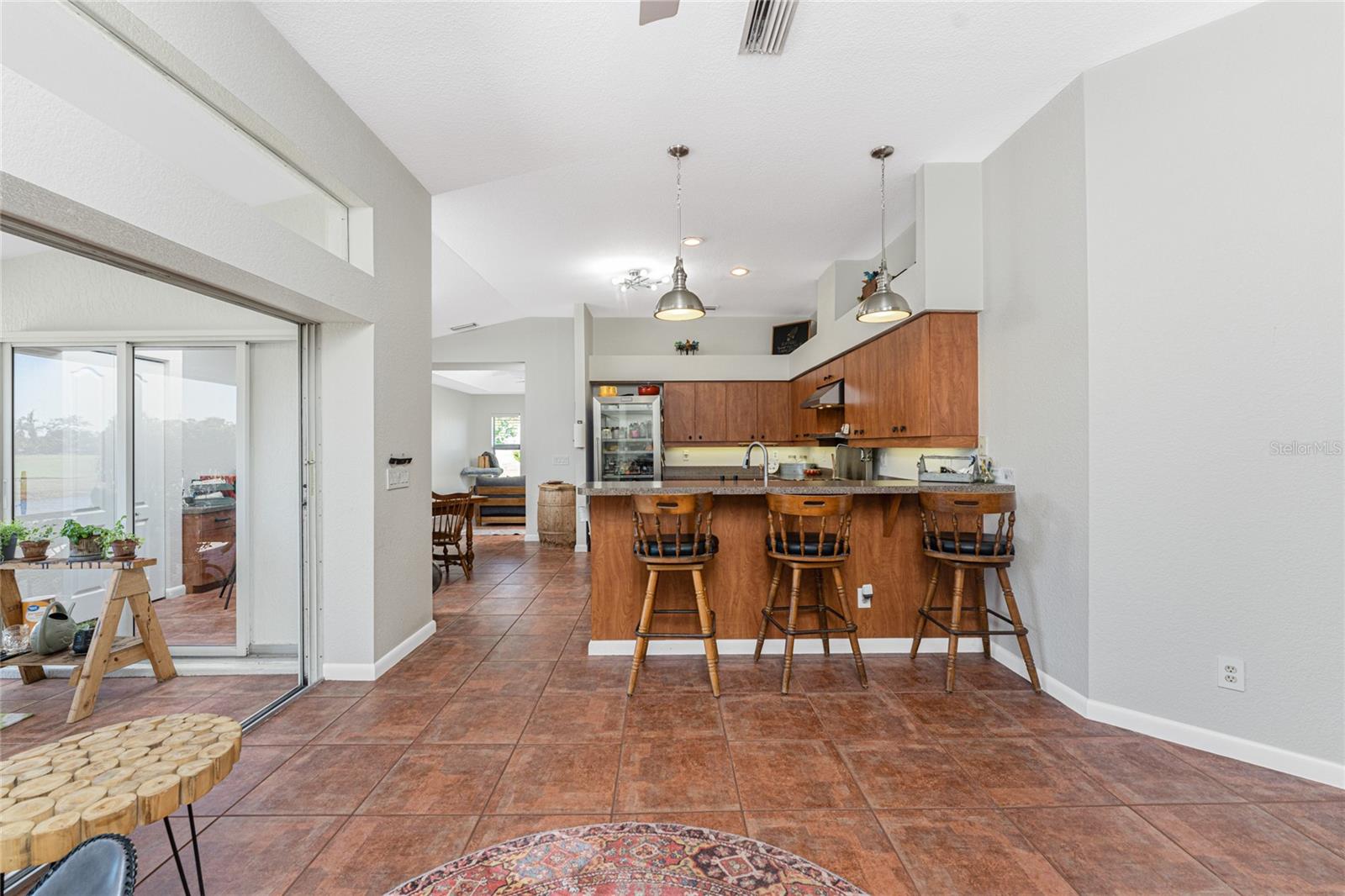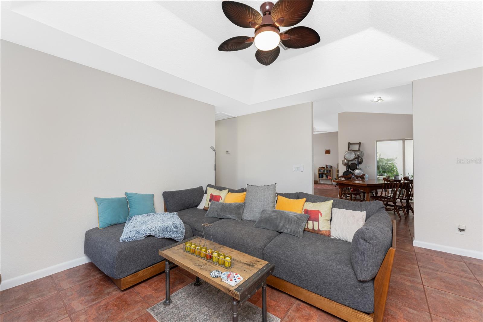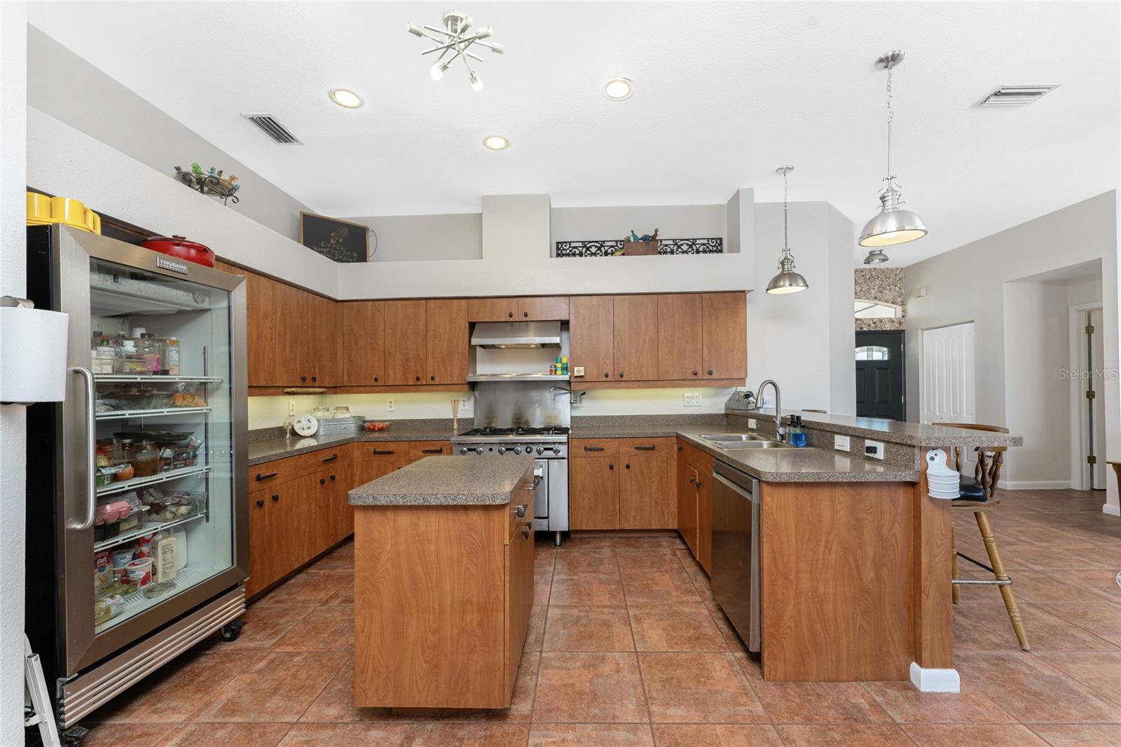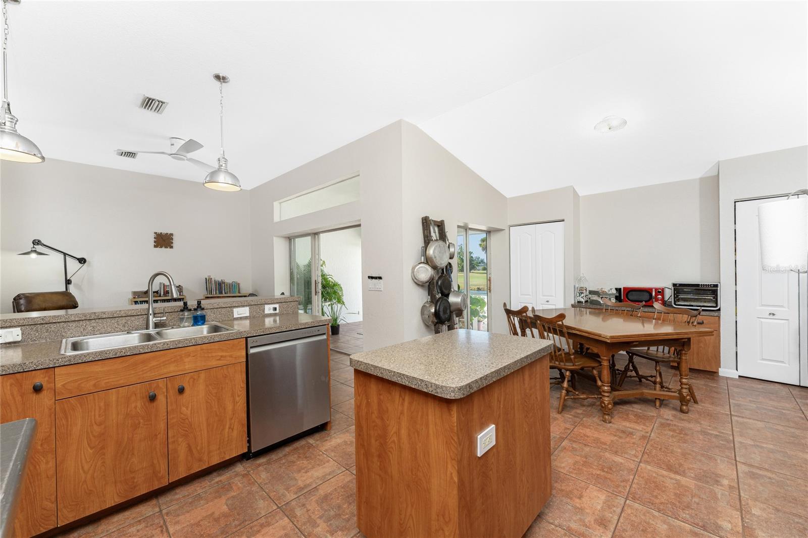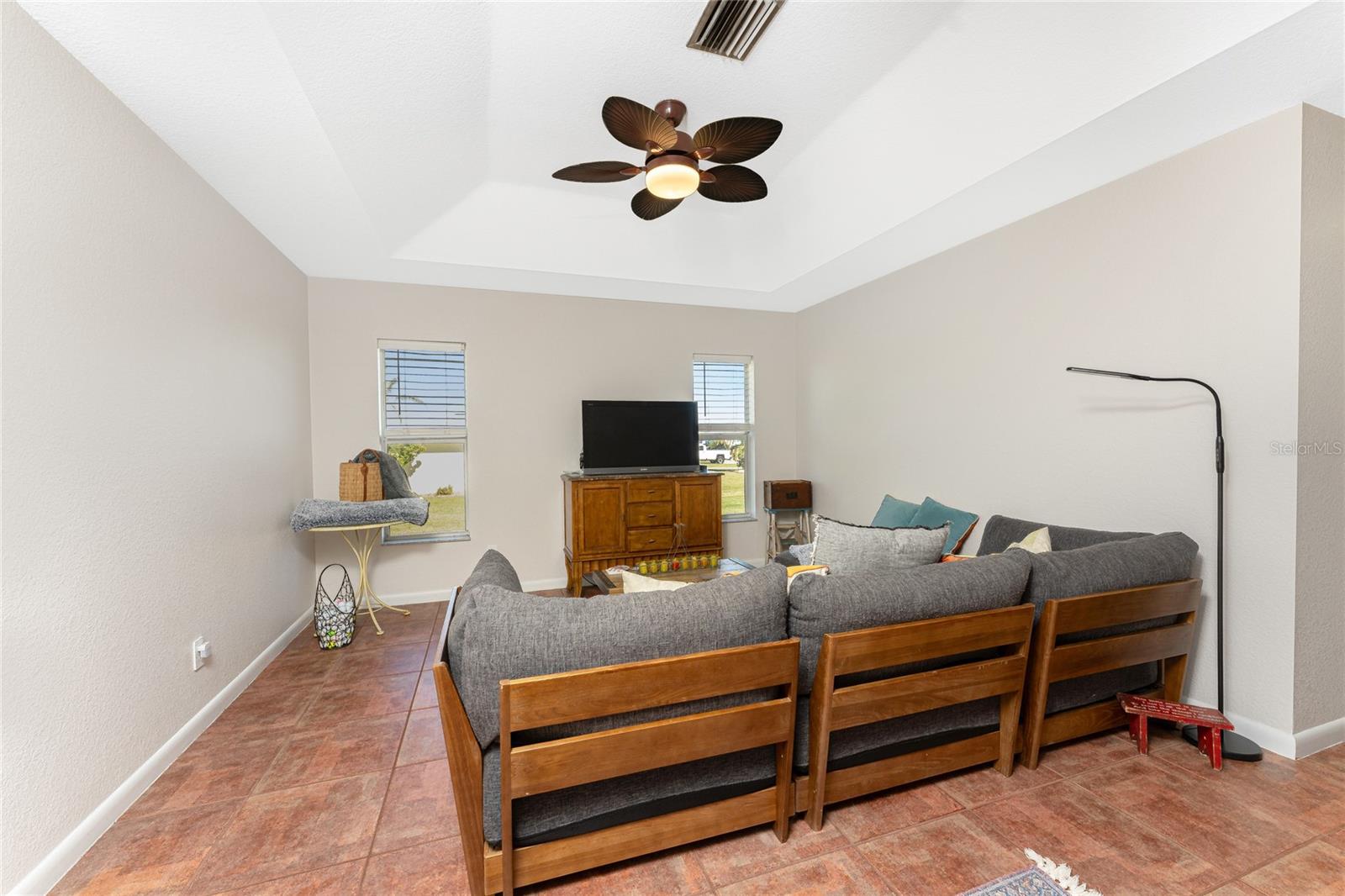 Have a large family or just like plenty of room? Take a look at this 4 BEDROOM PLUS DEN/OFFICE/2 BATH/ 2 CAR GARAGE HOME, built in 2003 by Roberts Homes, on a DOUBLE LOT with a great view of both the golf course and pond on the 2nd FAIRWAY! The screened and double door entry will invitingly welcome you in. Features include; Volume ceilings, tiled flooring throughout, and both a formal living room which opens onto the lanai plus a casual family room. Floor plan is very open and is the popular "split" design, meaning the master bedroom and bath are on one side of the house, and the three guest bedrooms are on the opposite side - the perfect arrangement for the kids or when you have company! The kitchen is truly a chef's kitchen, with a 6 burner Imperial Gas range, commercial grade Frigidaire referigerator, and LG dishwasher. The master bedroom offers both a walk in plus a wall closet for all of your clothing, tray ceiling for that decorative touch, and the master bath has a Roman Shower. Good sized laundry room makes doing the laundry a breeze! Lanai opens on to a double decker paver patio, with a built in fire pit -this would be the perfect place to add an outside kitchen. Several fruit trees will provide mangos, avocados, and peaches for your breakfast smoothie! Roof was new in 2023. This home is located in the deed restricted golf course community of Rotonda West, which has 5 golf courses, a huge nature park, clubhouse, and tennis courts with a low annual fee of only $190/per lot.