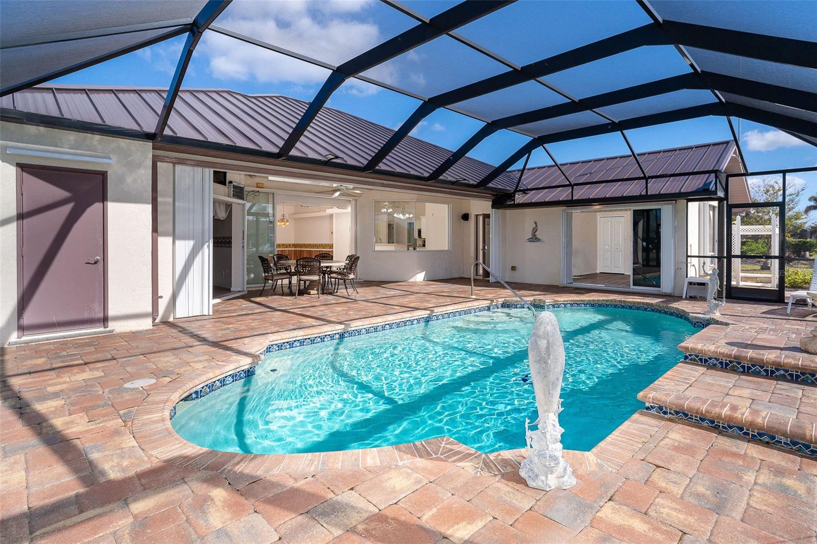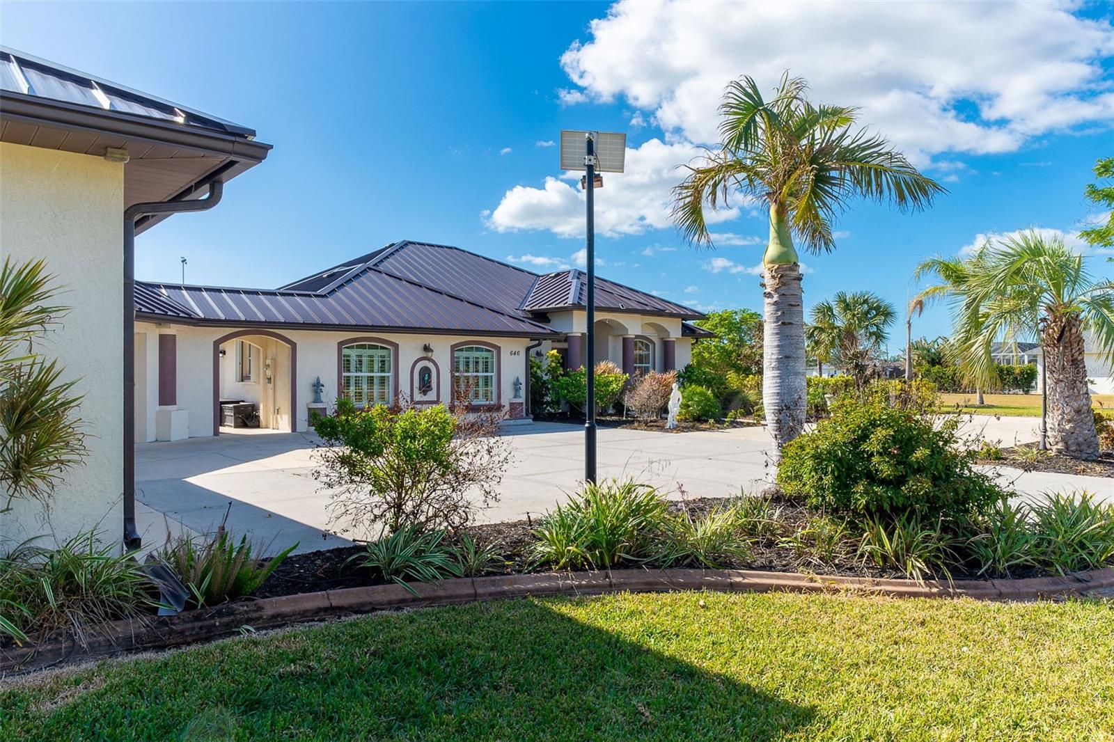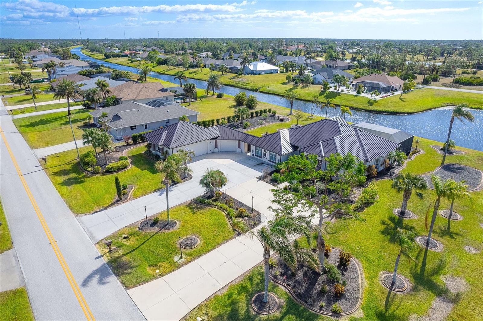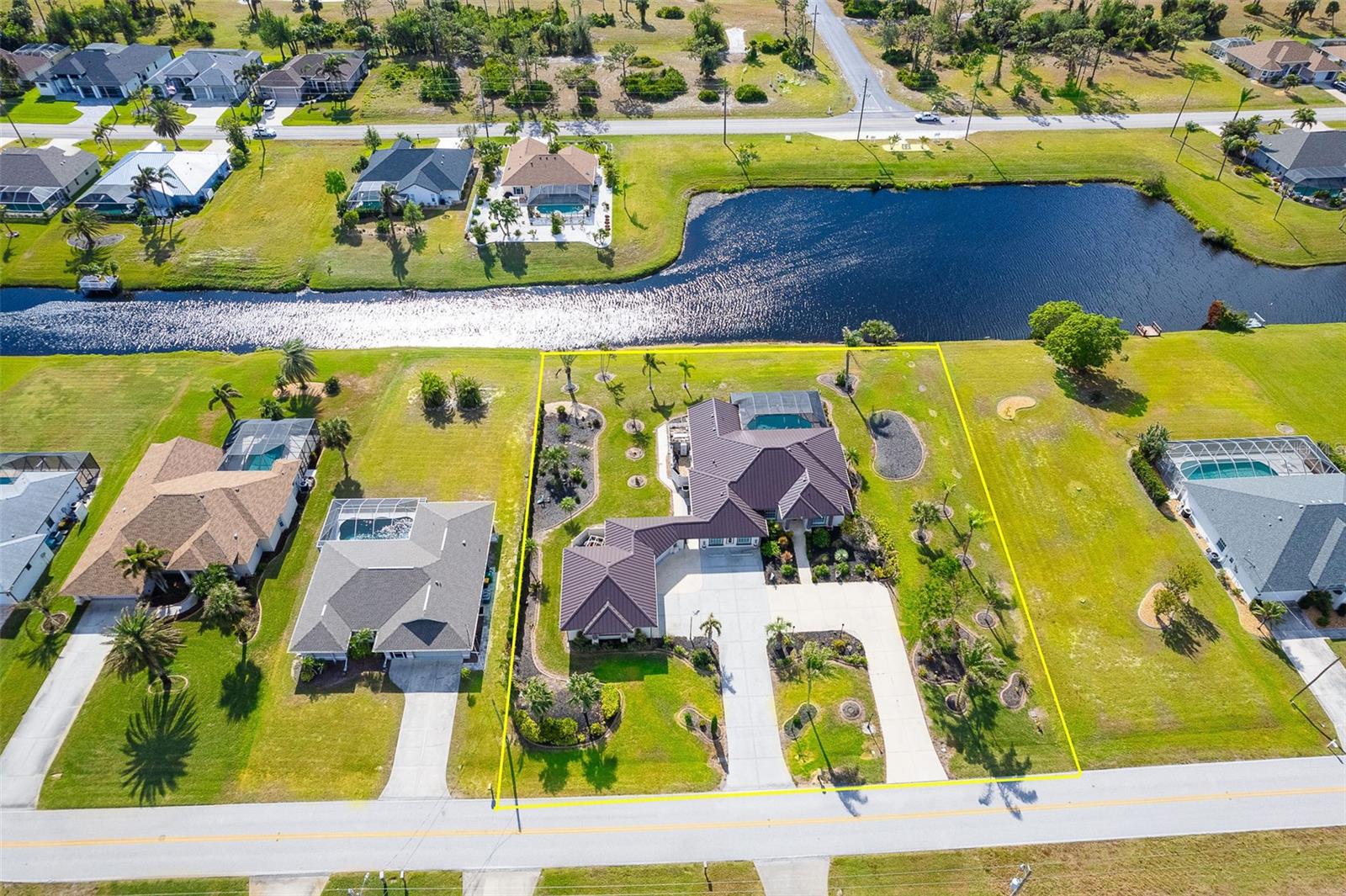 One or more photo(s) has been virtually staged. SELLER FINANCING AVAILABLE at 4.25% interest for qualified buyers! Located in an "X" Flood Zone, this home does not require flood insurance—a rare and valuable benefit in Florida. If you're searching for a high-and-dry home that offers the perfect blend of privacy, space, and style, this is the one. Situated on nearly ¾ of an acre across two waterfront lots, the property features one of the widest views of the Rotonda River/Canal, providing peaceful water vistas and unmatched seclusion. From the moment you arrive, the curb appeal is undeniable. A grand circular driveway welcomes you and leads to oversized garages, while freshly mulched flower beds and lush landscaping enhance the home’s visual charm. A brand-new steel standing seam metal roof (2023) with a dry-in underlayment membrane offers long-term durability and preferred insurance benefits. The property is also protected by three separate security systems for your peace of mind. There’s ample outdoor storage with two fenced-in areas, perfect for lawn equipment or hobby gear. The garages total nearly 1,200 square feet and include space for three cars, a workshop, motorcycles, and even a Level 2 EV charging outlet (50 Amp). A spacious attic provides plenty of extra storage space for your holiday decorations. A professionally installed transfer switch allows for quick generator hookup during power outages. Inside, the primary suite is a true retreat, featuring a spacious bedroom with tray ceilings and tranquil water views. The adjoining bathroom is beautifully appointed with double vanities, a large walk-in shower, soaking tub, two walk-in closets, and a private entrance for added seclusion. The second bedroom offers a walk-in closet and waterproof laminate flooring, while the third bedroom, also with waterproof laminate flooring, currently used as a home office, includes built-in closet space for a printer and a dedicated Winchester fireproof safe. The fourth bedroom was created during a professional garage conversion and serves as a spacious exercise room, accompanied by a large bonus room ideal as a playroom or second office. This portion of the home has its own AC and heating system for added comfort. The kitchen is a chef’s dream, complete with a center island, high-end stainless steel appliances, and extensive cabinetry for storage. The laundry room features upgraded front-loading machines, and three refrigerators (two in home and one in garage) convey with the home. The home is equipped with up-to-code hurricane-rated accordion shutters, metal panels, impact windows, and garage doors for full storm protection. The accordion quick-close hurricane shutters on the lanai provide easy storm protection for all your pool accessories/outdoor furniture without having to drag them into the house. You'll also find luxury touches throughout, including Hansgrohe faucets, Schonbek chandeliers in the dining and entry areas, built-in speaker wiring for a home theater, and a panoramic screen pool cage with sealed pavers and HD materials. Perfectly located just minutes from the stunning beaches of Englewood and Boca Grande, as well as five championship golf courses, this home offers a rare combination of luxury, function, and location.