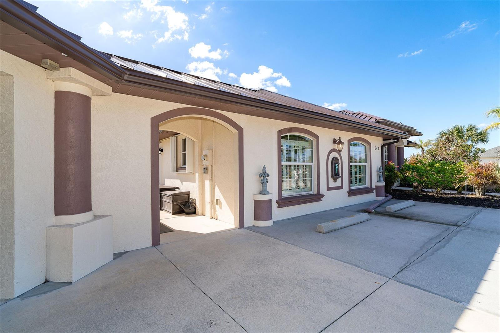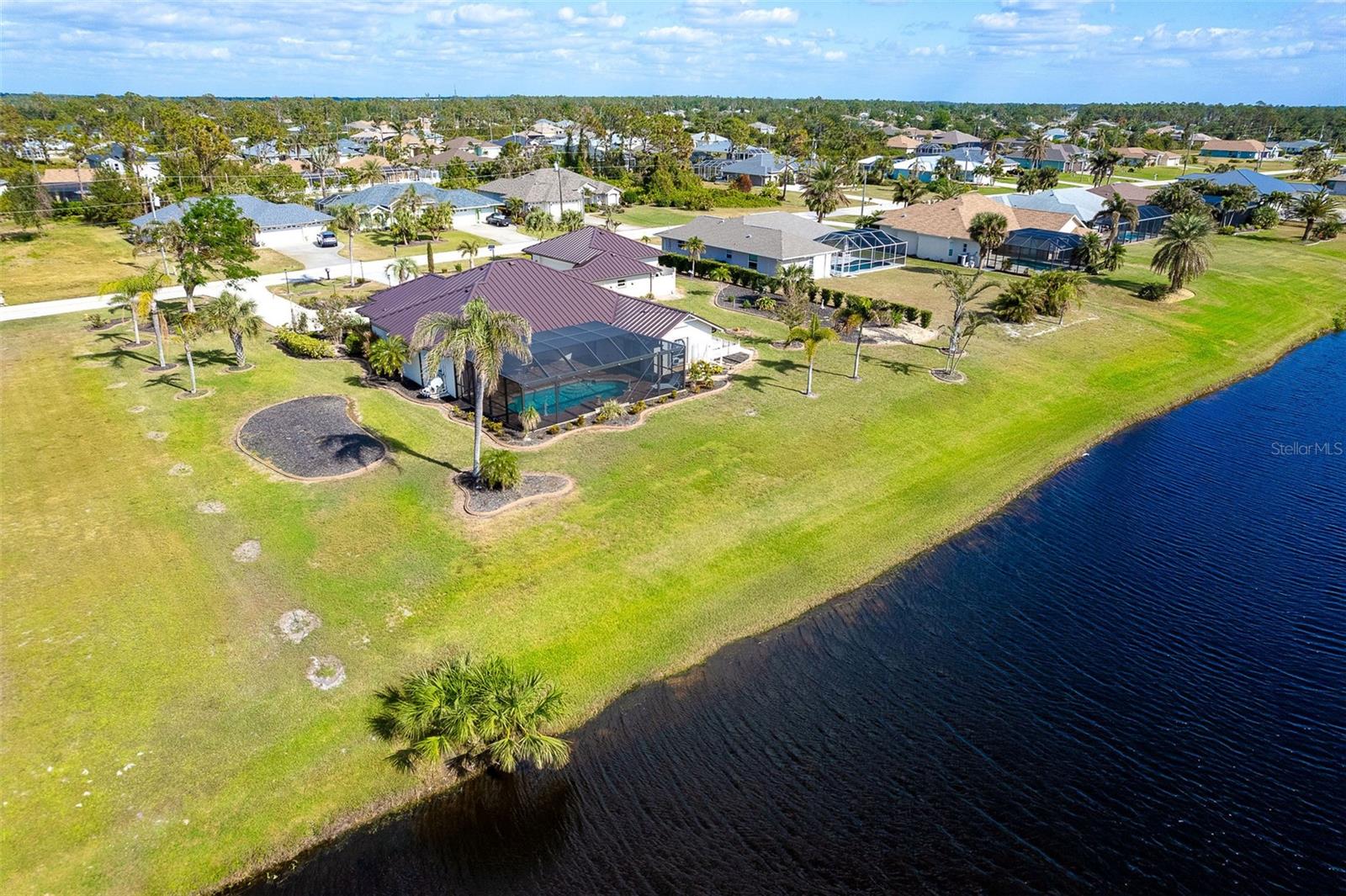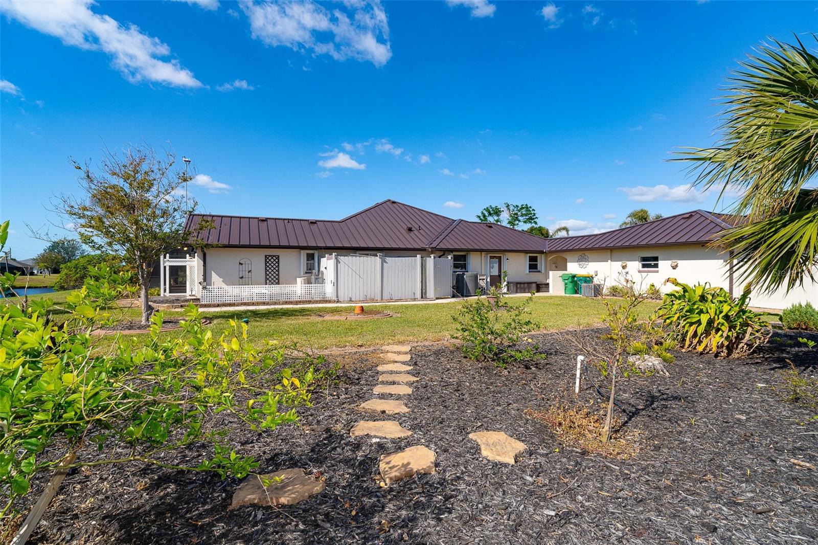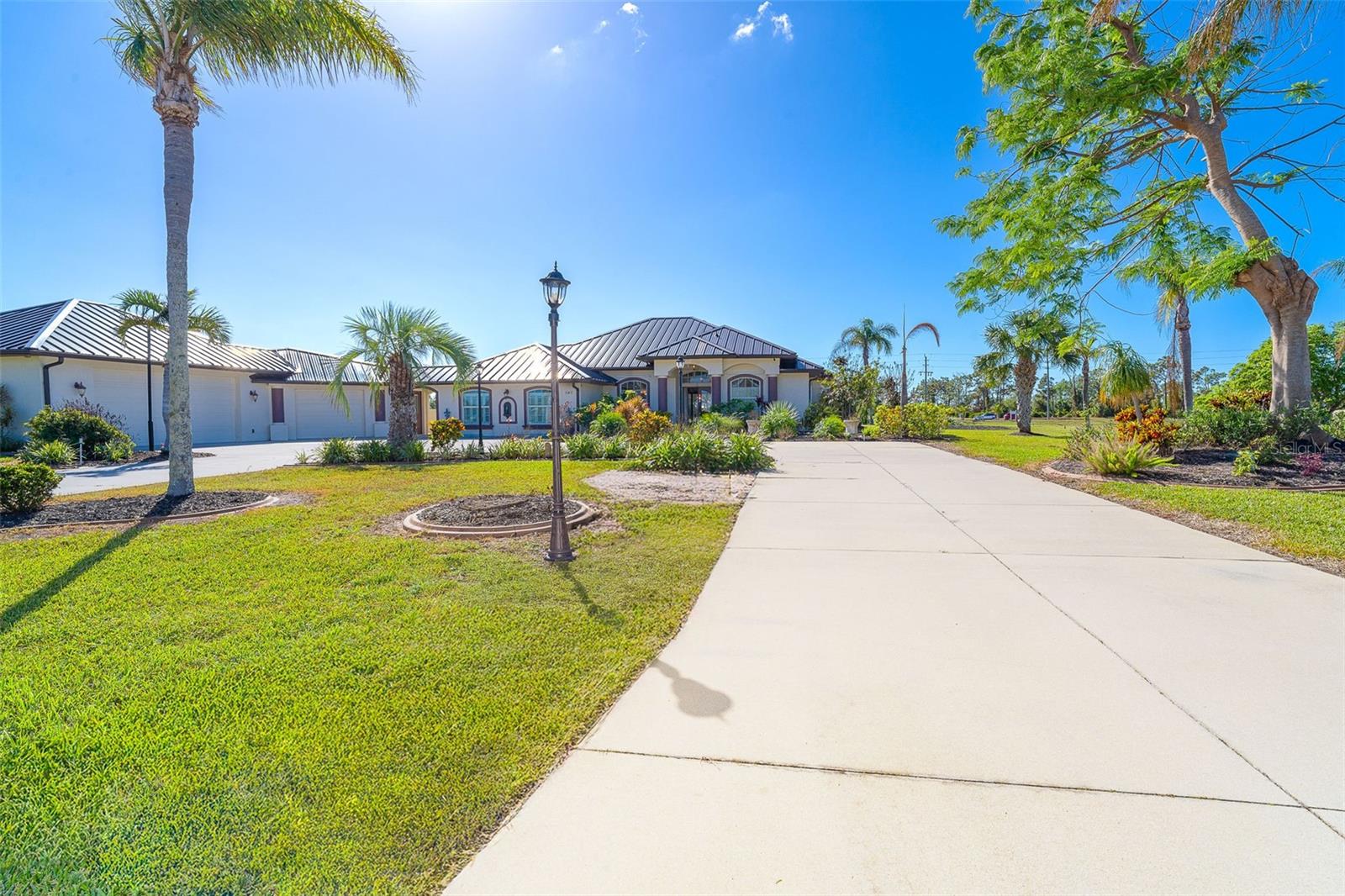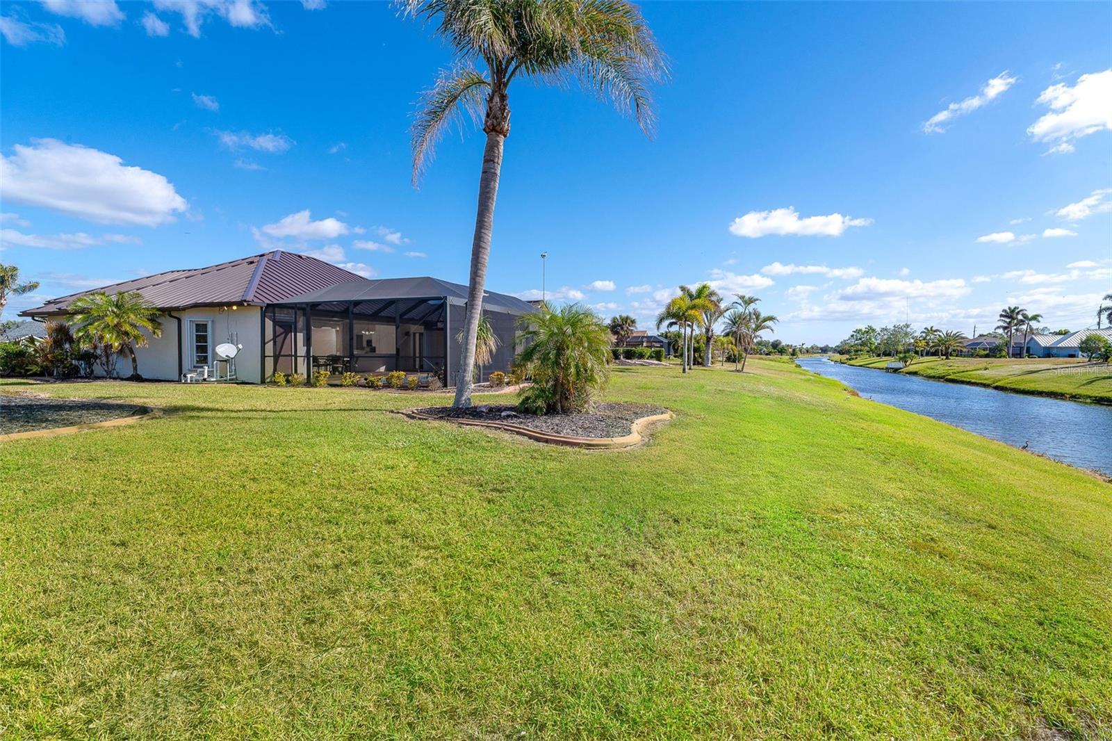 One or more photo(s) has been virtually staged. SELLER FINANCING AVAILABLE at 4.25% interest for qualified buyers! Located in an "X" Flood Zone, this home does not require flood insurance—a rare and valuable benefit in Florida. If you're searching for a high-and-dry home that offers the perfect blend of privacy, space, and style, this is the one. Situated on nearly ¾ of an acre across two waterfront lots, the property features one of the widest views of the Rotonda River/Canal, providing peaceful water vistas and unmatched seclusion. From the moment you arrive, the curb appeal is undeniable. A grand circular driveway welcomes you and leads to oversized garages, while freshly mulched flower beds and lush landscaping enhance the home’s visual charm. A brand-new steel standing seam metal roof (2023) with a dry-in underlayment membrane offers long-term durability and preferred insurance benefits. The property is also protected by three separate security systems for your peace of mind. There’s ample outdoor storage with two fenced-in areas, perfect for lawn equipment or hobby gear. The garages total nearly 1,200 square feet and include space for three cars, a workshop, motorcycles, and even a Level 2 EV charging outlet (50 Amp). A spacious attic provides plenty of extra storage space for your holiday decorations. A professionally installed transfer switch allows for quick generator hookup during power outages. Inside, the primary suite is a true retreat, featuring a spacious bedroom with tray ceilings and tranquil water views. The adjoining bathroom is beautifully appointed with double vanities, a large walk-in shower, soaking tub, two walk-in closets, and a private entrance for added seclusion. The second bedroom offers a walk-in closet and waterproof laminate flooring, while the third bedroom, also with waterproof laminate flooring, currently used as a home office, includes built-in closet space for a printer and a dedicated Winchester fireproof safe. The fourth bedroom was created during a professional garage conversion and serves as a spacious exercise room, accompanied by a large bonus room ideal as a playroom or second office. This portion of the home has its own AC and heating system for added comfort. The kitchen is a chef’s dream, complete with a center island, high-end stainless steel appliances, and extensive cabinetry for storage. The laundry room features upgraded front-loading machines, and three refrigerators (two in home and one in garage) convey with the home. The home is equipped with up-to-code hurricane-rated accordion shutters, metal panels, impact windows, and garage doors for full storm protection. The accordion quick-close hurricane shutters on the lanai provide easy storm protection for all your pool accessories/outdoor furniture without having to drag them into the house. You'll also find luxury touches throughout, including Hansgrohe faucets, Schonbek chandeliers in the dining and entry areas, built-in speaker wiring for a home theater, and a panoramic screen pool cage with sealed pavers and HD materials. Perfectly located just minutes from the stunning beaches of Englewood and Boca Grande, as well as five championship golf courses, this home offers a rare combination of luxury, function, and location.