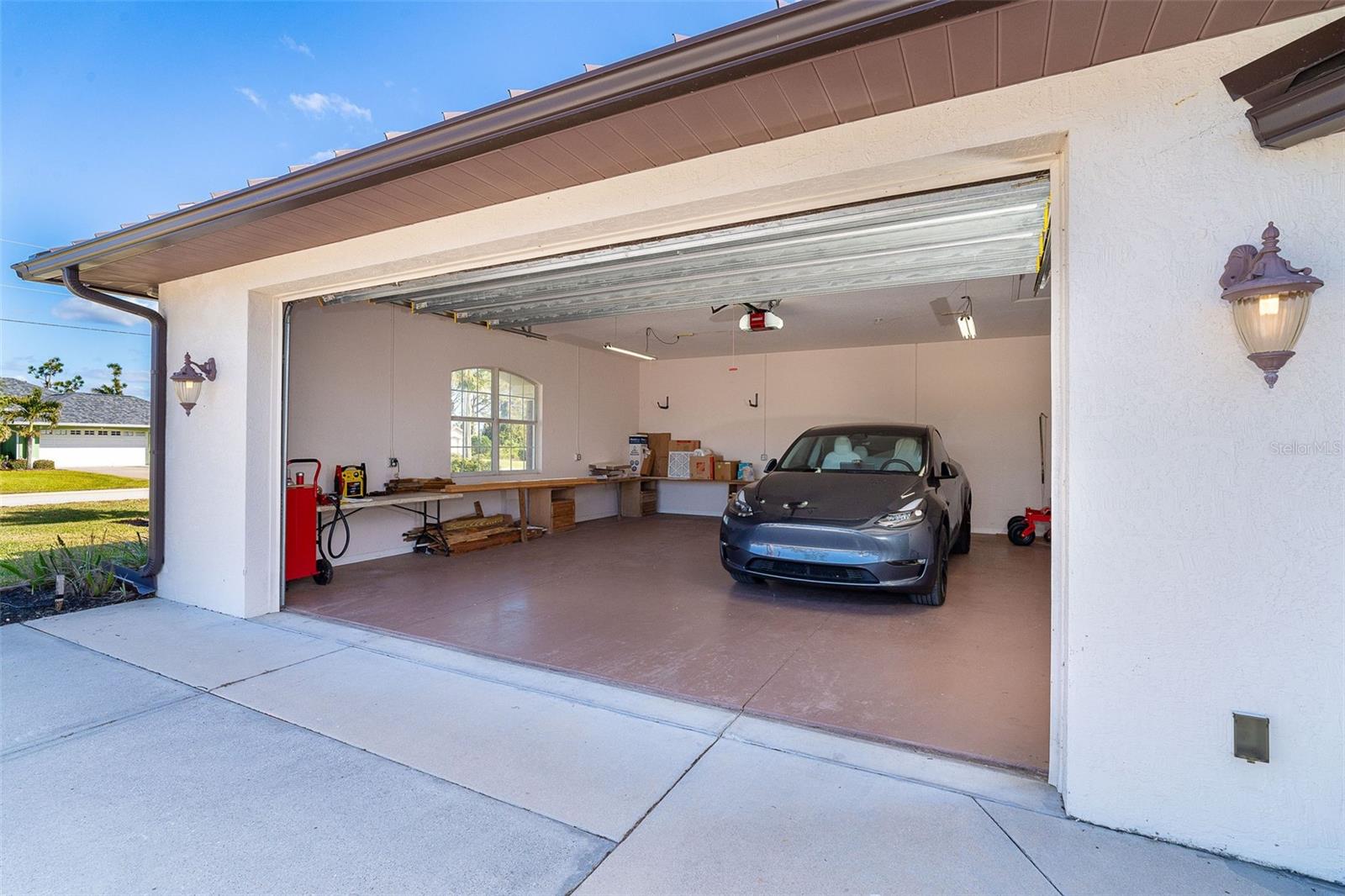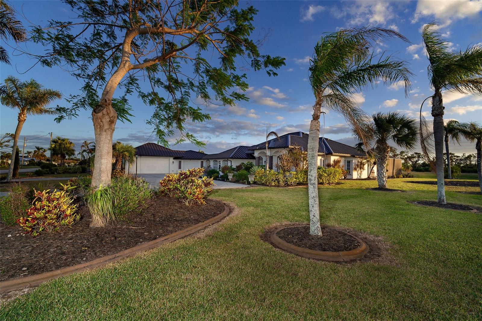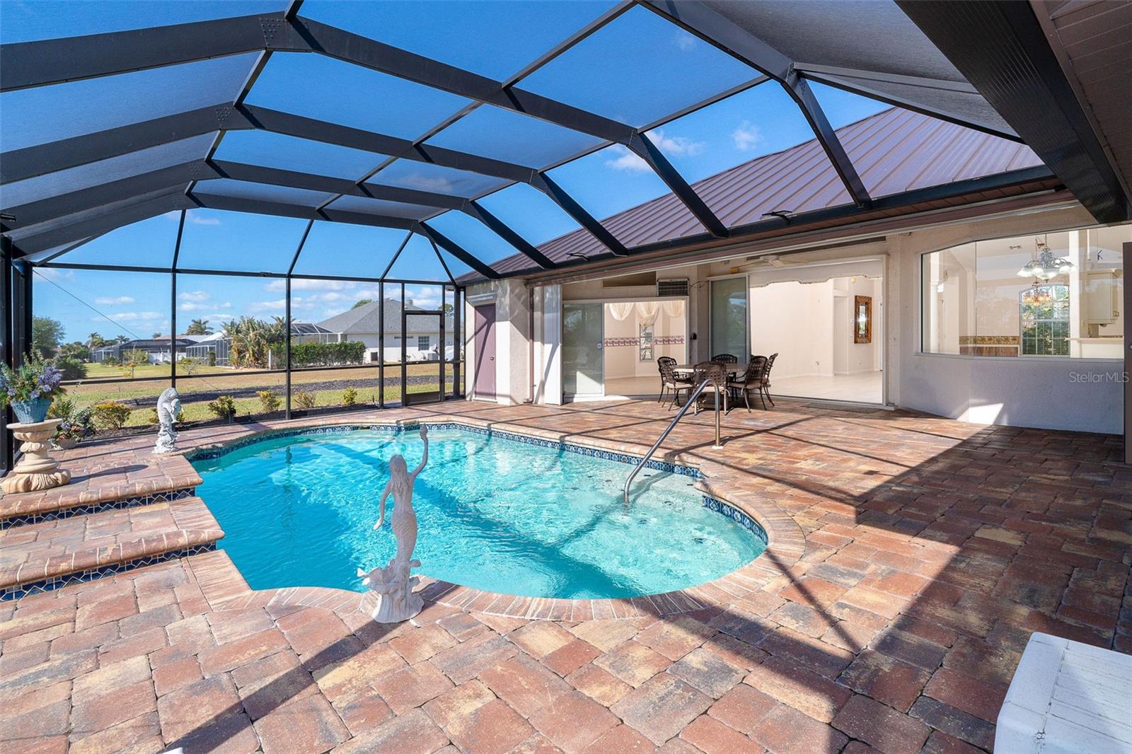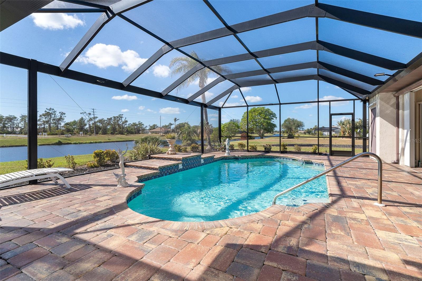 One or more photo(s) has been virtually staged. SELLER FINANCING AVAILABLE at 4.25% interest for qualified buyers! Located in an "X" Flood Zone, this home does not require flood insurance—a rare and valuable benefit in Florida. If you're searching for a high-and-dry home that offers the perfect blend of privacy, space, and style, this is the one. Situated on nearly ¾ of an acre across two waterfront lots, the property features one of the widest views of the Rotonda River/Canal, providing peaceful water vistas and unmatched seclusion. From the moment you arrive, the curb appeal is undeniable. A grand circular driveway welcomes you and leads to oversized garages, while freshly mulched flower beds and lush landscaping enhance the home’s visual charm. A brand-new steel standing seam metal roof (2023) with a dry-in underlayment membrane offers long-term durability and preferred insurance benefits. The property is also protected by three separate security systems for your peace of mind. There’s ample outdoor storage with two fenced-in areas, perfect for lawn equipment or hobby gear. The garages total nearly 1,200 square feet and include space for three cars, a workshop, motorcycles, and even a Level 2 EV charging outlet (50 Amp). A spacious attic provides plenty of extra storage space for your holiday decorations. A professionally installed transfer switch allows for quick generator hookup during power outages. Inside, the primary suite is a true retreat, featuring a spacious bedroom with tray ceilings and tranquil water views. The adjoining bathroom is beautifully appointed with double vanities, a large walk-in shower, soaking tub, two walk-in closets, and a private entrance for added seclusion. The second bedroom offers a walk-in closet and waterproof laminate flooring, while the third bedroom, also with waterproof laminate flooring, currently used as a home office, includes built-in closet space for a printer and a dedicated Winchester fireproof safe. The fourth bedroom was created during a professional garage conversion and serves as a spacious exercise room, accompanied by a large bonus room ideal as a playroom or second office. This portion of the home has its own AC and heating system for added comfort. The kitchen is a chef’s dream, complete with a center island, high-end stainless steel appliances, and extensive cabinetry for storage. The laundry room features upgraded front-loading machines, and three refrigerators (two in home and one in garage) convey with the home. The home is equipped with up-to-code hurricane-rated accordion shutters, metal panels, impact windows, and garage doors for full storm protection. The accordion quick-close hurricane shutters on the lanai provide easy storm protection for all your pool accessories/outdoor furniture without having to drag them into the house. You'll also find luxury touches throughout, including Hansgrohe faucets, Schonbek chandeliers in the dining and entry areas, built-in speaker wiring for a home theater, and a panoramic screen pool cage with sealed pavers and HD materials. Perfectly located just minutes from the stunning beaches of Englewood and Boca Grande, as well as five championship golf courses, this home offers a rare combination of luxury, function, and location.