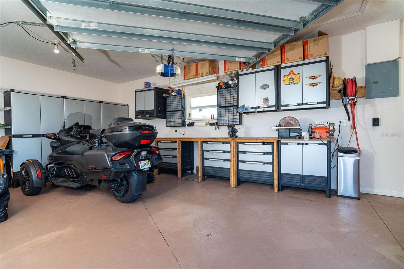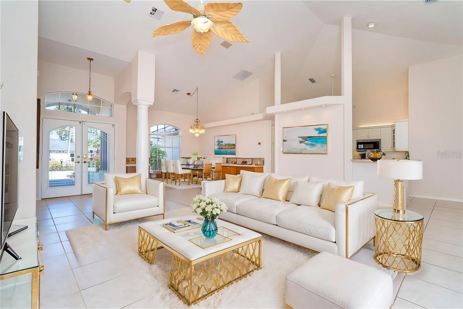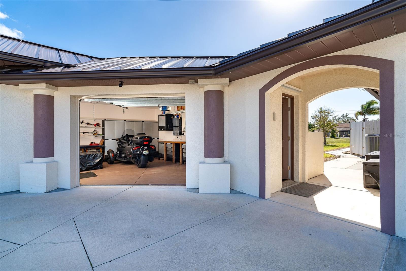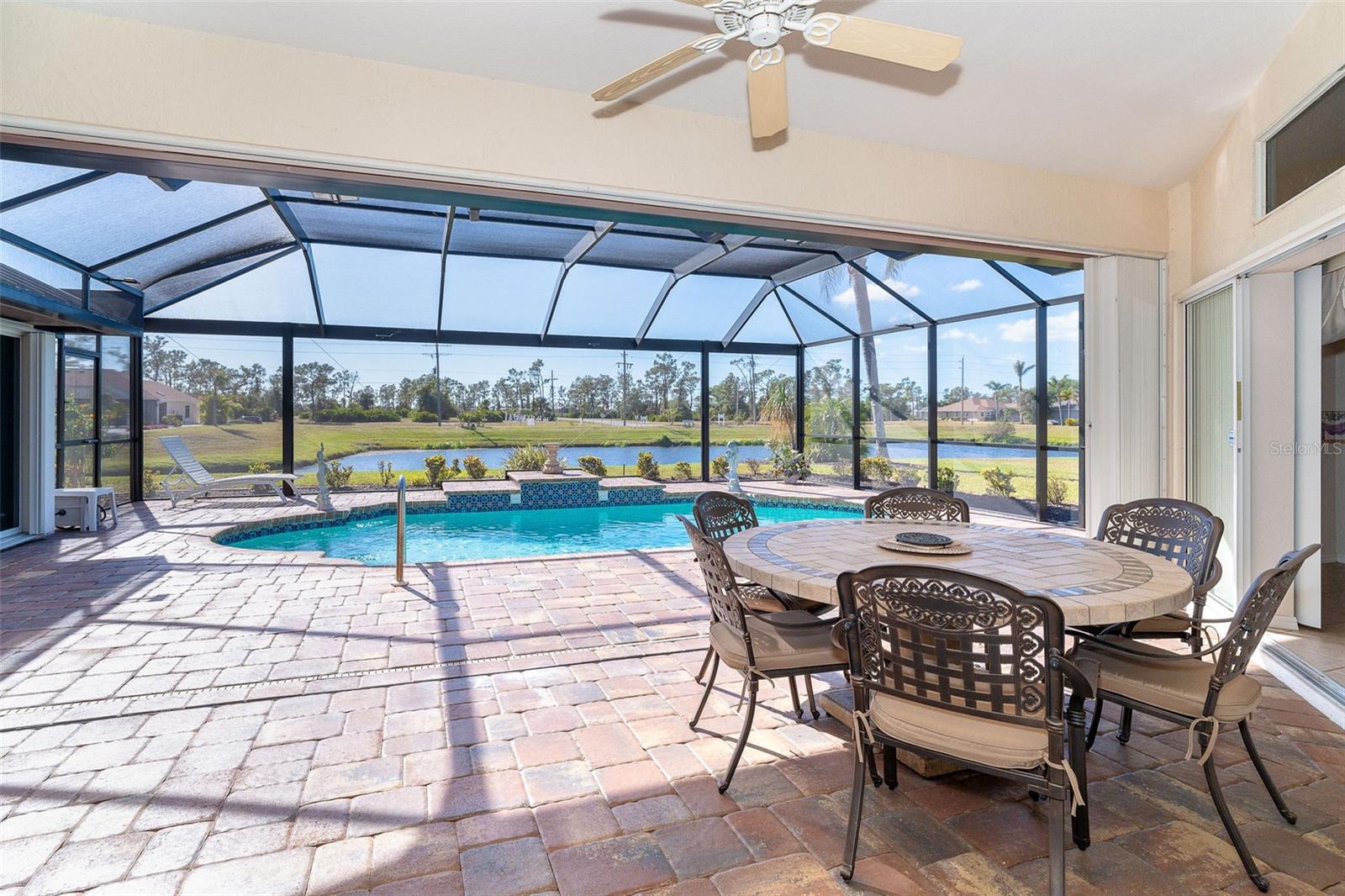 One or more photo(s) has been virtually staged. SELLER FINANCING AVAILABLE at 4.25% interest for qualified buyers! Located in an "X" Flood Zone, this home does not require flood insurance—a rare and valuable benefit in Florida. If you're searching for a high-and-dry home that offers the perfect blend of privacy, space, and style, this is the one. Situated on nearly ¾ of an acre across two waterfront lots, the property features one of the widest views of the Rotonda River/Canal, providing peaceful water vistas and unmatched seclusion. From the moment you arrive, the curb appeal is undeniable. A grand circular driveway welcomes you and leads to oversized garages, while freshly mulched flower beds and lush landscaping enhance the home’s visual charm. A brand-new steel standing seam metal roof (2023) with a dry-in underlayment membrane offers long-term durability and preferred insurance benefits. The property is also protected by three separate security systems for your peace of mind. There’s ample outdoor storage with two fenced-in areas, perfect for lawn equipment or hobby gear. The garages total nearly 1,200 square feet and include space for three cars, a workshop, motorcycles, and even a Level 2 EV charging outlet (50 Amp). A spacious attic provides plenty of extra storage space for your holiday decorations. A professionally installed transfer switch allows for quick generator hookup during power outages. Inside, the primary suite is a true retreat, featuring a spacious bedroom with tray ceilings and tranquil water views. The adjoining bathroom is beautifully appointed with double vanities, a large walk-in shower, soaking tub, two walk-in closets, and a private entrance for added seclusion. The second bedroom offers a walk-in closet and waterproof laminate flooring, while the third bedroom, also with waterproof laminate flooring, currently used as a home office, includes built-in closet space for a printer and a dedicated Winchester fireproof safe. The fourth bedroom was created during a professional garage conversion and serves as a spacious exercise room, accompanied by a large bonus room ideal as a playroom or second office. This portion of the home has its own AC and heating system for added comfort. The kitchen is a chef’s dream, complete with a center island, high-end stainless steel appliances, and extensive cabinetry for storage. The laundry room features upgraded front-loading machines, and three refrigerators (two in home and one in garage) convey with the home. The home is equipped with up-to-code hurricane-rated accordion shutters, metal panels, impact windows, and garage doors for full storm protection. The accordion quick-close hurricane shutters on the lanai provide easy storm protection for all your pool accessories/outdoor furniture without having to drag them into the house. You'll also find luxury touches throughout, including Hansgrohe faucets, Schonbek chandeliers in the dining and entry areas, built-in speaker wiring for a home theater, and a panoramic screen pool cage with sealed pavers and HD materials. Perfectly located just minutes from the stunning beaches of Englewood and Boca Grande, as well as five championship golf courses, this home offers a rare combination of luxury, function, and location.