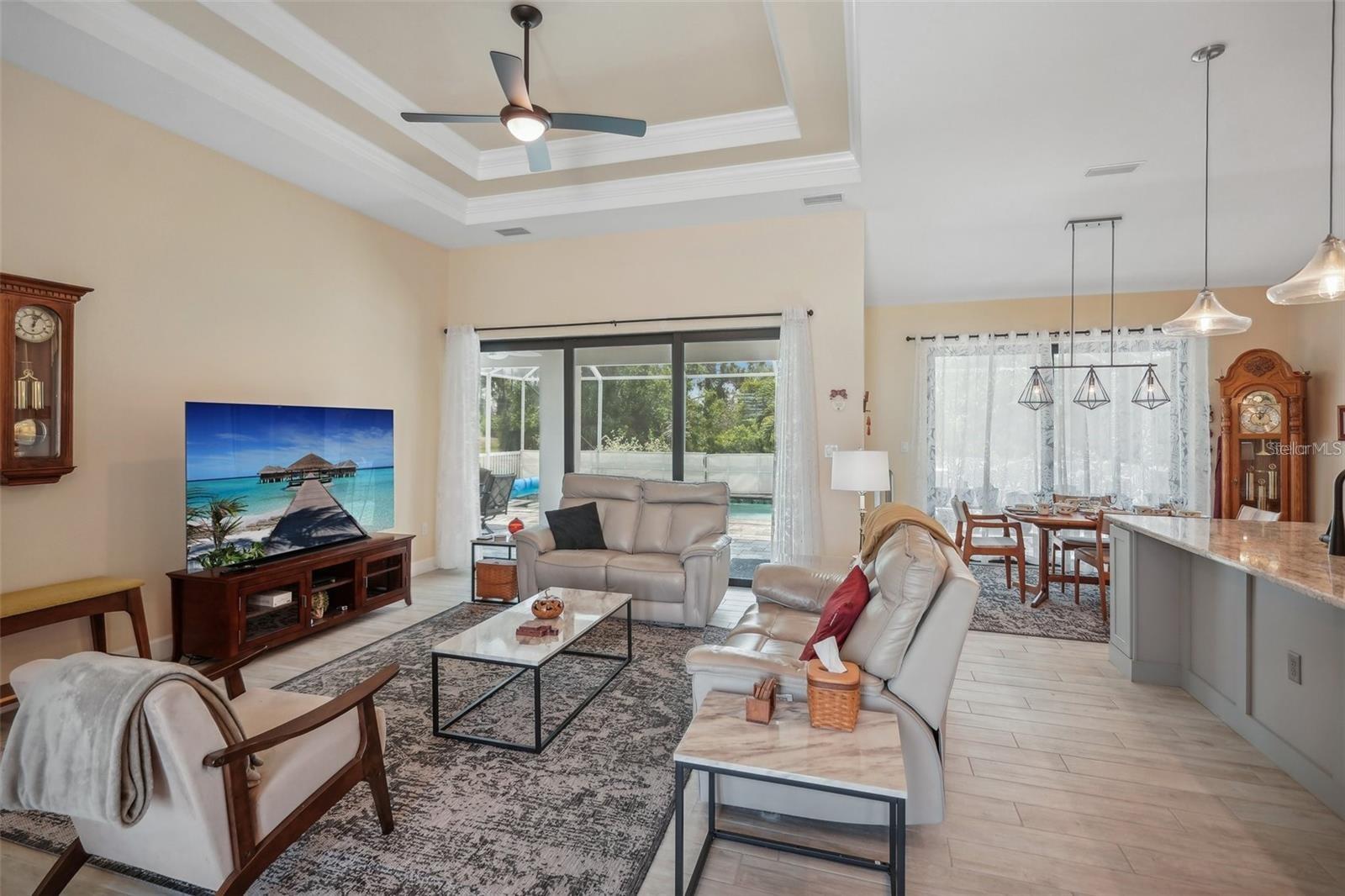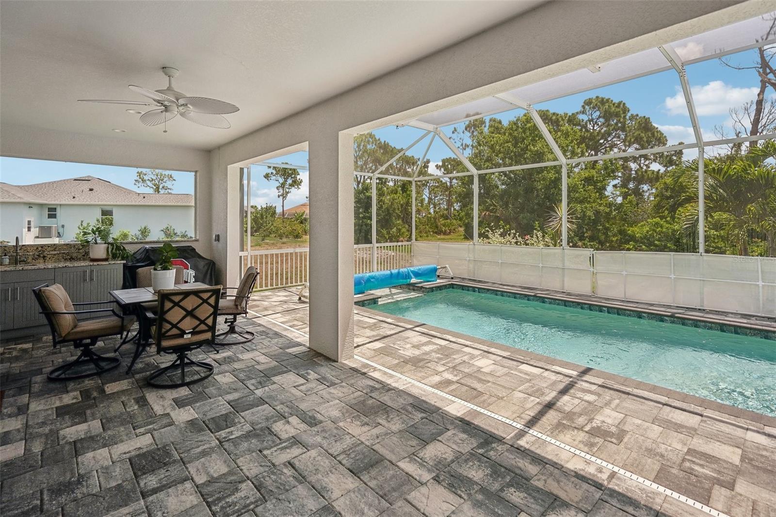 Welcome to this exquisite residence featuring three bedrooms plus a den, accompanied by two baths and a refreshing pool in Southwest Florida. Nestled in the most desired area of Pine Valley within Rotonda West, this property embodies an ideal blend of comfort and elegance. <br> <br> Upon entry, a welcoming foyer leads to the great room, showcasing a thoughtfully designed open split floorplan. Seamlessly integrated, the great room flows into the kitchen and dining area, fostering effortless entertainment. Abundant natural light filters the space through multiple sliding doors, inviting a seamless indoor-outdoor transition to the pool area. <br> <br> The primary bedroom, situated to the left, boasts two walk-in closets, split vanities, and a lavish walk-in shower featuring a rain shower head and handheld shower. On the opposite wing, there are two well-appointed guest rooms (both with walk-in closets) and a bathroom which offers convenient access to the lanai and pool area. <br> <br> Outdoors, a generously sized lanai provides ample room for hosting barbecues with loved ones, complemented by the convenience of an outdoor wet bar. Additional amenities include a three-car garage, ideal for accommodating recreational equipment and providing extra storage, along with the assurance of a new metal roof. <br> <br> Rotonda West, renowned for its golfing community comprising five courses with 99 holes catering to all skill levels, is nestled within the Cape Haze peninsula. This picturesque location seamlessly combines nature with proximity to charming restaurants and boutiques. Nearby, two community parks offer recreational amenities such as tennis courts and playgrounds. <br> <br> Residents enjoy convenient access to the Gulf of Mexico and its pristine beaches, including Englewood Beach, Manasota Key, and the beautiful Boca Grande. Outdoor enthusiasts will enjoy many of the recreational activities available, from the 8-mile Cape Haze Pioneer Trail, to boating and fishing to exploring the historic charm of Downtown Englewood's Dearborn Street, filled with shops and cultural offerings.