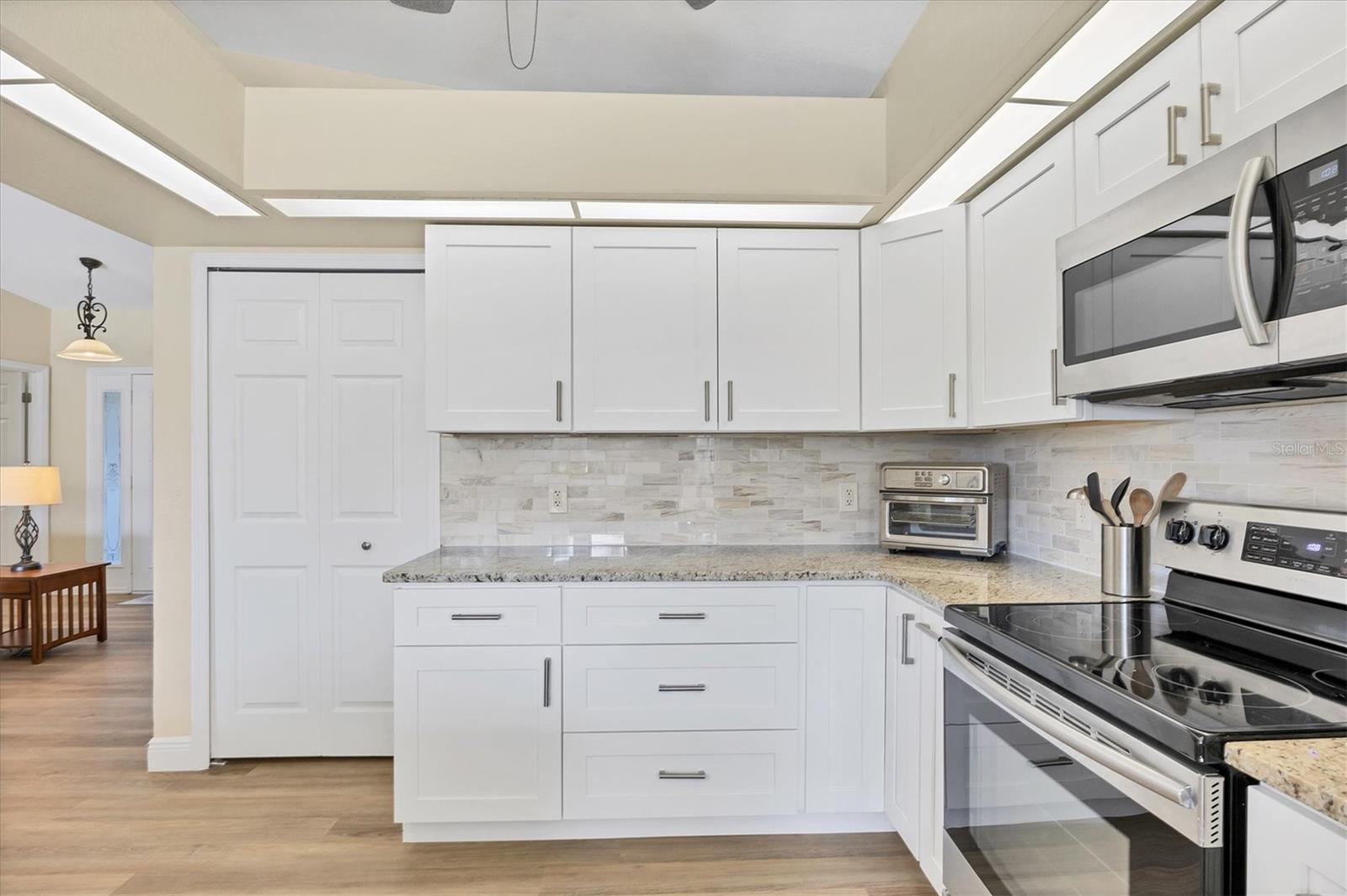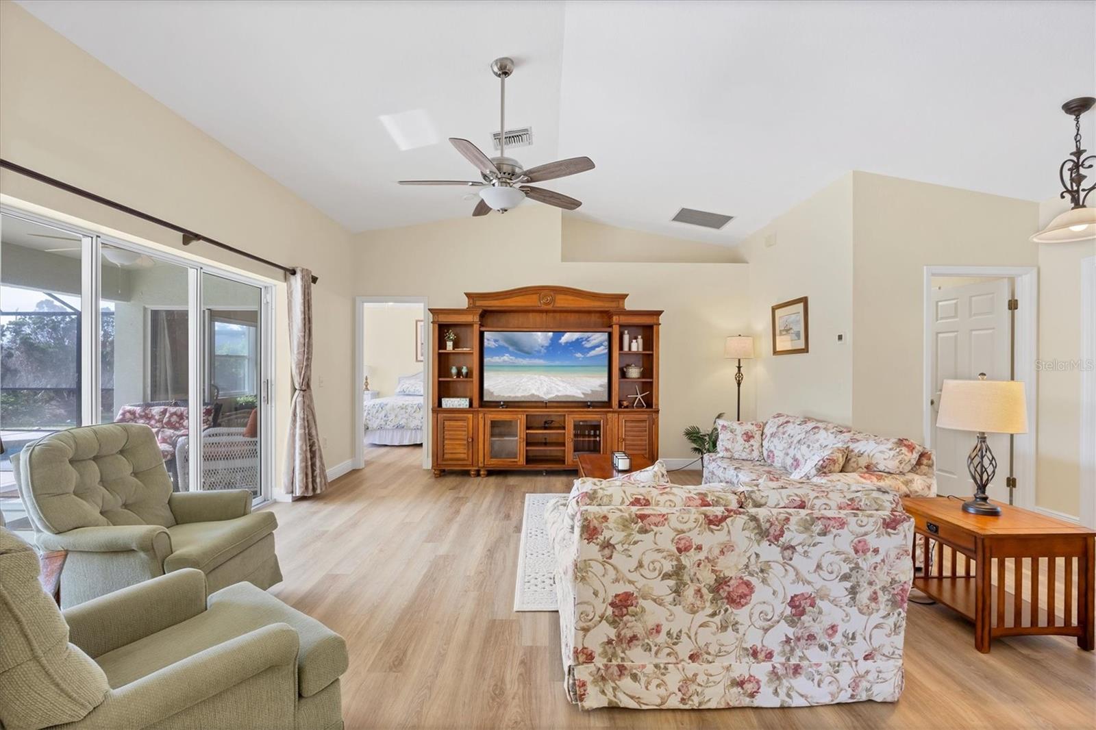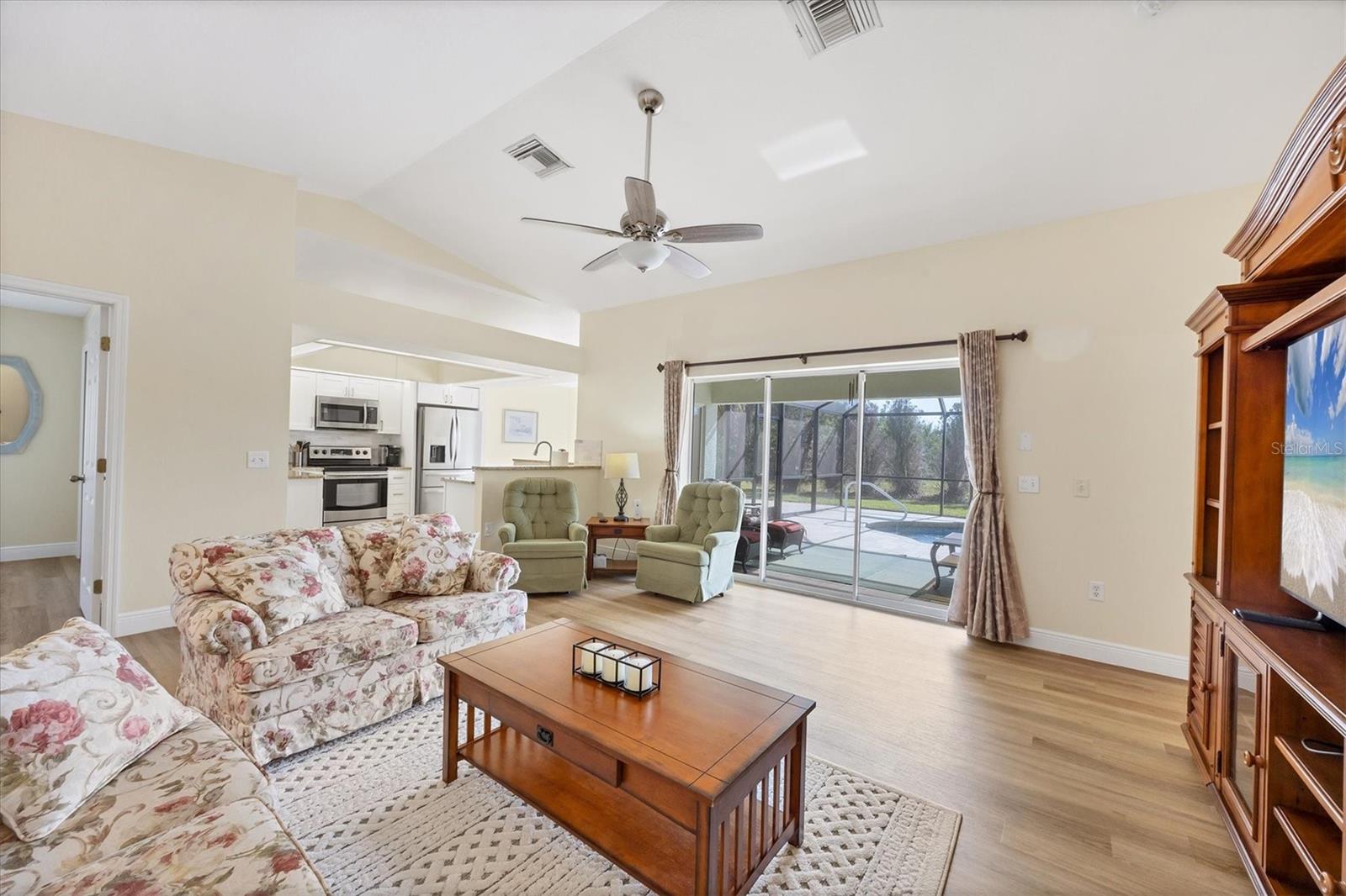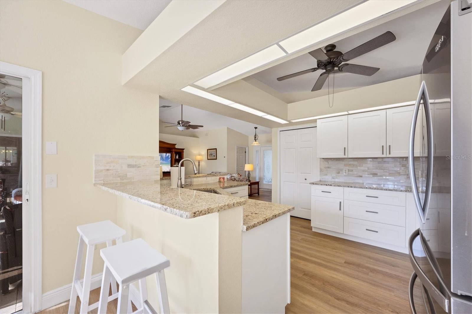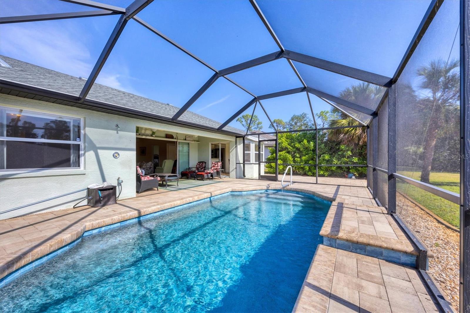 Discover Your Dream Home In Rotonda Heights! This 3-bedroom, 2-bathroom gem features a heated swimming pool and a 2-car garage! Enjoy seamless indoor/outdoor entertaining with a covered lanai that opens to your inviting pool area, perfect for hosting friends and family. The newly renovated kitchen features modern appliances, bar seating, stunning tile backsplash, and granite countertops. The spacious primary suite offers direct lanai access, and a luxurious bathroom with a double vanity and walk-in closet! Two additional bedrooms provide privacy for guests, and both bathrooms are newly updated. With hurricane shutters, a well, and irrigation system. Proximity to golf courses, schools, Englewood beaches, dining, and plenty more, this home combines comfort and convenience. Your dream home is just a showing away! Schedule your private showing today!