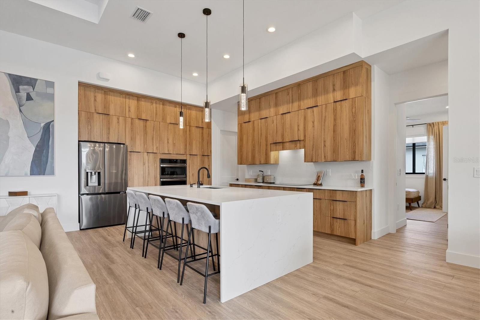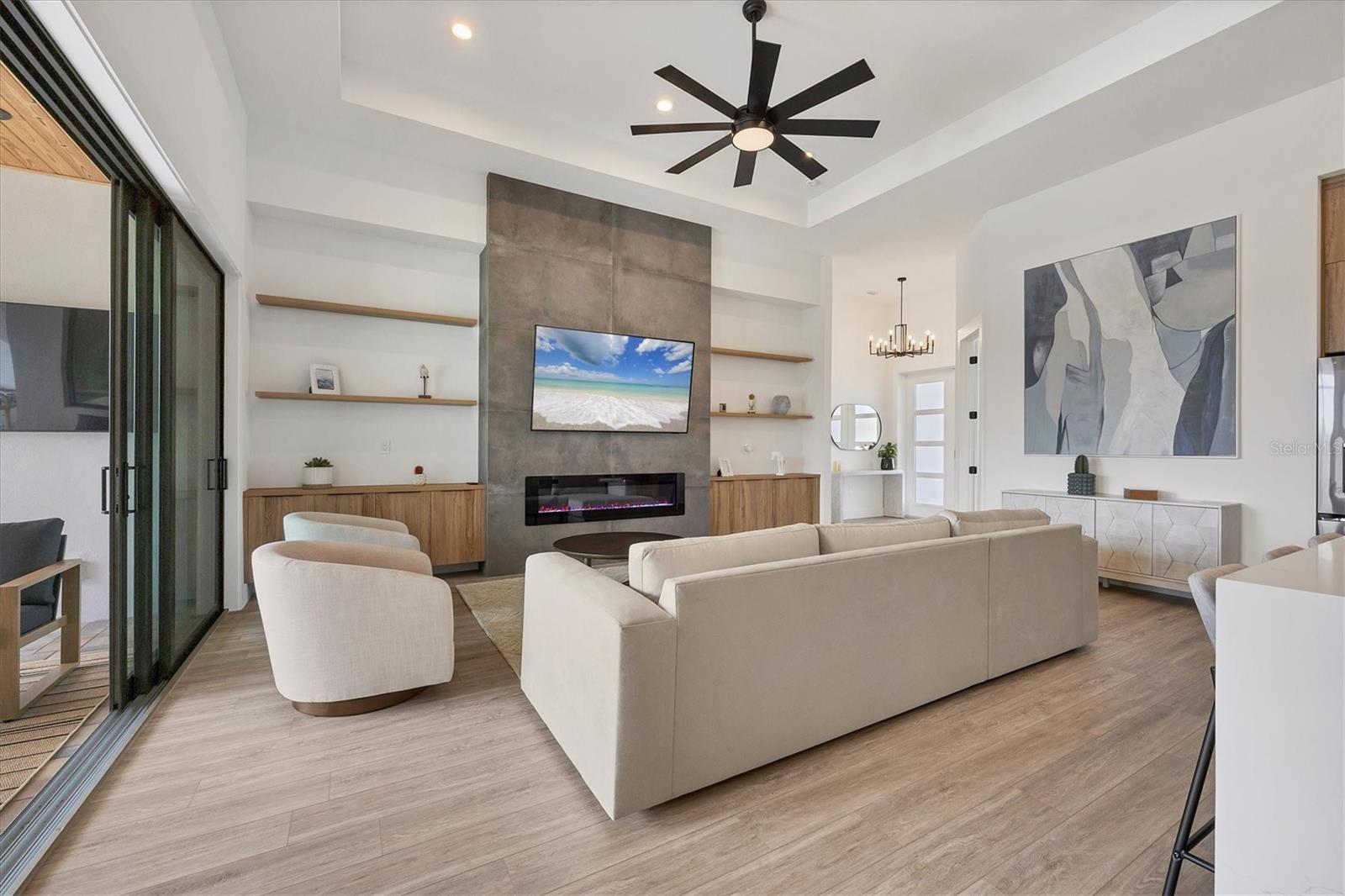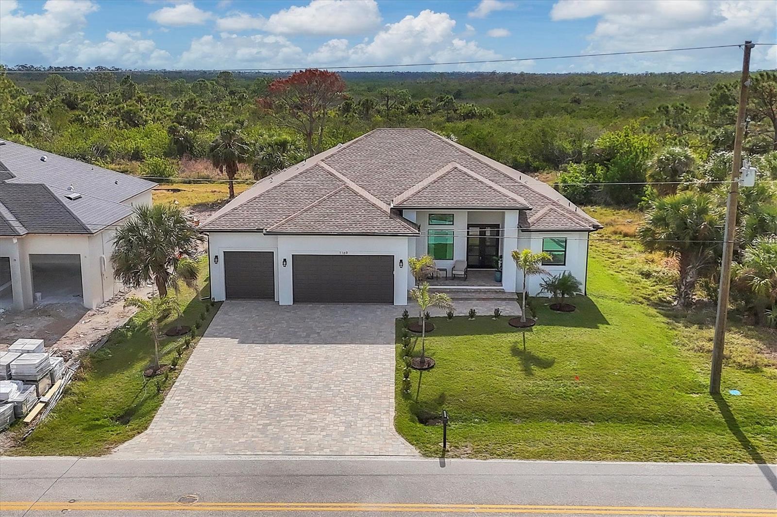 A RECENT PRICE IMPROVEMENT MAKES THIS HOME A MUST-SEE! This custom-crafted home was thoughtfully designed to honor its distinctive contemporary style in keeping with the principles that define its simple, elegant aesthetic: an open floor plan, clean lines, minimalistic decor, and a neutral color palette--key elements to a serene and sophisticated Florida lifestyle. Strategically placed windows maximize natural light throughout the residence and capture stunning views of the surrounding environment. Situated on an oversized double .33 acre lot in the highly desired golf community of Rotonda West, the home's stylish exterior is attractive and inviting, with an eye-appealing brick paver driveway and entry and a spacious 3-CAR GARAGE (with an epoxy floor finish). Upon entry, guests feel immediately at home in a carefully curated environment that is infinitely comfortable and effortlessly elegant, designed to accommodate a large gathering or a 5:00 cheeseboard with the same graceful aplomb. With a design that makes the kitchen, great room, and dining room the heart of family life, 12' walls combined with voluminous ceilings define the main living area, creating a space best described as 'spacious but not ostentatious' with style characterized by thoughtful attention to symmetry and proportion. Built-in cabinetry accentuated with floating shelving and a cozy fireplace make this a natural gathering place for family and friends. A fresh interior neutral color palette provides an exciting opportunity for personalization, encouraging the new owner's creativity and ability to experience true simplicity, setting the stage for the latest colors, textures, and materials. The home's heart is an upscale kitchen featuring elegant, understated, frameless wood cabinetry accentuated with Quartz waterfall countertops and an LG black stainless steel appliance package. Expansive triple sliders grace the great room and blur the divide between the indoor and outdoor living areas, thus capturing the essence of Florida living. The oversized lanai provides an all-season style with ample room to create a comfortable seating area that is convenient and easily accessible to the residence, resulting in a gathering spot replete with privacy and a serene view. Here, a built-in outdoor grill and a heated saltwater pool with a natural backdrop of preserved land await. The primary bedroom offers a welcome respite after a sun-kissed day at the beach. Its ensuite bath features sleek contemporary cabinetry, a beautiful free-standing tub, and a spacious walk-in shower. Two additional guest bedrooms offer full baths with beautiful tile showers, accommodating guests in privacy, luxury, and comfort. All bedrooms have walk-in closets and built-in custom storage solutions. This distinctive residence lies within the heart of the highly desired community of Rotonda West, a quiet, friendly community within a short drive to the pristine Gulf beaches of Boca Grande and Englewood. World-class fishing and boating opportunities, delectable dining establishments, and eclectic shopping venues are nearby. In addition, Rotonda West is a golfer's paradise with five courses within the community. For nature enthusiasts, Rotonda West does not disappoint, with its distinctive natural beauty comprised of scenic lakes and canals. If this sounds intriguing, call today to schedule a private showing, and prepare to be captivated by this vibrant community where every day is a vacation.