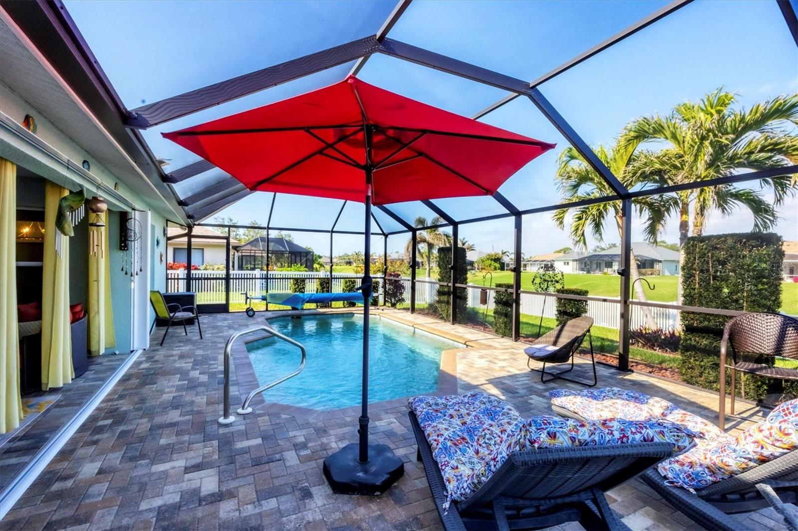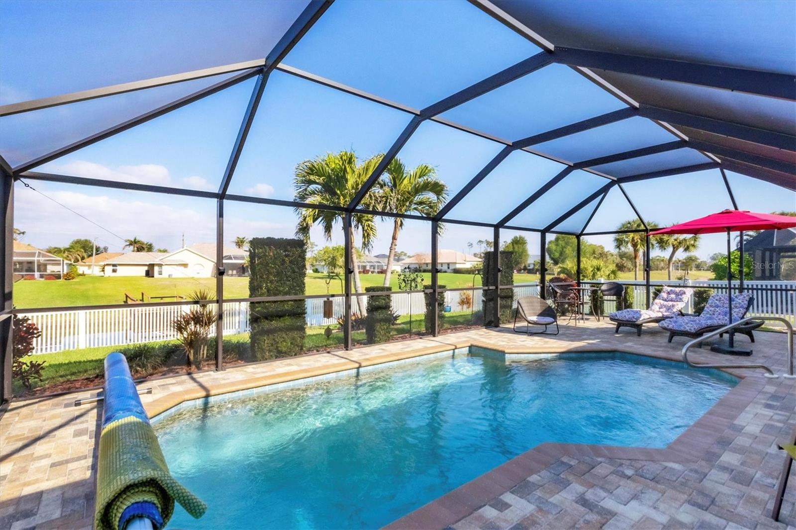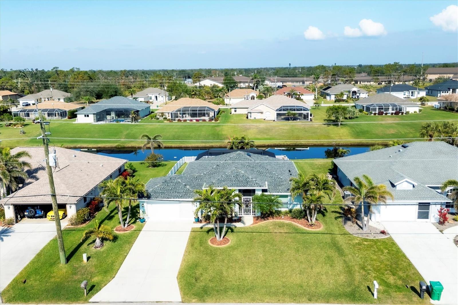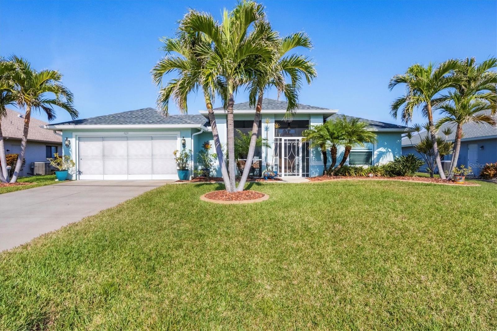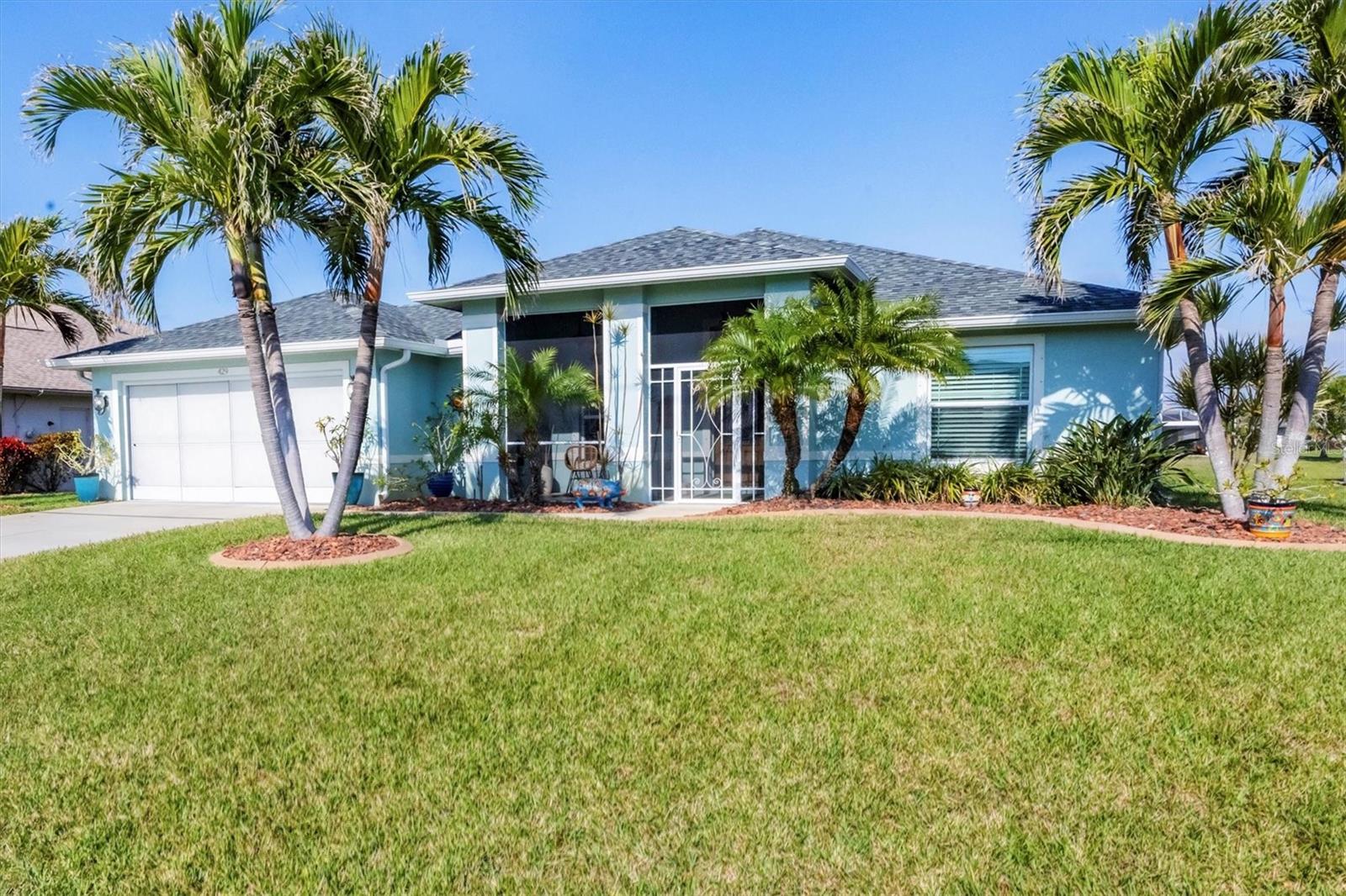 Designed to capture the best of its coastal locale, this charming and meticulously maintained home invites all who enter to exhale. It is a calm oasis, cozy and relaxed, where owners and guests can retreat after spending a sun-kissed day at Englewood Beach. Upon entry, guests will appreciate a sea-glass-inspired color palette, resulting in a feeling of understated luxury that feels warm and welcoming, with a design that makes the living room, dining areas, and kitchen the heart of family life. Here, spacious volume ceilings and abundant natural light add an eye-appealing ambiance. French doors in the living room open to the lanai, home to a heated pool surrounded by a beautiful brick paver patio, creating a strong indoor-outdoor connection that encourages al fresco living while taking full advantage of Florida's signature temperate climate--all set to the backdrop of a freshwater canal. Fuss-free outdoor furniture and decor can be easily arranged to encourage leisurely conversation and relaxation, creating an undeniably resort-style vibe and the perfect place to savor a 5:00 cheeseboard. The home's heart is a well-appointed kitchen with on-trend Shaker-style cabinetry accentuated with granite countertops and an attractive subway tile backsplash. Upgraded GE dark stainless-steel appliances make food prep a pleasure, and the adjacent dining area overlooks the pool and makes even a weeknight meal feel special. The primary bedroom is a sumptuous private retreat--a haven of comfort and serenity, with an ensuite bath featuring dual sinks, a spacious walk-in shower, and a private water closet. Guest bedroom two is currently being used as a multi-purpose flex space. Nearby, guest bedroom three was thoughtfully designed to welcome visitors. Within a few steps, a shared guest bathroom is outfitted with a tub/shower combination accentuated with an attractive tile surround. Other notable home features include NEW ROOF (2022), ceramic tile flooring, zoned irrigation fed from the canal (new irrigation panel 2018), hurricane shutters, a highly coveted X-FLOOD ZONE location, hurricane-resistant garage door (2021), all-new 10-year smoke detectors, high-efficiency pool pump (2023), irrigation pump (2025), Pentair LED pool lights with color play (2025), and an indoor laundry room with a convenient splash sink. Rotonda West is a quiet, friendly neighborhood within a short drive to the pristine Gulf beaches of Boca Grand and Englewood. There are world-class fishing and boating opportunities, eclectic dining establishments, and shopping venues nearby, and golf enthusiasts will appreciate the community's five courses. This charming and inviting home is filled with happy moments captured in time, and there is plenty of room for more picture-perfect memories to come. It is a comfortable and peaceful gathering place for family and friends, and it is just waiting for you to call it 'home.' With its salty air and proximity to pristine Gulf beaches on Manasota Key--10 miles as the seagull flies, what are you waiting for? Call today to schedule a private showing, and prepare to be captivated by this dynamic community where every day feels like a vacation! (THIS HOME IS BEING SOLD PARTIALLY FURNISHED)