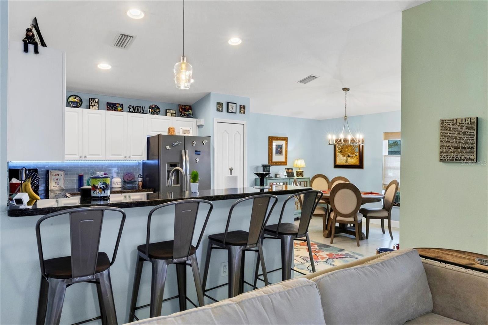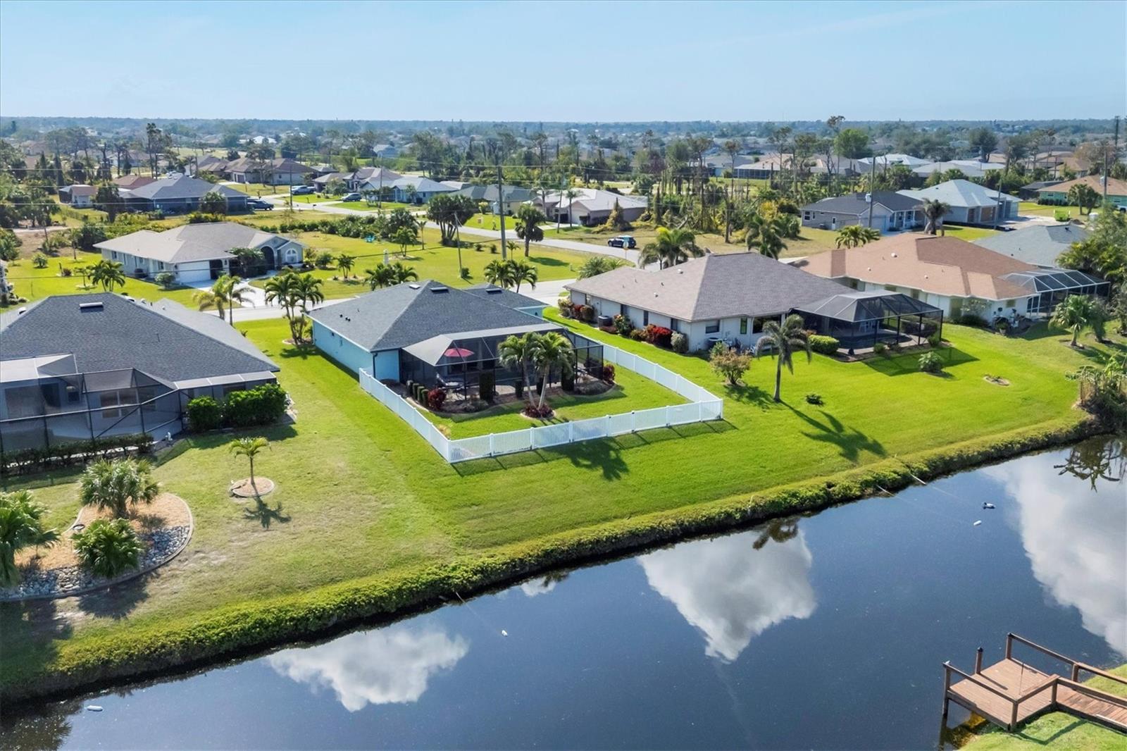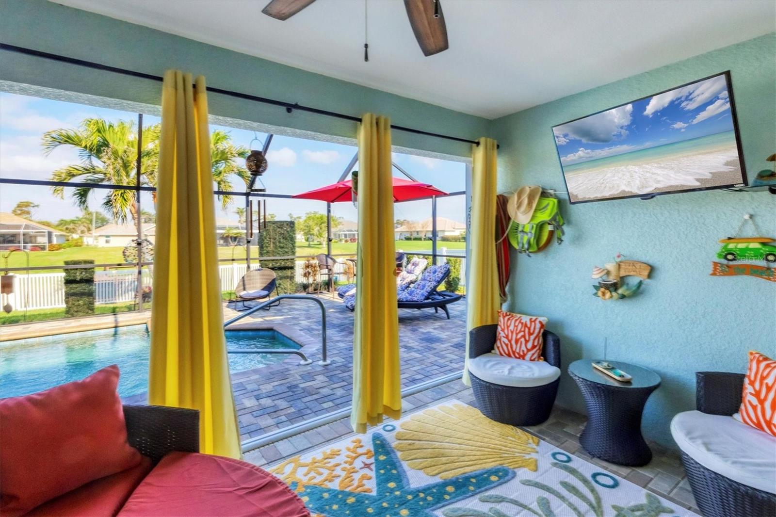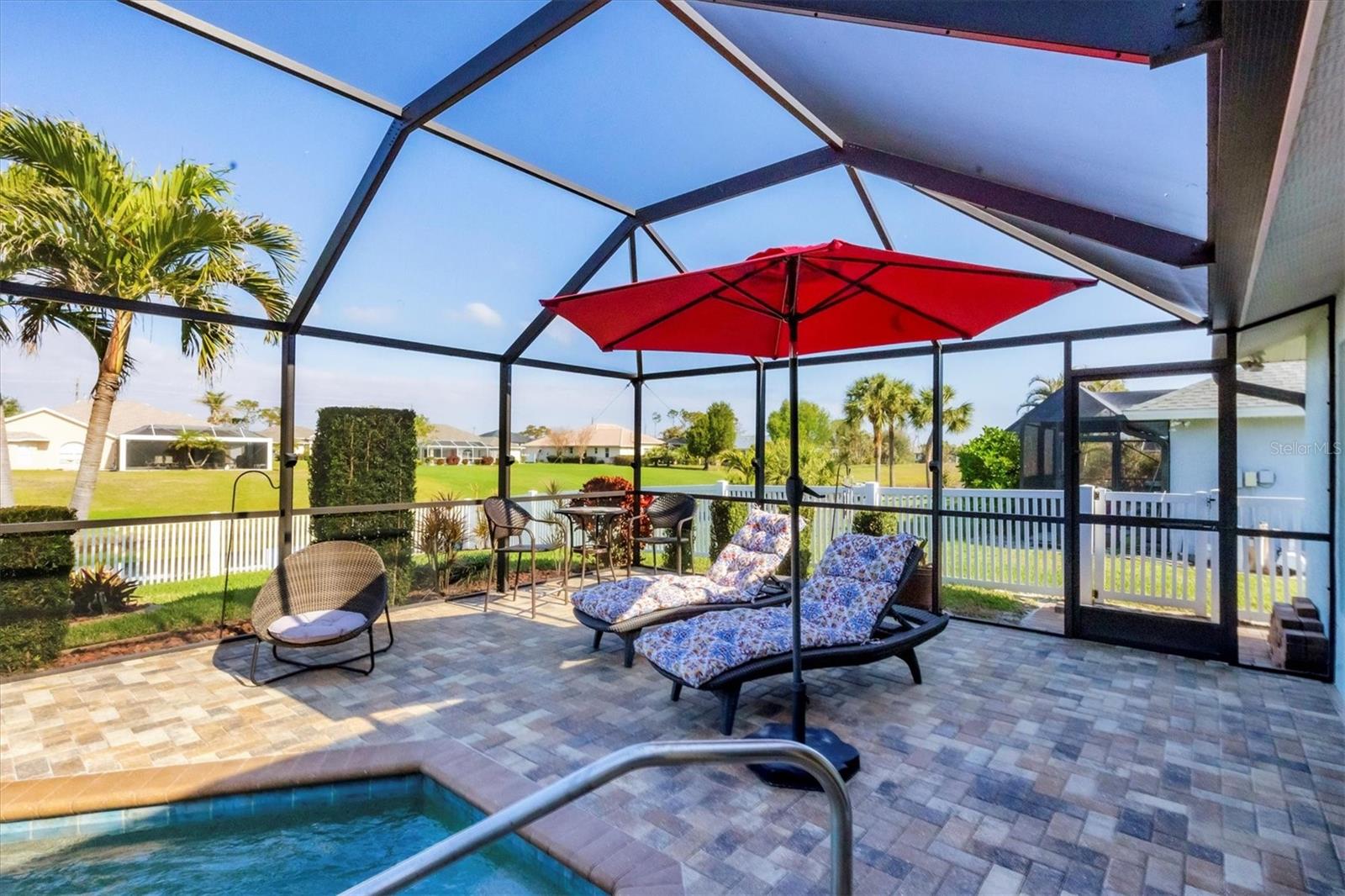 Designed to capture the best of its coastal locale, this charming and meticulously maintained home invites all who enter to exhale. It is a calm oasis, cozy and relaxed, where owners and guests can retreat after spending a sun-kissed day at Englewood Beach. Upon entry, guests will appreciate a sea-glass-inspired color palette, resulting in a feeling of understated luxury that feels warm and welcoming, with a design that makes the living room, dining areas, and kitchen the heart of family life. Here, spacious volume ceilings and abundant natural light add an eye-appealing ambiance. French doors in the living room open to the lanai, home to a heated pool surrounded by a beautiful brick paver patio, creating a strong indoor-outdoor connection that encourages al fresco living while taking full advantage of Florida's signature temperate climate--all set to the backdrop of a freshwater canal. Fuss-free outdoor furniture and decor can be easily arranged to encourage leisurely conversation and relaxation, creating an undeniably resort-style vibe and the perfect place to savor a 5:00 cheeseboard. The home's heart is a well-appointed kitchen with on-trend Shaker-style cabinetry accentuated with granite countertops and an attractive subway tile backsplash. Upgraded GE dark stainless-steel appliances make food prep a pleasure, and the adjacent dining area overlooks the pool and makes even a weeknight meal feel special. The primary bedroom is a sumptuous private retreat--a haven of comfort and serenity, with an ensuite bath featuring dual sinks, a spacious walk-in shower, and a private water closet. Guest bedroom two is currently being used as a multi-purpose flex space. Nearby, guest bedroom three was thoughtfully designed to welcome visitors. Within a few steps, a shared guest bathroom is outfitted with a tub/shower combination accentuated with an attractive tile surround. Other notable home features include NEW ROOF (2022), ceramic tile flooring, zoned irrigation fed from the canal (new irrigation panel 2018), hurricane shutters, a highly coveted X-FLOOD ZONE location, hurricane-resistant garage door (2021), all-new 10-year smoke detectors, high-efficiency pool pump (2023), irrigation pump (2025), Pentair LED pool lights with color play (2025), and an indoor laundry room with a convenient splash sink. Rotonda West is a quiet, friendly neighborhood within a short drive to the pristine Gulf beaches of Boca Grand and Englewood. There are world-class fishing and boating opportunities, eclectic dining establishments, and shopping venues nearby, and golf enthusiasts will appreciate the community's five courses. This charming and inviting home is filled with happy moments captured in time, and there is plenty of room for more picture-perfect memories to come. It is a comfortable and peaceful gathering place for family and friends, and it is just waiting for you to call it 'home.' With its salty air and proximity to pristine Gulf beaches on Manasota Key--10 miles as the seagull flies, what are you waiting for? Call today to schedule a private showing, and prepare to be captivated by this dynamic community where every day feels like a vacation! (THIS HOME IS BEING SOLD PARTIALLY FURNISHED)