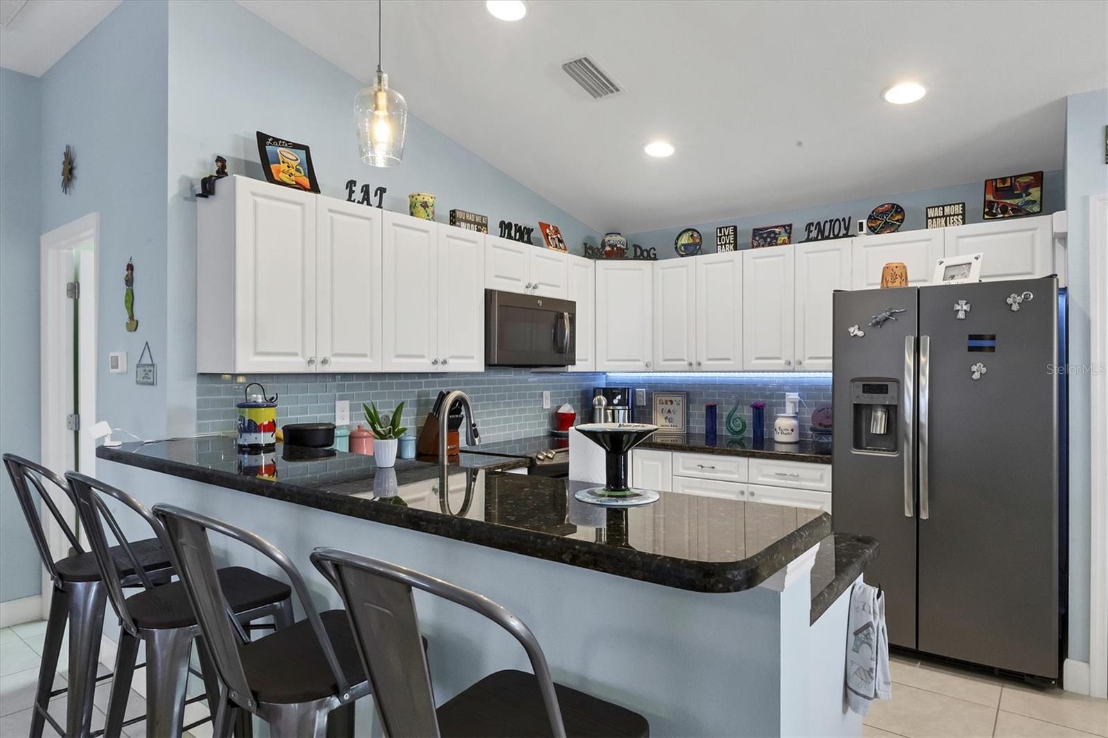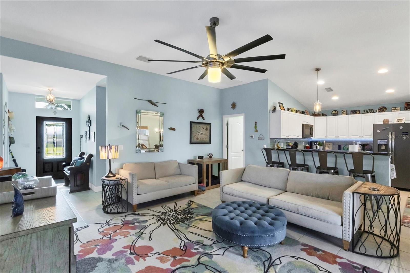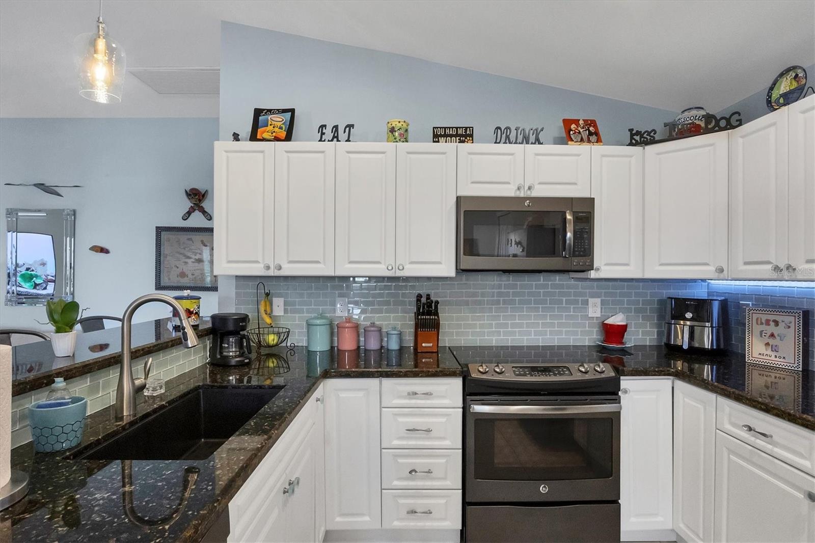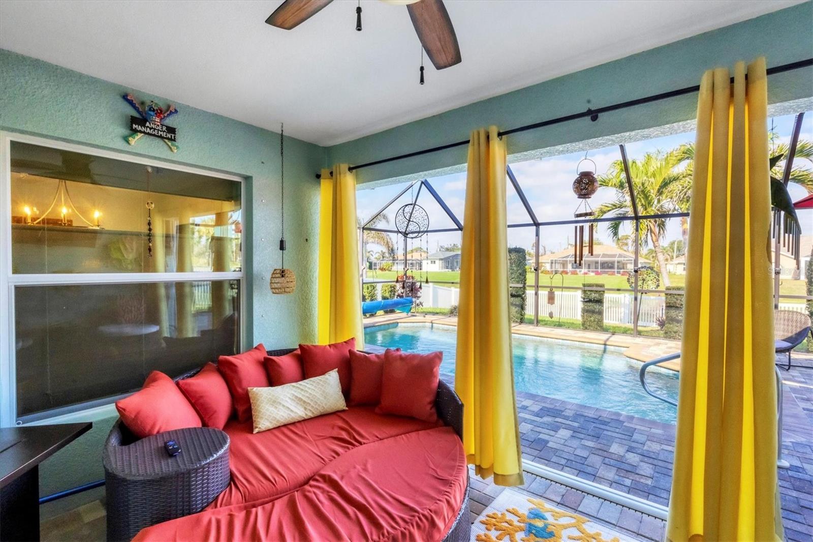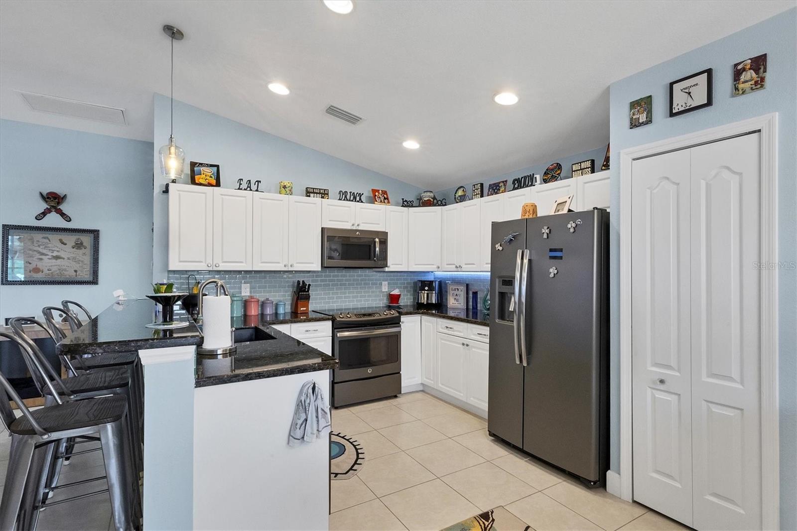 Designed to capture the best of its coastal locale, this charming and meticulously maintained home invites all who enter to exhale. It is a calm oasis, cozy and relaxed, where owners and guests can retreat after spending a sun-kissed day at Englewood Beach. Upon entry, guests will appreciate a sea-glass-inspired color palette, resulting in a feeling of understated luxury that feels warm and welcoming, with a design that makes the living room, dining areas, and kitchen the heart of family life. Here, spacious volume ceilings and abundant natural light add an eye-appealing ambiance. French doors in the living room open to the lanai, home to a heated pool surrounded by a beautiful brick paver patio, creating a strong indoor-outdoor connection that encourages al fresco living while taking full advantage of Florida's signature temperate climate--all set to the backdrop of a freshwater canal. Fuss-free outdoor furniture and decor can be easily arranged to encourage leisurely conversation and relaxation, creating an undeniably resort-style vibe and the perfect place to savor a 5:00 cheeseboard. The home's heart is a well-appointed kitchen with on-trend Shaker-style cabinetry accentuated with granite countertops and an attractive subway tile backsplash. Upgraded GE dark stainless-steel appliances make food prep a pleasure, and the adjacent dining area overlooks the pool and makes even a weeknight meal feel special. The primary bedroom is a sumptuous private retreat--a haven of comfort and serenity, with an ensuite bath featuring dual sinks, a spacious walk-in shower, and a private water closet. Guest bedroom two is currently being used as a multi-purpose flex space. Nearby, guest bedroom three was thoughtfully designed to welcome visitors. Within a few steps, a shared guest bathroom is outfitted with a tub/shower combination accentuated with an attractive tile surround. Other notable home features include NEW ROOF (2022), ceramic tile flooring, zoned irrigation fed from the canal (new irrigation panel 2018), hurricane shutters, a highly coveted X-FLOOD ZONE location, hurricane-resistant garage door (2021), all-new 10-year smoke detectors, high-efficiency pool pump (2023), irrigation pump (2025), Pentair LED pool lights with color play (2025), and an indoor laundry room with a convenient splash sink. Rotonda West is a quiet, friendly neighborhood within a short drive to the pristine Gulf beaches of Boca Grand and Englewood. There are world-class fishing and boating opportunities, eclectic dining establishments, and shopping venues nearby, and golf enthusiasts will appreciate the community's five courses. This charming and inviting home is filled with happy moments captured in time, and there is plenty of room for more picture-perfect memories to come. It is a comfortable and peaceful gathering place for family and friends, and it is just waiting for you to call it 'home.' With its salty air and proximity to pristine Gulf beaches on Manasota Key--10 miles as the seagull flies, what are you waiting for? Call today to schedule a private showing, and prepare to be captivated by this dynamic community where every day feels like a vacation! (THIS HOME IS BEING SOLD PARTIALLY FURNISHED)