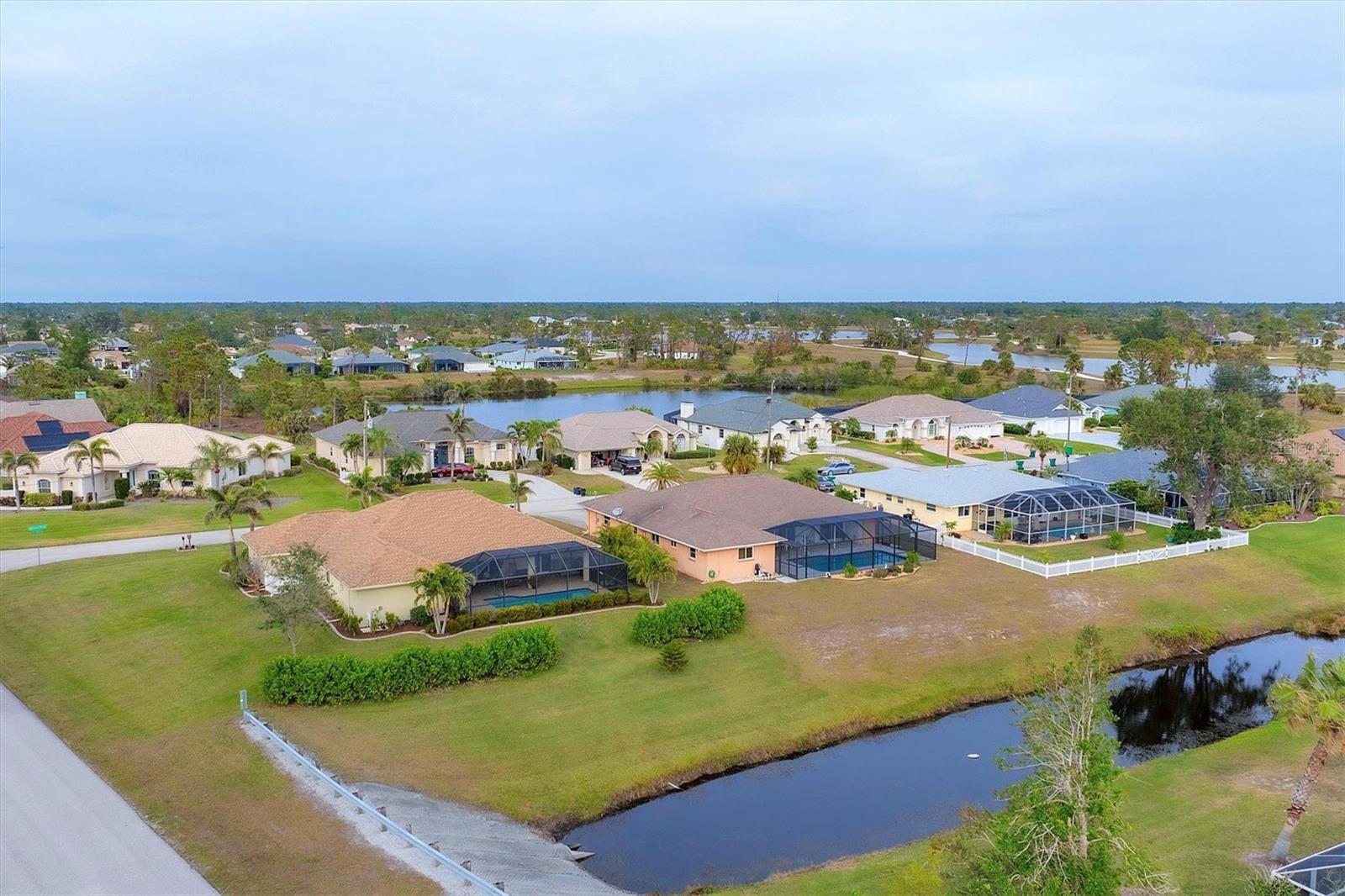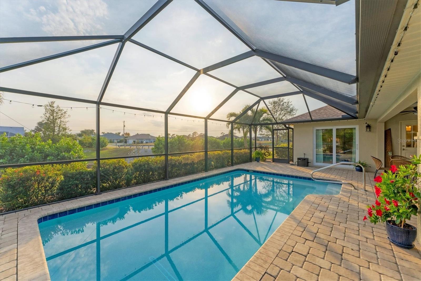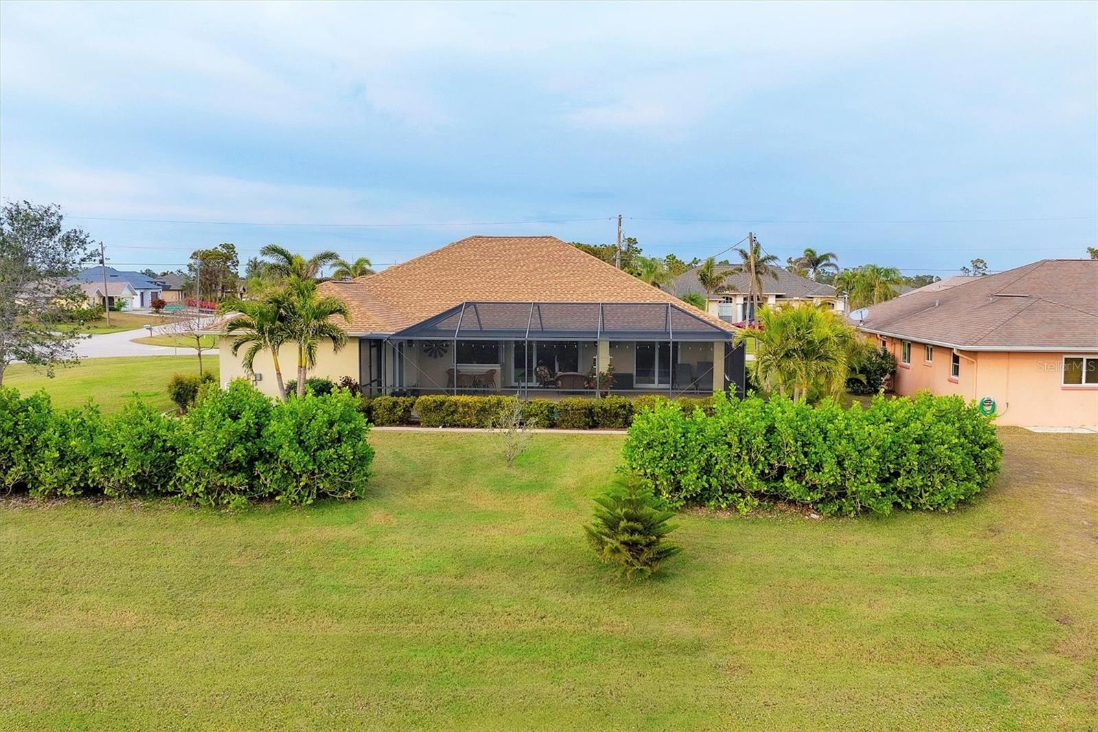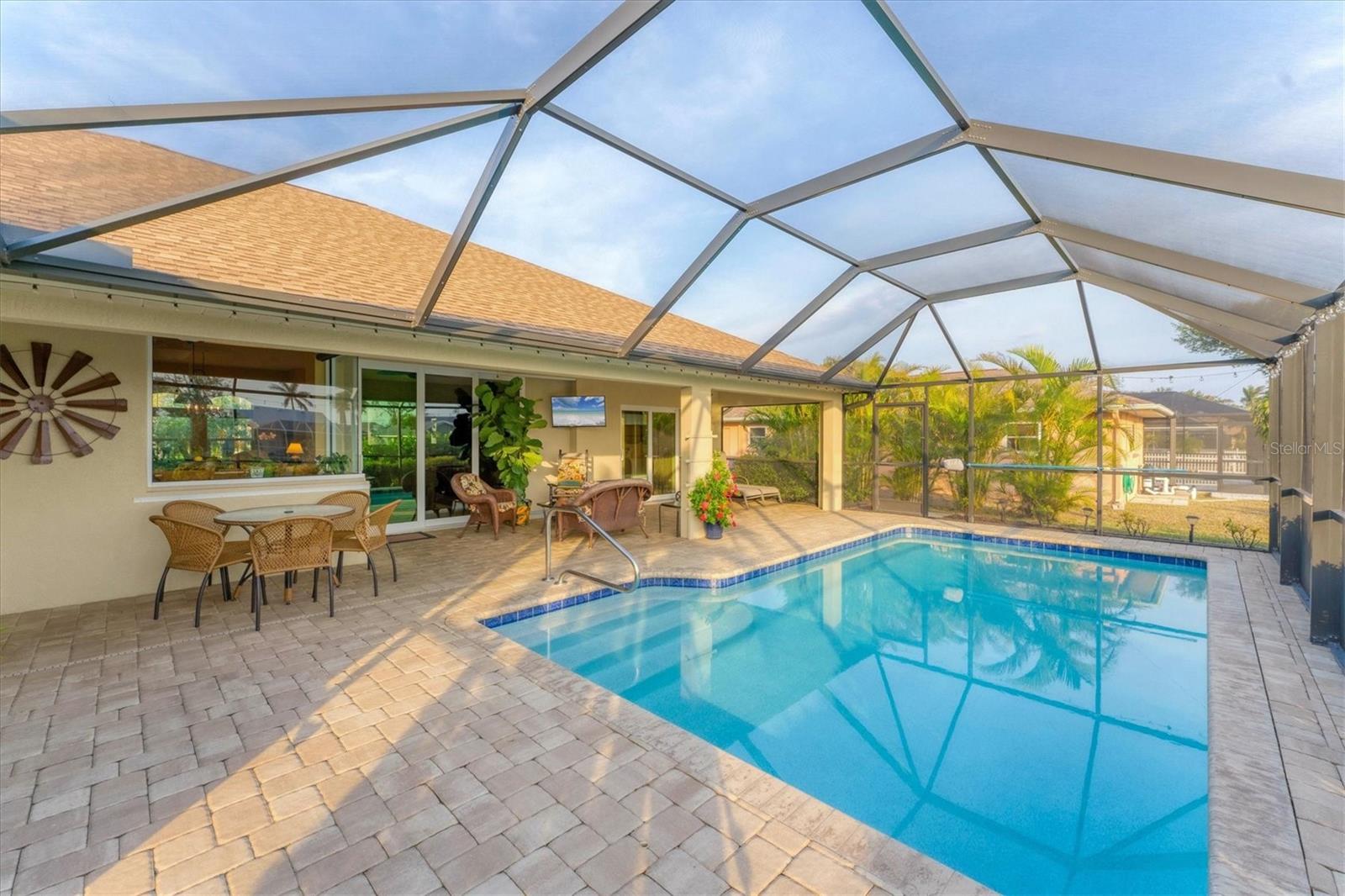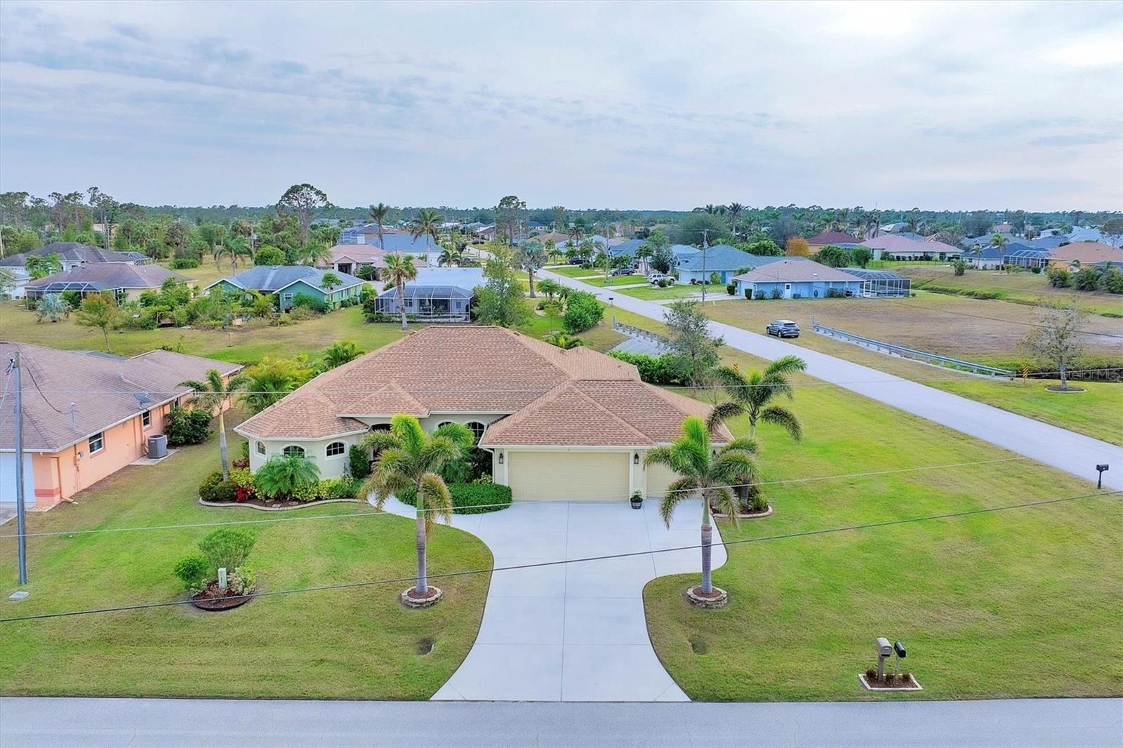 Allow the comforting ambiance of this 2019 Porter Construction home to invite you in for an escape from your worries and cares. Rife with abundant curb appeal, attention to detail, and quality construction; your Florida dream home can be found nestled on an over-sized corner lot within the highly desired community of Rotonda West. Upon entering the 8' glass-inlaid double front door, guests will appreciate spacious volume ceilings, wood-plank tile flooring, and a warm color palette that creates a welcoming feel throughout. Expansive 8' triple pocketing sliding glass doors open from the great room to the spacious lanai, gracefully integrating the indoor/outdoor living areas. Here, a sparkling pool, a brick paver pool deck, and a lush backyard await. To further enhance outdoor entertainment, the backyard features mature privacy landscaping, and the oversized corner lot provides room for ample outdoor games and activities. At the heart of this inviting residence is a well-appointed kitchen that is highlighted by soft-close wood cabinets, tile backsplash, an eat-in dinette surrounded by an aquarium window, a large work island, and abundant cabinetry that is further accentuated by a stainless-steel appliance package and granite countertops. The nearby dining room will comfortably accommodate larger crowds when needed, and a split floor plan provides privacy for owners and guests. After a fun-filled day in the sun, the Primary suite is a welcome respite. Just steps from the home’s private pool, it offers an adjacent spa-like bath with a large Roman shower featuring three showerheads, split/dual vanities, and a separate water closet. The home's 3-STALL GARAGE allows plenty of room to store your beach toys or create a hobbyist’s haven. For peace of mind and additional convenience, the home is located in the highly desirable X-FLOOD ZONE and includes an irrigation system for worry-free maintenance. The home is convenient to Broadmoor Park’s walking paths and a short drive to the Rotonda West Association offices and community center. Golf enthusiasts will appreciate the five championship courses found within the community, while beachcombers will delight in exploring the nearby beaches of Englewood and Boca Grande. If this sounds intriguing, call today to schedule a private showing, and prepare to be captivated by this vibrant, friendly community where your vacation never has to end!