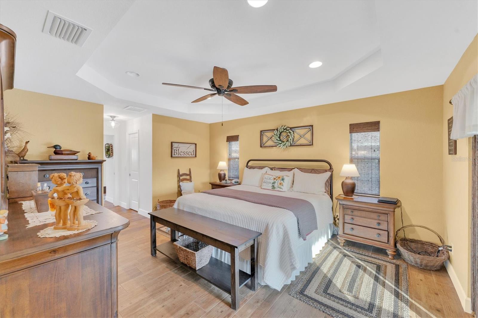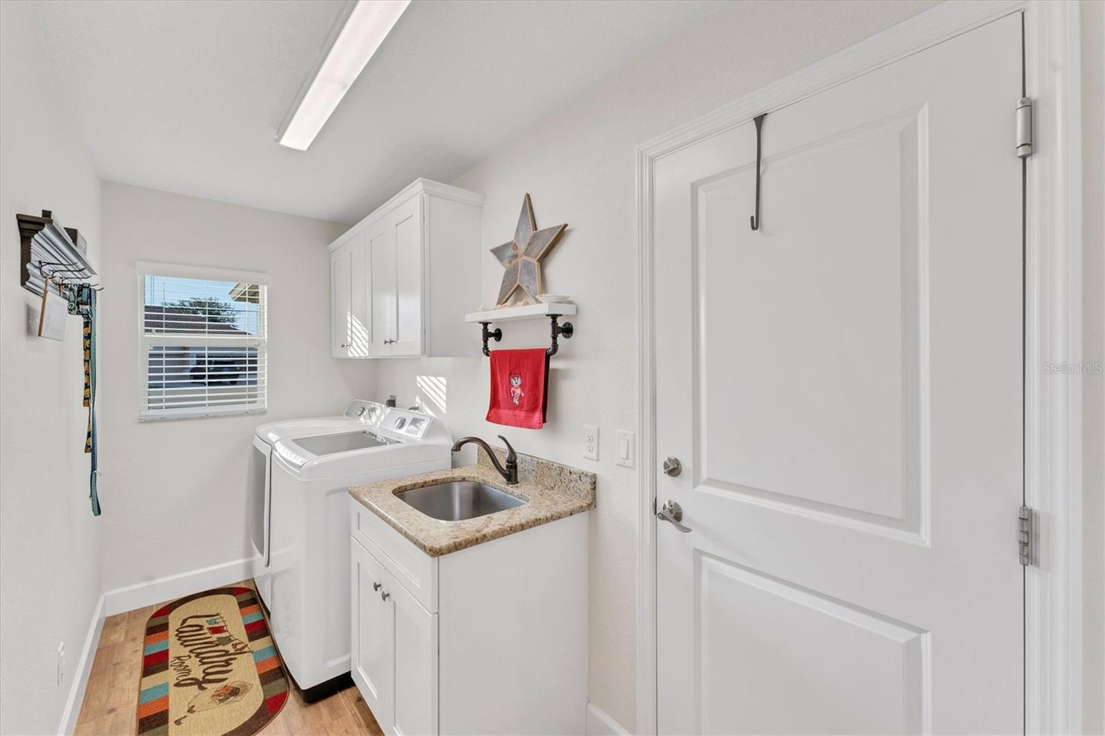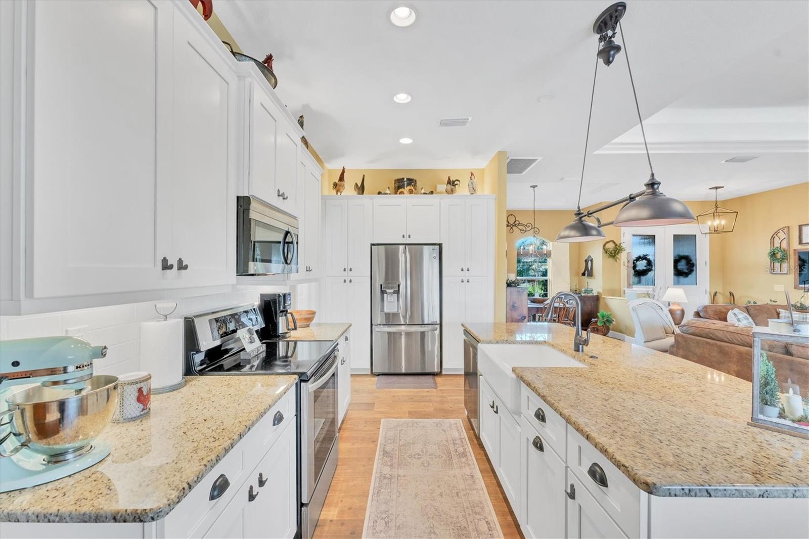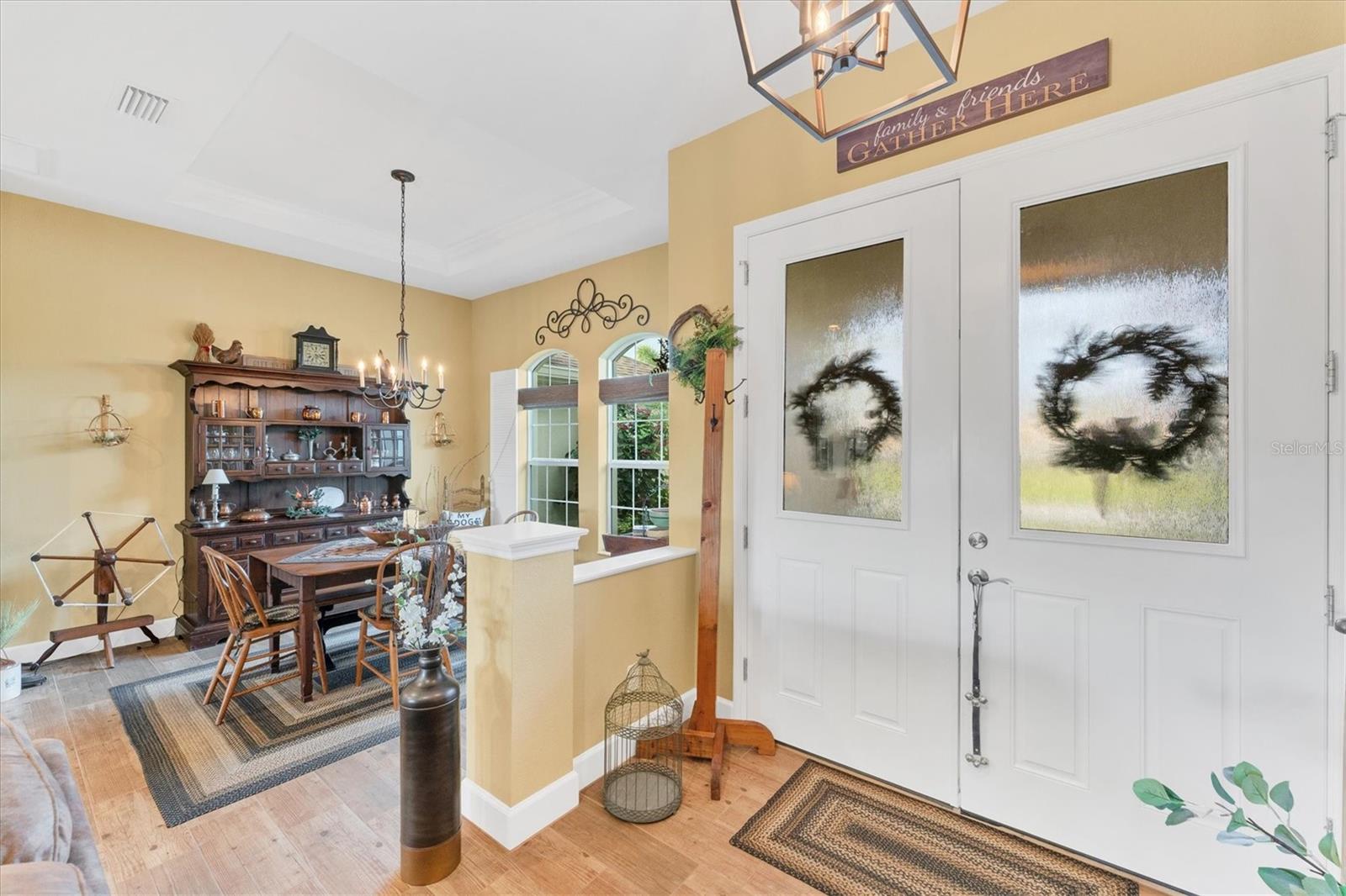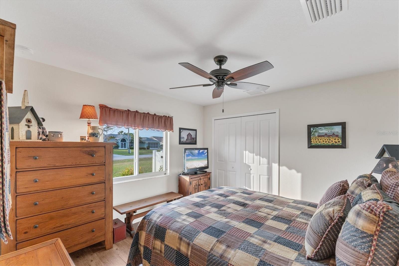 Allow the comforting ambiance of this 2019 Porter Construction home to invite you in for an escape from your worries and cares. Rife with abundant curb appeal, attention to detail, and quality construction; your Florida dream home can be found nestled on an over-sized corner lot within the highly desired community of Rotonda West. Upon entering the 8' glass-inlaid double front door, guests will appreciate spacious volume ceilings, wood-plank tile flooring, and a warm color palette that creates a welcoming feel throughout. Expansive 8' triple pocketing sliding glass doors open from the great room to the spacious lanai, gracefully integrating the indoor/outdoor living areas. Here, a sparkling pool, a brick paver pool deck, and a lush backyard await. To further enhance outdoor entertainment, the backyard features mature privacy landscaping, and the oversized corner lot provides room for ample outdoor games and activities. At the heart of this inviting residence is a well-appointed kitchen that is highlighted by soft-close wood cabinets, tile backsplash, an eat-in dinette surrounded by an aquarium window, a large work island, and abundant cabinetry that is further accentuated by a stainless-steel appliance package and granite countertops. The nearby dining room will comfortably accommodate larger crowds when needed, and a split floor plan provides privacy for owners and guests. After a fun-filled day in the sun, the Primary suite is a welcome respite. Just steps from the home’s private pool, it offers an adjacent spa-like bath with a large Roman shower featuring three showerheads, split/dual vanities, and a separate water closet. The home's 3-STALL GARAGE allows plenty of room to store your beach toys or create a hobbyist’s haven. For peace of mind and additional convenience, the home is located in the highly desirable X-FLOOD ZONE and includes an irrigation system for worry-free maintenance. The home is convenient to Broadmoor Park’s walking paths and a short drive to the Rotonda West Association offices and community center. Golf enthusiasts will appreciate the five championship courses found within the community, while beachcombers will delight in exploring the nearby beaches of Englewood and Boca Grande. If this sounds intriguing, call today to schedule a private showing, and prepare to be captivated by this vibrant, friendly community where your vacation never has to end!