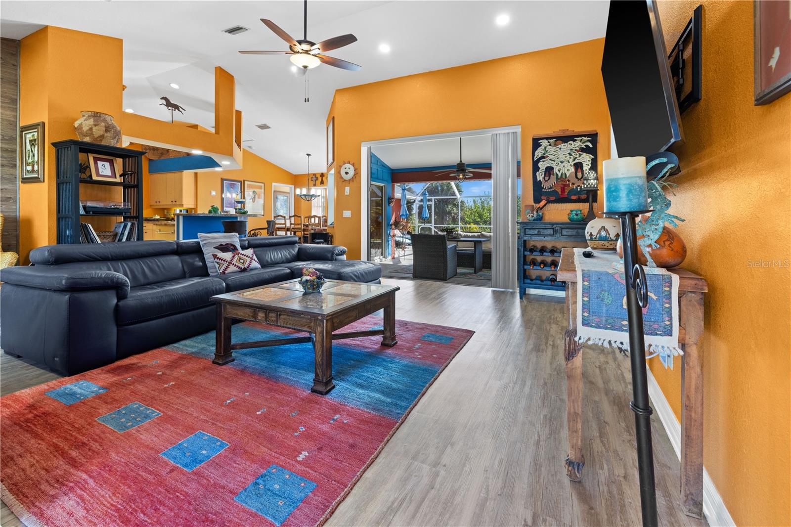 18 PALMS! Nestled on a golf course, this home offers ultimate privacy with lush mature landscaping, including 18 stately palm trees, a lemon tree, and a banana tree!! Welcome to this stunning 3-bedroom, 2-bath pool home boasting of 1911 sq. ft. of beautifully designed living space. Retreat to the spacious primary bedroom, featuring 2 walk-in closets for ample storage and updated fixtures for a modern touch. Enjoy direct access to your private outdoor oasis through sliders that lead to the sparkling pool. The split floor plan offers privacy and flexibility for your lifestyle. One of the bedrooms features sliders that open directly to the pool, perfect for family or guests. Entertain effortlessly in the bright open kitchen, complete with a high countertop bar for seating and a pass-through window to the pool area. The dining room features sliders that lead to the pool for that perfect flow for indoor-outdoor living and dining. The laundry room is adjacent to the kitchen and has extra storage and leads to the garage. Beautiful home located in a golf community that offers many other amenities. Close to beaches, dining, shopping. come live the sunny Florida Life!!