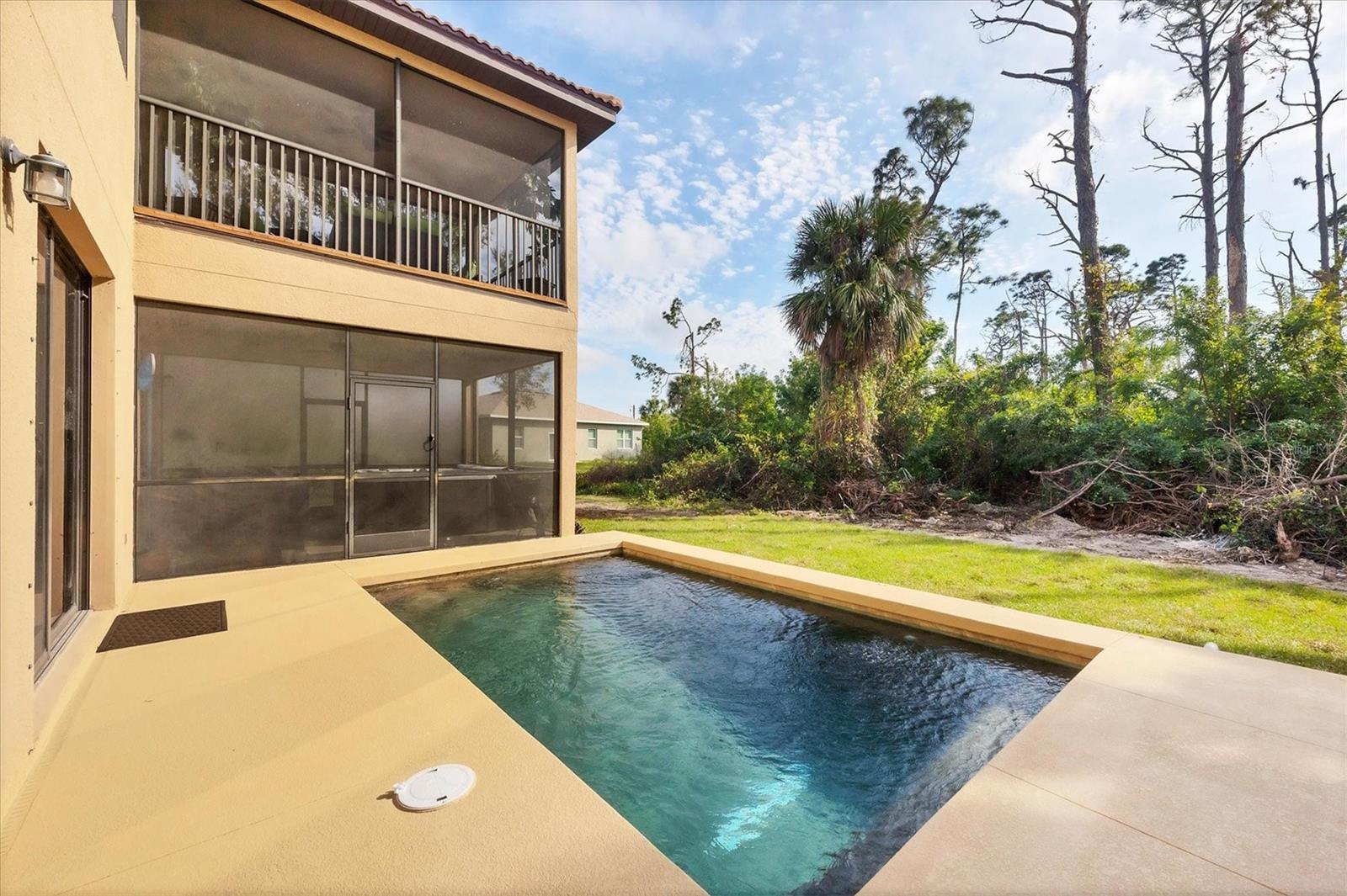 Welcome to 117 Cable Drive, where recent major updates make this spacious and stunning Rotonda Lakes home a standout! Enjoy peace of mind with a NEW TILE ROOF (2023) and relax in your stunning NEW SALTWATER COURTYARD POOL (2025)—complete with a screened lanai and 6-person hot tub, offering the ultimate outdoor oasis for everyday living or guest appeal! Whether you're dreaming of a forever family home or an attractive rental investment, this unique 2-story Mercedes-Built home offers 2,809 sq. ft. of well-designed living space and sits quietly on a cul-de-sac in a highly desirable community. Inside, soaring cathedral ceilings greet you in the foyer, setting the tone for the open, airy layout. The updated kitchen features granite countertops, stainless steel appliances, an eat-in bar, and a sunny breakfast nook. Plantation shutters add a touch of elegance throughout the home. The first floor also includes a formal dining space and flexible areas perfect for everyday living or entertaining—with the potential to add a 4th bedroom if desired. Upstairs, a loft offers a great bonus space for a media room, game area, or kids’ retreat. The oversized primary suite features French doors to a private screened lanai, plus enough space for a home office or reading nook. The en-suite bath includes a whirlpool Jacuzzi tub, large walk-in shower, and dual vanities. Two additional bedrooms and a full bathroom round out the second floor. Outside, you’ll love the expansive backyard—perfect for pets, play, or outdoor gatherings. Located minutes from shopping, dining, great schools, and the white-sand beaches of Boca Grande and Manasota Key. This home is also situated in Flood Zone X, meaning no required flood insurance (buyer to confirm with lender and insurer). Whether you're moving in or building your portfolio, this updated home delivers comfort, value, and lifestyle—schedule your private showing today!