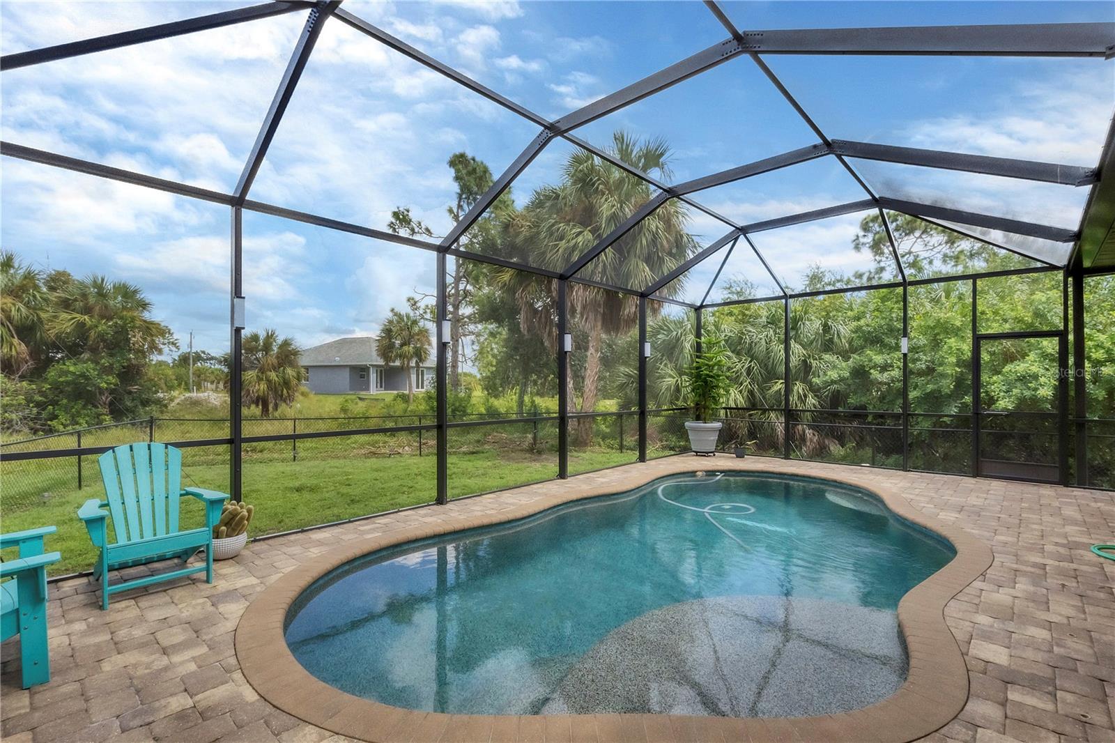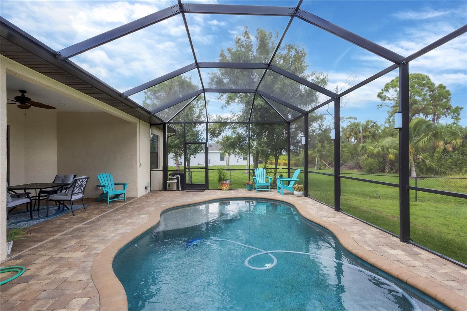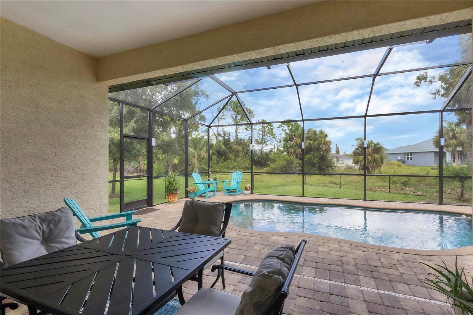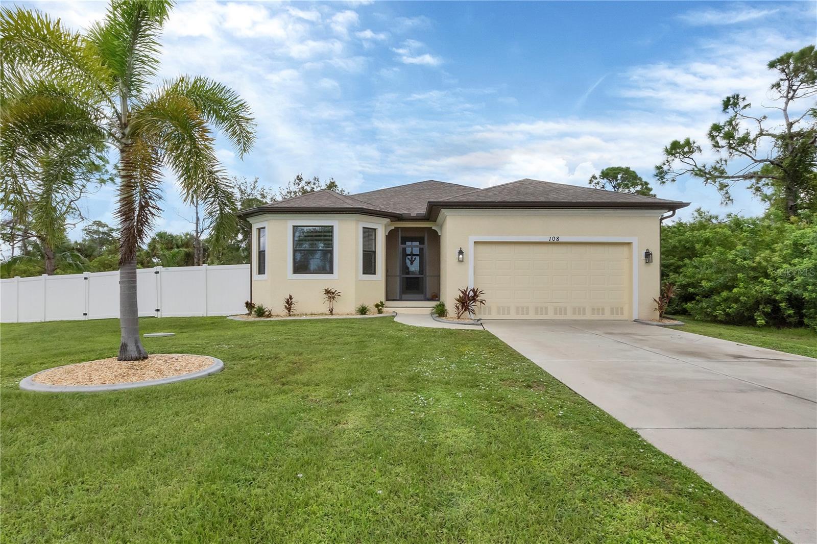 MOTIVATED SELLERS! The quintessential Florida home for buyers searching for a cozy winter escape or a lovely year-round residence is found within the walls of this charming home, nestled on a quiet cul-de-sac in the heart of the highly desired community of Rotonda Lakes. Rich with desirable upgrades, the finishes will please even the most discriminating homeowner. Upon entry, guests will appreciate a soothing neutral color palette accentuated by soaring 10' ceilings and 8' interior doors, resulting in a light, airy, and welcoming ambiance. Ceramic tile runs throughout the home to create comfortable transitions from room to room. The resident chef will surely appreciate the well-appointed kitchen with 48" cabinetry, tastefully coordinated granite countertops, a large prep island, stainless steel appliances, and a custom-designed pantry closet to accommodate your storage needs efficiently. An adjacent dining room was designed to make even a weeknight meal feel special, with sliders opening to the lanai and its tranquil and fenced backyard. A flex room/media room/den is found behind elegant double doors, making working from home or binge-watching the latest series a pleasure. The kitchen flows effortlessly into the great room, where triple sliders open to the cozy lanai, gracefully integrating the indoor/outdoor living areas, with plenty of room to arrange furniture in conversation-friendly configurations to encourage guests to slow down, relax, play board games, or savor a 5:00 cheeseboard. Here, a heated pool surrounded by an attractive paver patio awaits. Mood-setting LED lighting has been incorporated into the pool cage structure to enhance the setting further. Just beyond is a fenced backyard--an ideal place for your furry friends, and a zoned irrigation system nourishes the yard. Relaxation is encouraged in the primary suite. Spacious volume ceilings and a large walk-in closet with custom-designed storage solutions highlight this room. At the same time, its ensuite bath exudes a spa-like ambiance, dual sinks, and a generous walk-in shower with an attractive tile surround. Two additional bedrooms will comfortably accommodate guests, and they share a bath outfitted with a tub/shower combination accentuated with a ceramic tile surround. Rotonda Lakes is a quiet, friendly community within a short drive to the pristine Gulf beaches of Boca Grande and Englewood. There are world-class fishing and boating opportunities, various delectable dining establishments, vibrant farmer's markets, and eclectic shopping venues nearby. Golf enthusiasts will appreciate the easy access to five championship courses in nearby Rotonda West. If this sounds intriguing, call today to schedule a private showing and prepare to be captivated by this picturesque community where every day feels like a vacation!