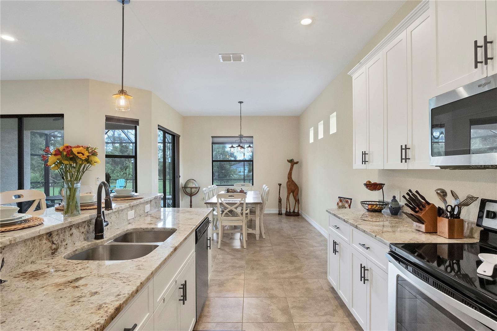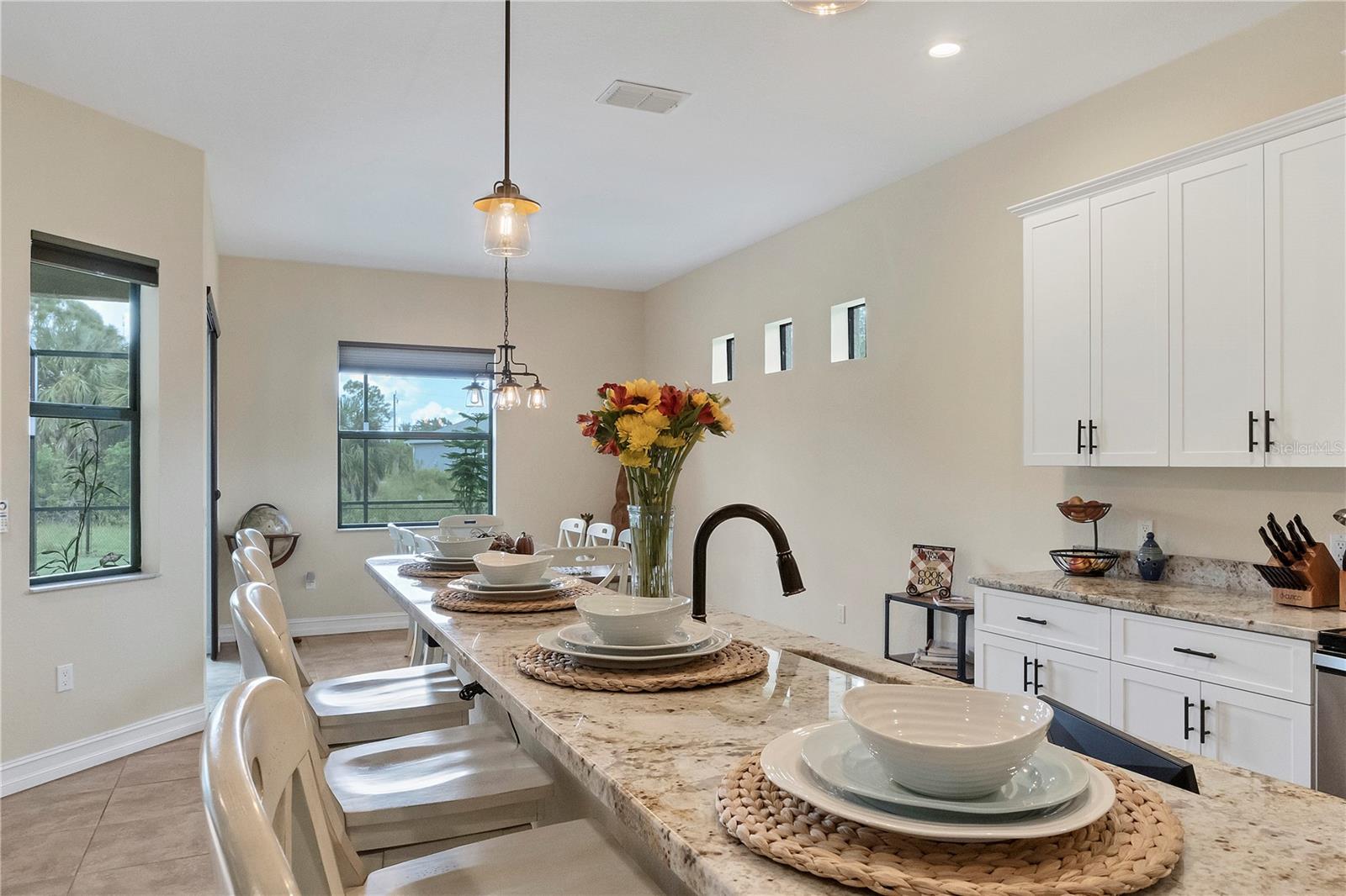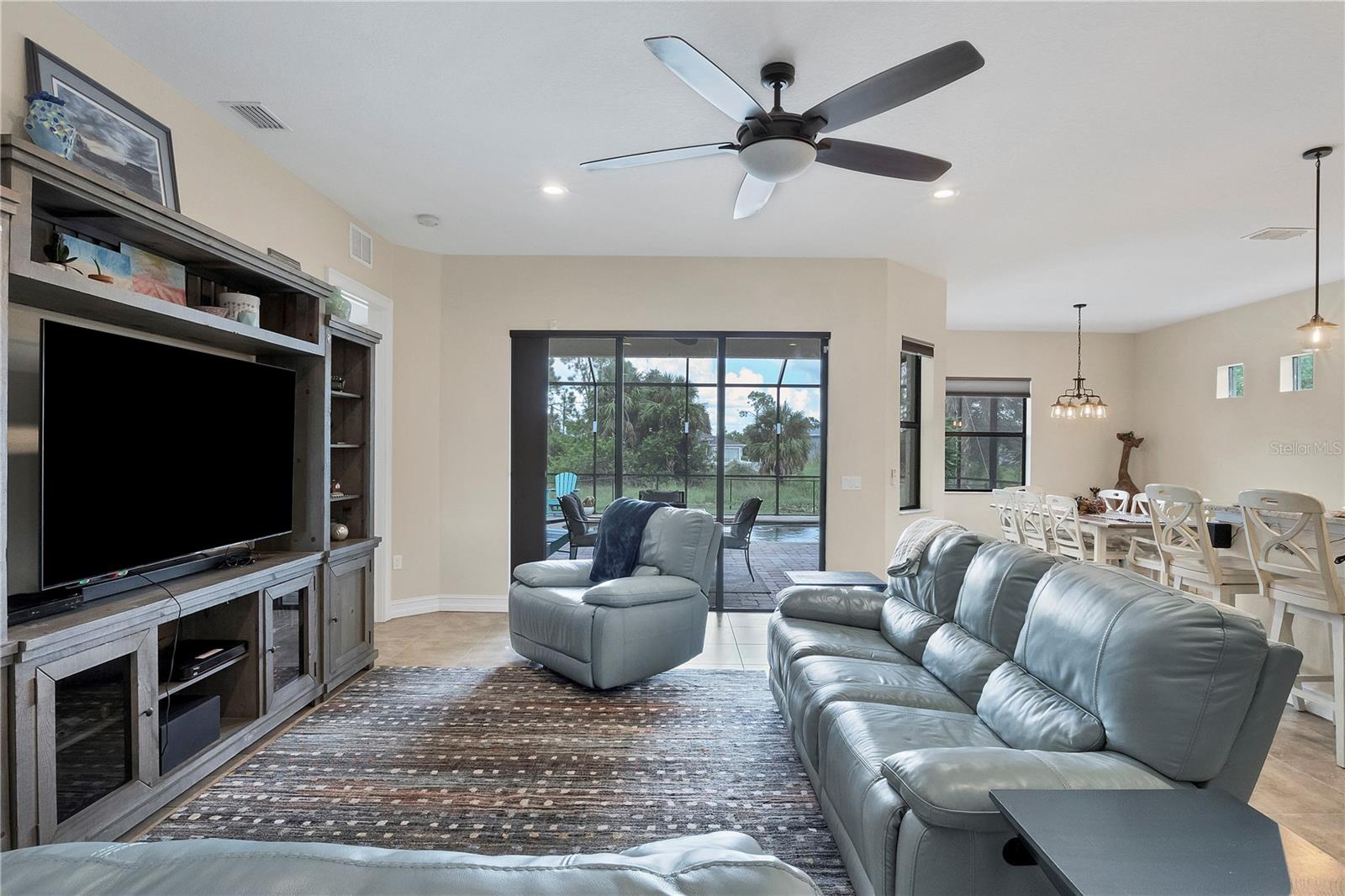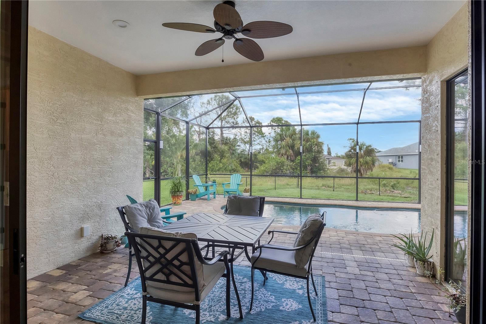 MOTIVATED SELLERS! The quintessential Florida home for buyers searching for a cozy winter escape or a lovely year-round residence is found within the walls of this charming home, nestled on a quiet cul-de-sac in the heart of the highly desired community of Rotonda Lakes. Rich with desirable upgrades, the finishes will please even the most discriminating homeowner. Upon entry, guests will appreciate a soothing neutral color palette accentuated by soaring 10' ceilings and 8' interior doors, resulting in a light, airy, and welcoming ambiance. Ceramic tile runs throughout the home to create comfortable transitions from room to room. The resident chef will surely appreciate the well-appointed kitchen with 48" cabinetry, tastefully coordinated granite countertops, a large prep island, stainless steel appliances, and a custom-designed pantry closet to accommodate your storage needs efficiently. An adjacent dining room was designed to make even a weeknight meal feel special, with sliders opening to the lanai and its tranquil and fenced backyard. A flex room/media room/den is found behind elegant double doors, making working from home or binge-watching the latest series a pleasure. The kitchen flows effortlessly into the great room, where triple sliders open to the cozy lanai, gracefully integrating the indoor/outdoor living areas, with plenty of room to arrange furniture in conversation-friendly configurations to encourage guests to slow down, relax, play board games, or savor a 5:00 cheeseboard. Here, a heated pool surrounded by an attractive paver patio awaits. Mood-setting LED lighting has been incorporated into the pool cage structure to enhance the setting further. Just beyond is a fenced backyard--an ideal place for your furry friends, and a zoned irrigation system nourishes the yard. Relaxation is encouraged in the primary suite. Spacious volume ceilings and a large walk-in closet with custom-designed storage solutions highlight this room. At the same time, its ensuite bath exudes a spa-like ambiance, dual sinks, and a generous walk-in shower with an attractive tile surround. Two additional bedrooms will comfortably accommodate guests, and they share a bath outfitted with a tub/shower combination accentuated with a ceramic tile surround. Rotonda Lakes is a quiet, friendly community within a short drive to the pristine Gulf beaches of Boca Grande and Englewood. There are world-class fishing and boating opportunities, various delectable dining establishments, vibrant farmer's markets, and eclectic shopping venues nearby. Golf enthusiasts will appreciate the easy access to five championship courses in nearby Rotonda West. If this sounds intriguing, call today to schedule a private showing and prepare to be captivated by this picturesque community where every day feels like a vacation!